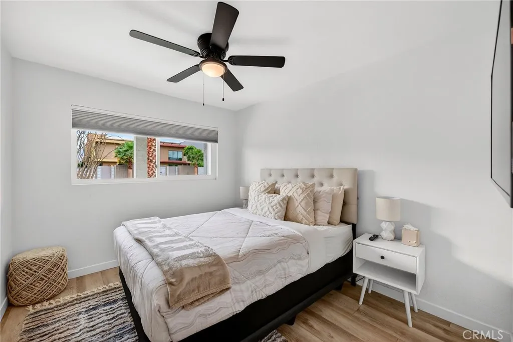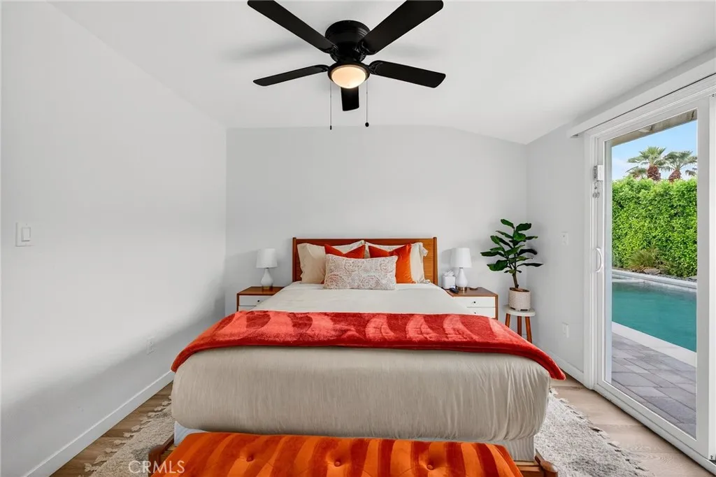 Welcome to this stunning 3 bedroom, 2 bath modern retreat, ideally situated on a tranquil street in the highly sought-after historic Racquet Club community of Palm Springs. Thoughtfully renovated and completely reimagined, this home blends contemporary style with effortless desert living. No detail has been overlooked. The resort-style backyard is an entertainers dream, featuring a PebbleTec saltwater pool and spa, ambient outdoor lighting, drought tolerant landscaping, upgraded irrigation, a bocce ball court, fire pit, and a fully equipped barbecue area all enclosed by sleek aluminum fencing for added privacy. Inside, the home showcases engineered flooring, dual-pane windows, and a beautifully redesigned kitchen with new cabinetry, modern appliances, and striking Caesarstone quartz countertops. Smart home features, including Ring cameras and remote system controls, provide convenience and peace of mind. The expansive side yard offers rare flexibility, with space for RV or boat parking. Additional upgrades include a new 200-amp main electrical panel and a dedicated 240V/50-amp outlet for a Wallbox EV charger. Located just minutes from downtown Palm Springs, youll enjoy easy access to premier shopping, dining, entertainment, and casinos. This property is also a proven successful short-term rental with future bookings already in place. Also, we have an opportunity for the buyer to take advantage of a 1% interest rate reduction on ANY loan program VA or Conventional at ZERO cost to you. Lower monthly payments, no extra fees. Contact me to learn how!