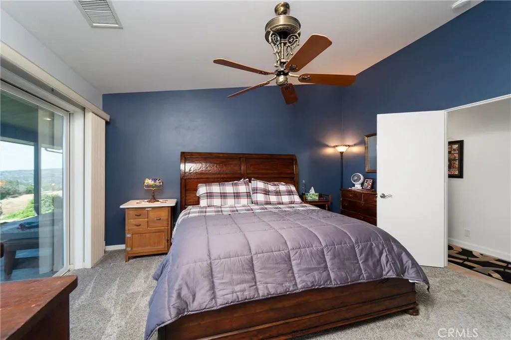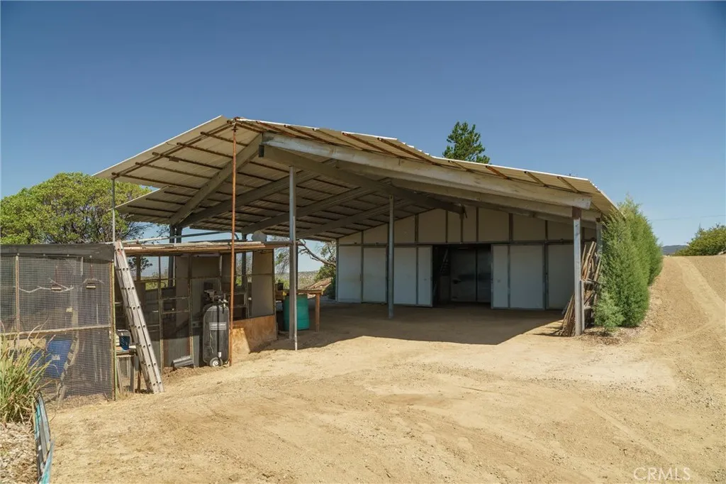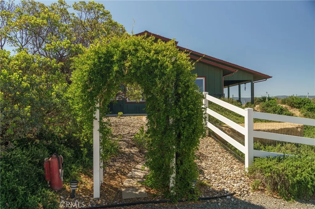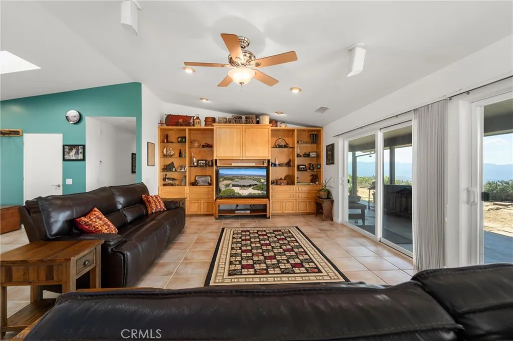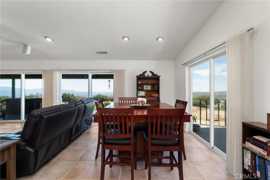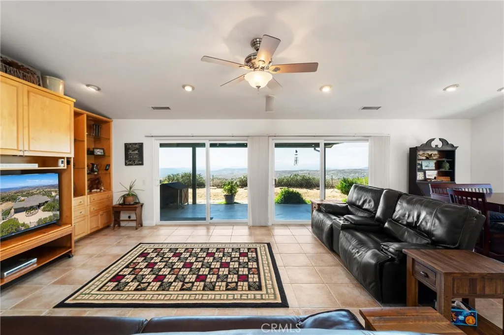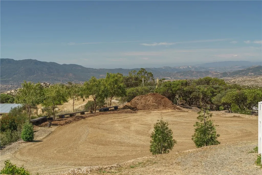 Discover this private home located at the top of Crazy Horse Canyon Drive in the Lake Riverside Estates community, offering sweeping 180 views extending 3040 miles across Palomar Mountain, Temecula, and Murrieta. This single-story 3-bedroom, 2-bath, 1,940 sq ft home sits on 2.73 fully landscaped acres with fully usable four-tiered space and two barns positioned on opposite ends of the property, including a 36'36' lower barn with breezeway, attached container storage, and 45'24'15' high-clearance covered parking, and a 12'24' upper horse barn with breezeway and 45'36'15' high-clearance covered parking suitable for RVs, trailers, or equipment. Inside, the open-concept layout connects the living room, dining area, and kitchen, creating a comfortable and functional living space. The great room includes a built-in buffet, entertainment center, and wine refrigerator. The kitchen features a central island and an adjacent pantry and laundry room with built-in shelving, office workspace, and a utility sink. An entry skylight above the front door and solar tubes in both bathrooms provide additional natural light. Four west-facing sliding glass doors frame the views and connect the home to the outdoor setting. The primary bedroom includes backyard access, a large walk-in closet, a 5'6' walk-in tiled shower with dual vanities, and a separate private toilet room with window. The fully covered rear patio provides a relaxing outdoor setting with some of the best views in the community. The immediate backyard area is fenced for pets. The landscaped property includes approximately 300 trees