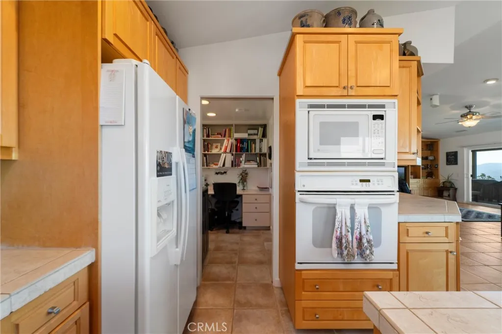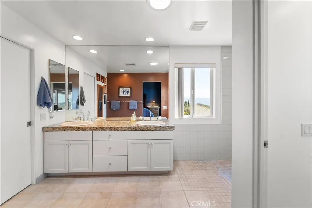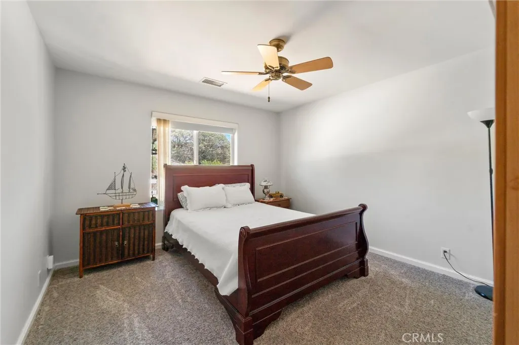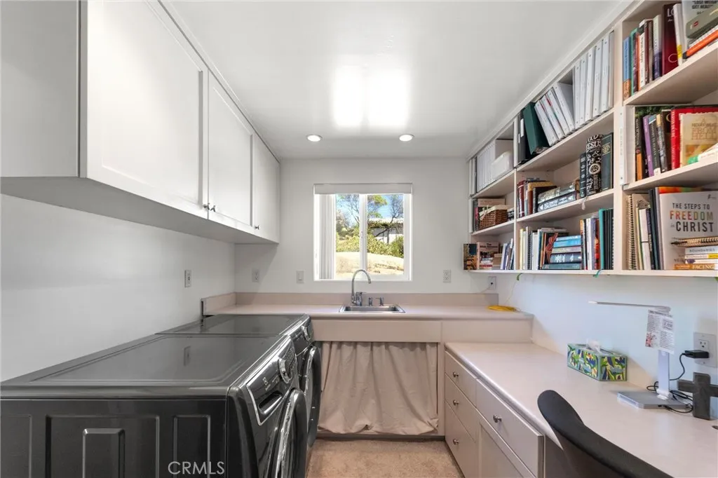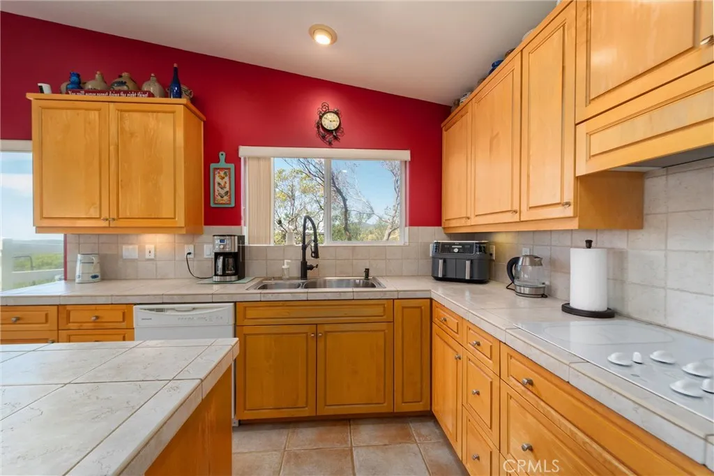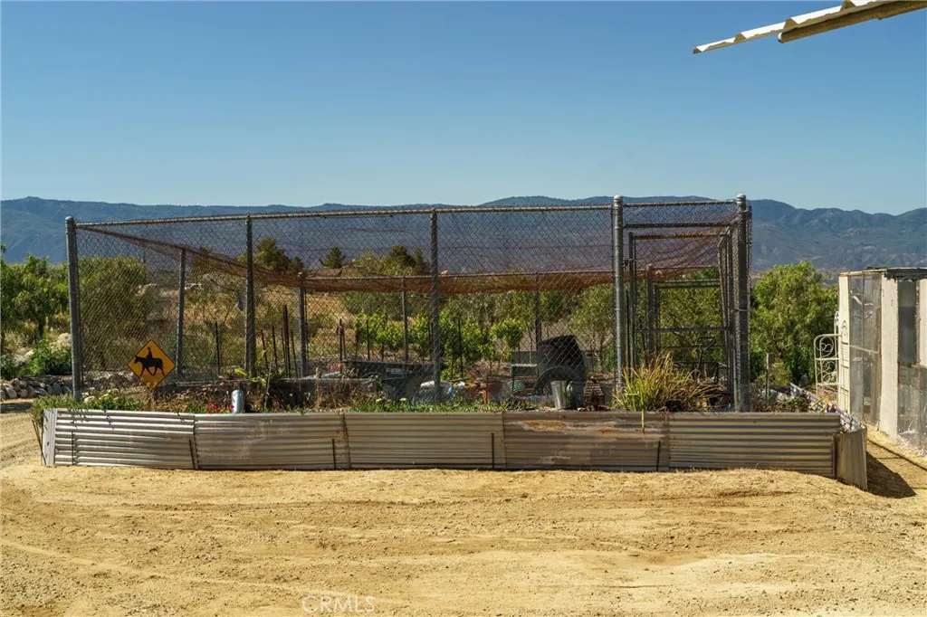 Discover this private home located at the top of Crazy Horse Canyon Drive in the Lake Riverside Estates community, offering sweeping 180 views extending 3040 miles across Palomar Mountain, Temecula, and Murrieta. This single-story 3-bedroom, 2-bath, 1,940 sq ft home sits on 2.73 fully landscaped acres with fully usable four-tiered space and two barns positioned on opposite ends of the property, including a 36'36' lower barn with breezeway, attached container storage, and 45'24'15' high-clearance covered parking, and a 12'24' upper horse barn with breezeway and 45'36'15' high-clearance covered parking suitable for RVs, trailers, or equipment. Inside, the open-concept layout connects the living room, dining area, and kitchen, creating a comfortable and functional living space. The great room includes a built-in buffet, entertainment center, and wine refrigerator. The kitchen features a central island and an adjacent pantry and laundry room with built-in shelving, office workspace, and a utility sink. An entry skylight above the front door and solar tubes in both bathrooms provide additional natural light. Four west-facing sliding glass doors frame the views and connect the home to the outdoor setting. The primary bedroom includes backyard access, a large walk-in closet, a 5'6' walk-in tiled shower with dual vanities, and a separate private toilet room with window. The fully covered rear patio provides a relaxing outdoor setting with some of the best views in the community. The immediate backyard area is fenced for pets. The landscaped property includes approximately 300 trees