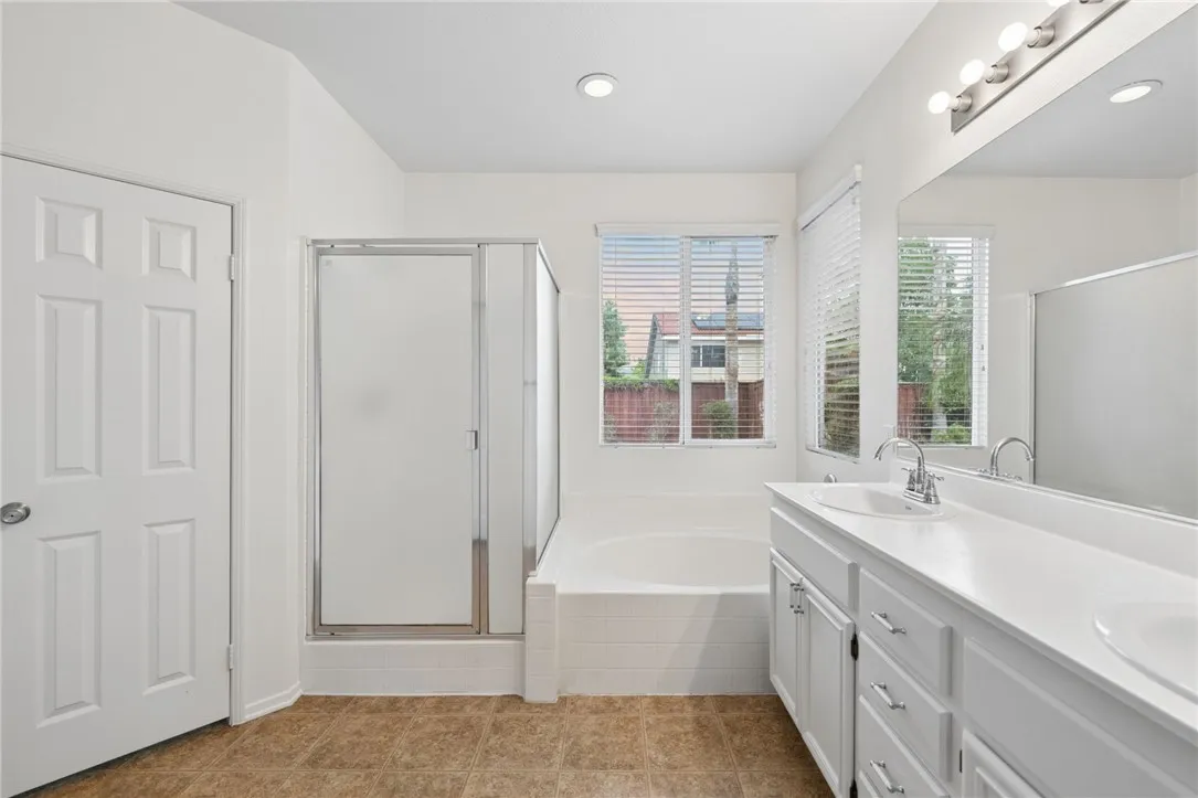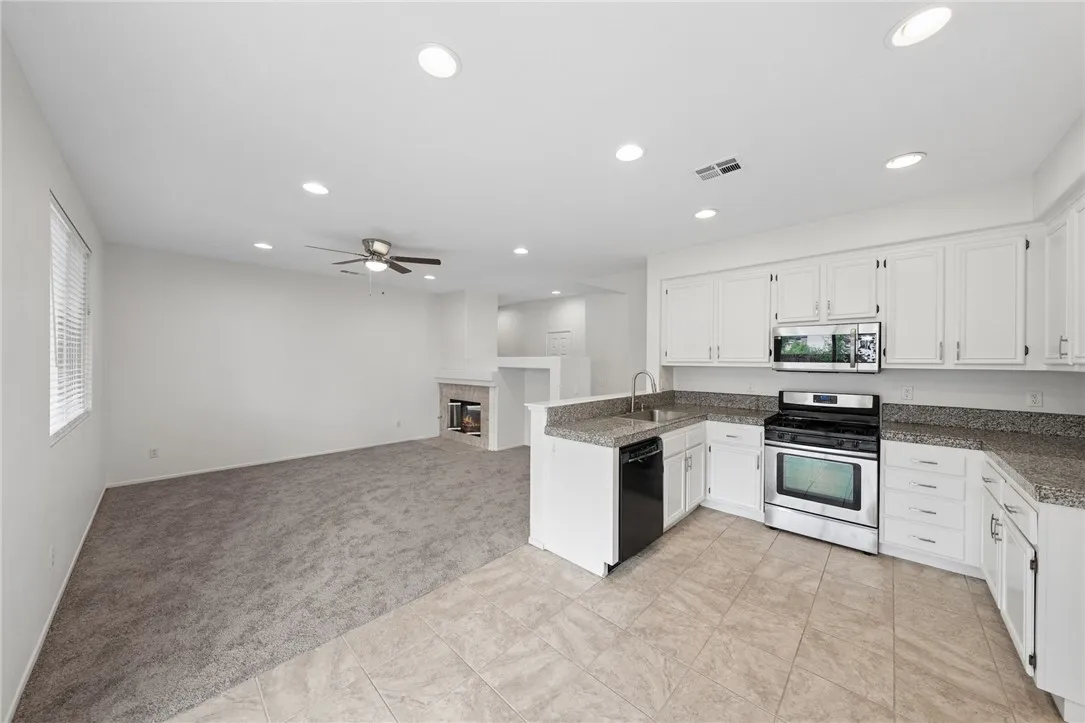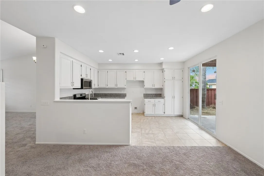 Move in ready and beautifully refreshed, this single story home features 4 spacious bedrooms, 2 baths, and a 3 car garage. Enjoy an open floor plan with high ceilings, new interior paint, new neutral tone carpet, stylish light fixtures, and newly painted kitchen and bath cabinets. Kitchen has granite countertops, plenty of counter space, new stainless steel sink & garbage disposal. A cozy fireplace anchors the family room, while plantation shutters add charm to the living space. The large primary suite offers a walk in closet, double vanity sinks, a walk in shower, and a relaxing soaking tub. Secondary bedrooms are a nice size with guest bathroom at the hallway. Laundry room is at the end of the hallway and easy access to the garage . Conveniently located near shopping, dining, the freeway, and MSJC college. This home is a must see!!!