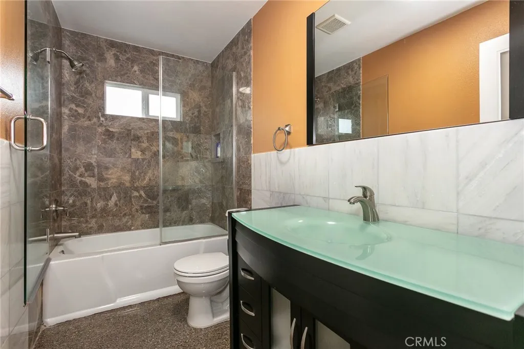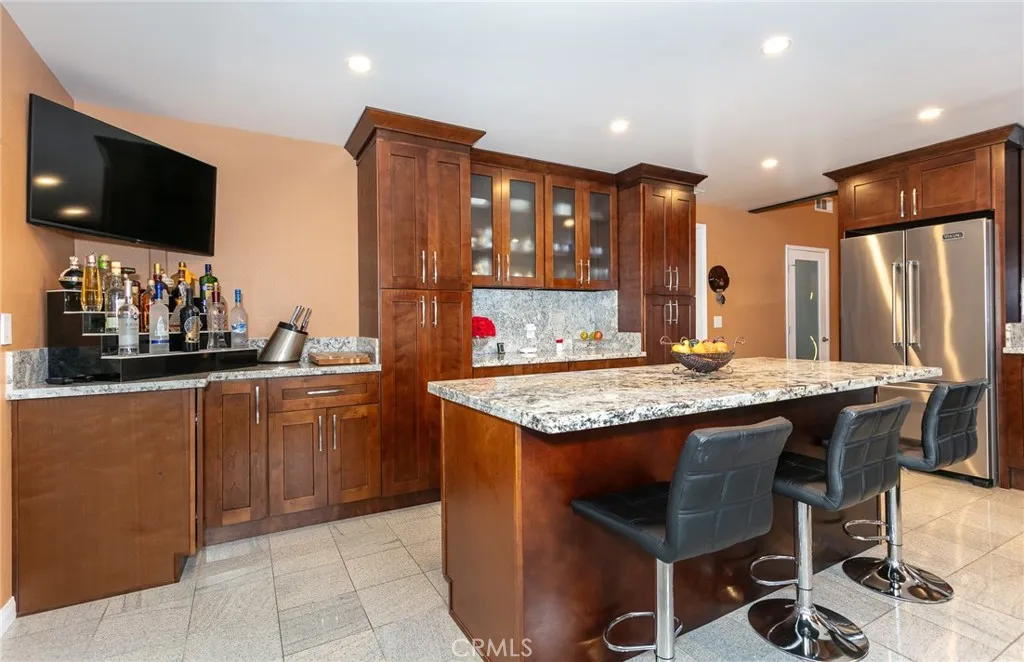 Set on a quiet, secluded street with a cul-de-sac feel in Woodland Hills, this fully renovated 3-story home offers 3,332 sq.ft. of flexible living space and a highly functional layout. With 6 bedrooms and 4 bathrooms, each level features two bedrooms, creating a versatile setup for multi-generational living, guests, or work-from-home needs. An additional approximately 1,000 sq.ft of storage space on the ground level provides a potential for an ADU conversion or addition. The main level welcomes you with high vaulted ceilings, an open living and dining area, and a spacious kitchen centered around a large island with seating. Custom cabinetry, granite countertops, and stainless steel Viking appliances complete the space. Two bedrooms and two bathrooms are also located on this level. The lower level is designed as a private primary suite, featuring an oversized bedroom with double-door entry, a custom walk-in closet, and direct access to a private deck. A bar/entertaining area and an additional room, currently used as a family room, offer added flexibility. The upper level includes two additional bedrooms, a bathroom, and a private balcony. Outdoor spaces include multiple decks, a front patio with a gazebo, and newly installed vinyl privacy fencing, creating a natural indoor-outdoor flow. An additional approximately 1,000 sq.ft of storage space on the ground level provides a potential for an ADU conversion or addition. Extensive upgrades include a newer roof, two HVAC units, tankless water heater, smart home features (Lutron system, smart entry door lock, Nest thermostat), upg