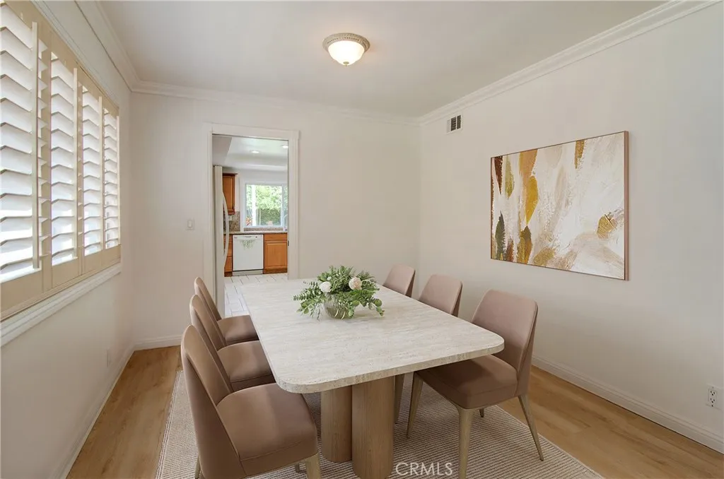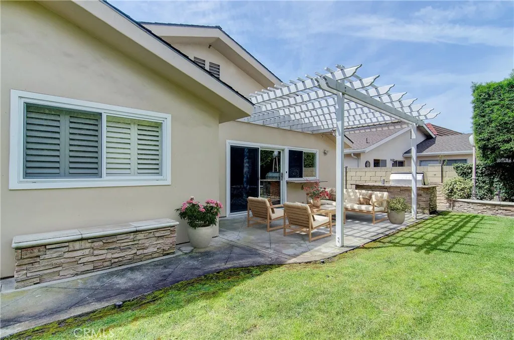 Fantastic purchase opportunity on this 4-bedroom, 2-bathroom single-story "Princeton" model in the popular College Park East neighborhood of Seal Beach. Fresh interior painting and new Luxury Vinyl Flooring throughout the living area. Outstanding features of this property include great curb appeal, a double-door entry, custom-tiled entry, new LVP flooring in the living room, dining room & bedrooms, crown molding, a fireplace in the living room, vaulted ceilings, plantation shutters throughout, an open and bright kitchen with granite countertops, a full granite backsplash, ample pantry space, and recessed lighting. There is a separate family room with a built-in desk and corner cabinet. The large primary bedroom features a walk-in closet and sliding glass doors to the backyard. The primary bathroom has been updated with a custom tile vanity, shower and flooring. Dual-pane windows and sliding doors are throughout the home and the bedrooms are a nice size. The hallway bathroom includes a dual-sink custom-tiled vanity and tub wall. AC has been recently upgraded in 2023. The laundry room includes a washer and dryer, and the bedrooms have ceiling fans and mirrored closet doors. The verdant and private backyard features mature trees creating an oasis for entertaining, a built-in BBQ, and an outdoor patio area. A 2-car attached garage has extra built-in storage cabinets and the driveway features an attractive flagstone ribbon and low maintenance landscape. This beautiful home is located in the coveted "Los Alamitos Unified School district" and close to shopping, restaurants, golf c