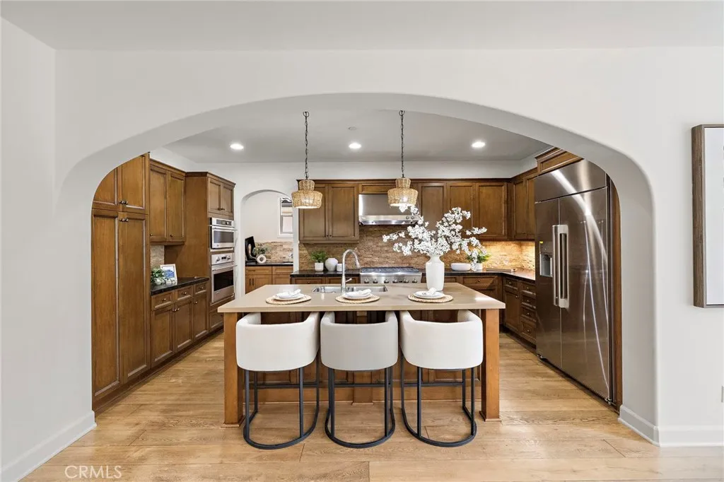 Welcome to 122 Catalonia, a beautifully upgraded 4-bedroom residence with a versatile loft, perfectly positioned in Irvine's sought-after Portola Springs community. Step through the front door into a dramatic two-story foyer featuring a stunning wrought-iron spiral staircase that sets the tone for the entire home. The fully open-concept main level flows seamlessly without walls or partitions, anchored by a full wall of sliding glass doors that dissolve the boundary between indoor and outdoor living. The private south-facing backyard backs directly to the community's lush greenbelt and walking trail elevated with no rear neighbors, offering exceptional privacy and all-day natural light. Inside, the bright south-facing primary suite enjoys the same premium sun exposure. Recent upgrades include brand-new wood flooring and a new built-in refrigerator. Just steps from the community park and tennis courts, this home also benefits from Portola Springs' notably lower tax rate and HOA structure (buyer to verify). A rare combination of privacy, light, and lifestyle move-in ready and thoughtfully refreshed.
