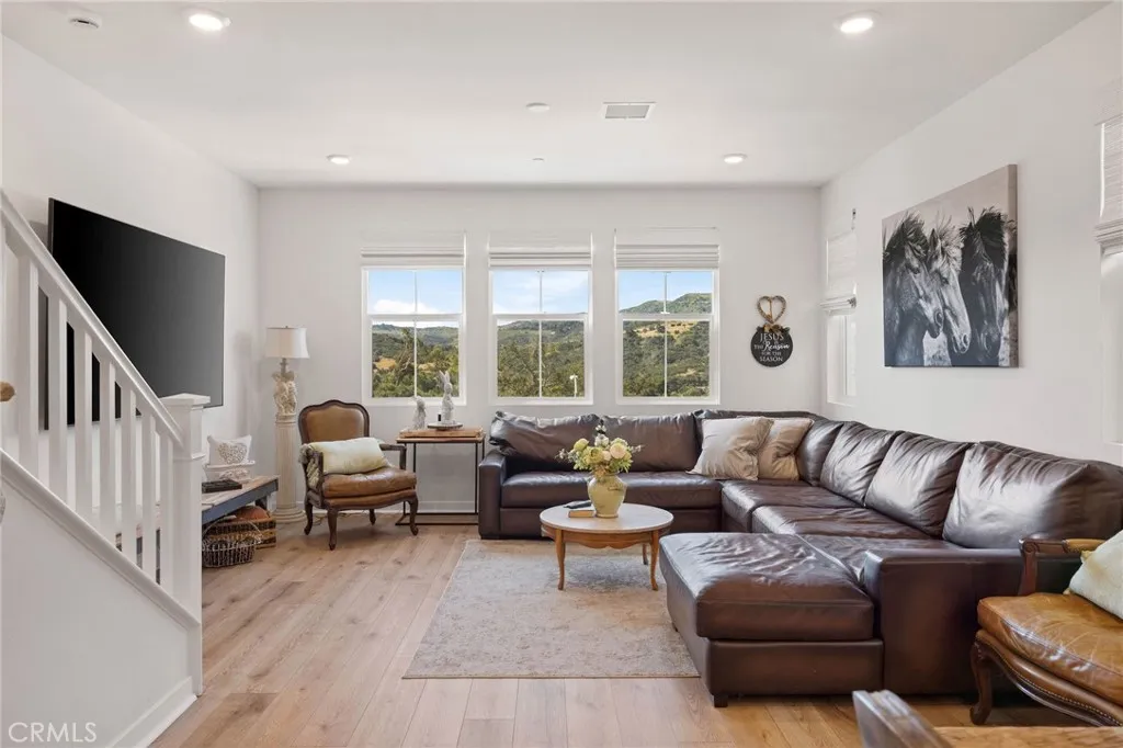 Welcome to this beautifully positioned three-story home in Rancho Mission Viejo offering privacy and breathtaking unobstructed canyon and hill views. Located on the outer edge of the community, this two-bedroom, two-and-a-half-bath residence sits on the largest lot in the neighborhood, featuring an oversized upgraded front patio ideal for outdoor living and entertaining. The first level welcomes you with a versatile bonus room, currently used as a home office with stunning hillside views, along with a private enclosed patio. The second floor hosts the main living area, showcasing high ceilings, recessed lighting, and an abundance of natural light throughout and also has a balcony on the second level. Upstairs on the third level, youll find both bedrooms, including a serene primary suite with picturesque canyon views. Additional highlights include an attached two car garage and solar panels for energy efficiency. Enjoy resort style amenities with one of the lowest HOA dues in the village, including a lagoon pool, 24-hour fitness center, lap pools, spas, barbecues, a pond, game room, hilltop bar, sports courts, dog parks, and scenic trails! This rare opportunity to own a premium view property with exceptional indoor-outdoor living in one of Orange County's most sought-after communities.