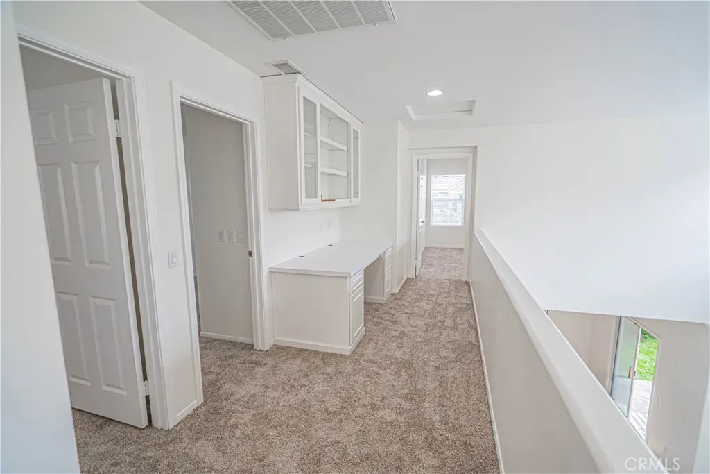 Welcome to this move-in-ready 3 bedroom, 2.5 bathroom corner home with OWNED SOLAR on a quiet cul-de-sac in the desirable Copper Hill North area of Saugus. Freshly painted, with brand new carpet throughout, the thoughtfully laid out floorplan begins with the oversized kitchen featuring solid hardwood cabinetry - the perfect place for preparing family meals or acting as a central hub for entertaining guests. Soaring ceilings and plenty of natural light are the signature of the living room which flows naturally into the dining area, both of which invite you to step through the patio doors into the backyard to enjoy the beautiful SoCal weather, day or night. A half bathroom downstairs easily accommodates your guests and provides day-to-day convenience for you. The three bedrooms upstairs are all spacious, and the primary suite offers the addition of a large en-suite bathroom and walk-in closet. The additional hall bathroom is plenty large for sharing, with plenty of counter space and storage courtesy of an oversized vanity. A built-in desk in the hall area makes a great home office or a great place for homework and studying, without taking up bedroom space. A tankless water heater issues instant and continuous hot water for the entire home, and the laundry is all contained in its own area inside. Not to mention, you get access to a beautiful association pool right up the street. All of this with low HOA dues - What more could you ask for? Make this home yours today!