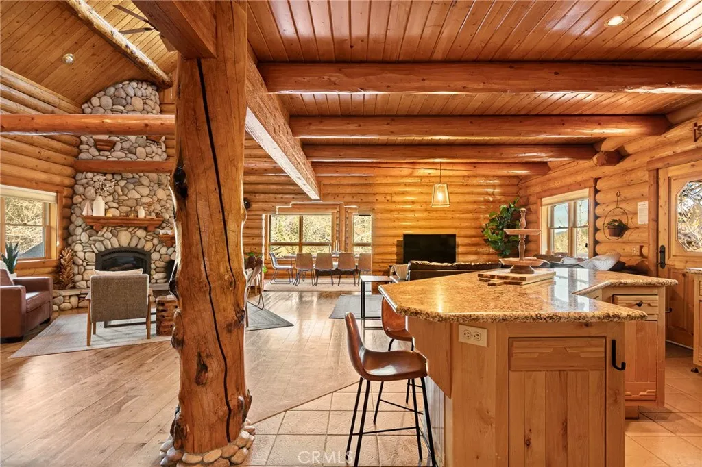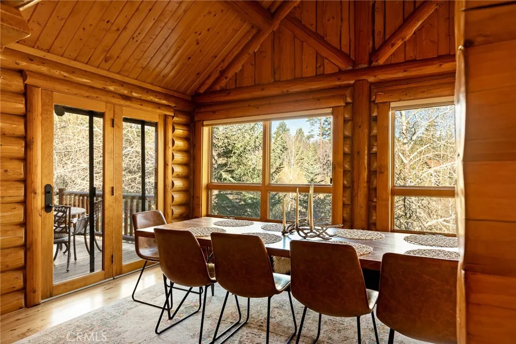 Tucked away in the serene beauty of the Moonridge area, this stunning Lindley-built full-log cabin offers a rare sense of peace, privacy, and connection to nature. With no home directly behind, the setting feels wonderfully secludedsurrounded by towering trees and breathtaking aspens whose leaves shimmer and flutter in the mountain breeze. A wraparound porch spans nearly the entire home, inviting you to relax, unwind, and fully take in the tranquil alpine surroundings. From the moment you arrive, this home simply feels specialone that must be experienced to truly appreciate. Inside, authentic full-log craftsmanship shines throughout, creating a warm and inviting mountain retreat. The dramatic floor-to-ceiling river rock fireplace anchors the living space, while vaulted ceilings and abundant windows fill the home with natural light. A gorgeous formal dining room, surrounded by windows and showcasing incredible views, opens directly to the back porchcreating the perfect setting for indoor-outdoor dining and entertaining. There's rich wood flooring, a beautifully appointed kitchen with granite countertops, and stainless steel appliances. The spacious layout includes a large loft with walk-in closet and a guest room above the detached garage with it's own heater/AC unit. The primary suite features a private balcony with views of the ski slopes, offering the perfect morning escape. Situated on over half an acre, the fenced and landscaped lot includes a seasonal stream, enhancing the peaceful, storybook setting. Additional highlights include a stamped and colored concrete drivewa