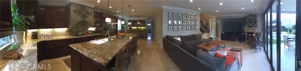 *** IMMACULATE 5-BEDROOM RESORT-STYLE HOME WITH HIGH-END FINISHES IN PRIME FOUNTAIN VALLEY *** - Discover this stunning turn-key residence offering approximately 3,909 square feet of refined living space in one of Fountain Valley's most desirable neighborhoods. You will be immediately taken by the elegant curb appeal of the front garden, which is enhanced by a dramatic, custom iron arched trellis and beautiful stone walk framing the grand entry. Built in 2008 and meticulously maintained, this home showcases high-end decorator finishes throughout, including extensive designer moldings, travertine flooring, granite countertop, and custom lighting. - Boasting 5 spacious bedroom and 3.5 bathrooms, the floor plan includes a convenient downstairs bedroom with private bath, a large bonus room, and an elegant master suite complete with a cozy fireplace, his-and-her walk-in closets, spa-like jet tub, and separate shower. The gourmet kitchen features a 17-foot central island, premium stainless-steel appliances, a giant custom-designed uber-pantry, separate beverage center, and a large dining area -- perfect for entertainers and big families. - Step outside through a Custom, Solid mahogany NanaWall Folding Glass Door System, imported directly from Germany and enjoy seamless indoor/outdoor living that opens to a private resort-style backyard. Relax in the sparkling pool and jacuzzi or enjoy the serene courtyard featuring a beautiful flowing fountain surrounded by professionally maintained landscaping and lush gardens. - Additionally premium features include central heating and air cond
