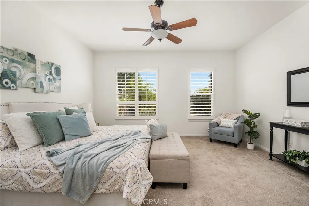 Welcome to San Lorenzo in the Vista Del Verde community, nestled in the heart of Yorba Linda! This charming single-level floor plan is in high demand and offers a comfortable and functional layout. The home boasts a well-lit formal dining area that bathes in natural light. A beautifully appointed living room with a cozy fireplace and custom built-in cabinets, creating an inviting atmosphere. This space seamlessly connects to a spacious kitchen with an oversized granite center island with room for seating, stainless steel appliances, and rich wood cabinetry. The generous primary bedroom comes complete with a large bathroom, featuring dual sinks, a roomy walk-in closet, a relaxing soaking tub, and a spacious shower. The popular floor plan is thoughtfully designed with two additional bedrooms (one of which has been opened up and is currently utilized as an office), two more bathrooms, and an oversized interior laundry room, offering convenience and functionality. The backyard is a private oasis with a covered patio, a putting green for golf enthusiasts, low-maintenance landscaping, and mature trees, providing a serene and tranquil outdoor space. With new flooring and paint make this home move in ready. Ample guest parking is available, and this home is located on one of the most desirable streets in the community. Don't miss the opportunity to become part of this highly sought-after community, which features a sparkling community pool and spa, barbecue facilities, and a clubhouse for residents to enjoy. Furthermore, it is situated within the prestigious Yorba Linda High School