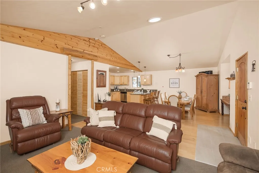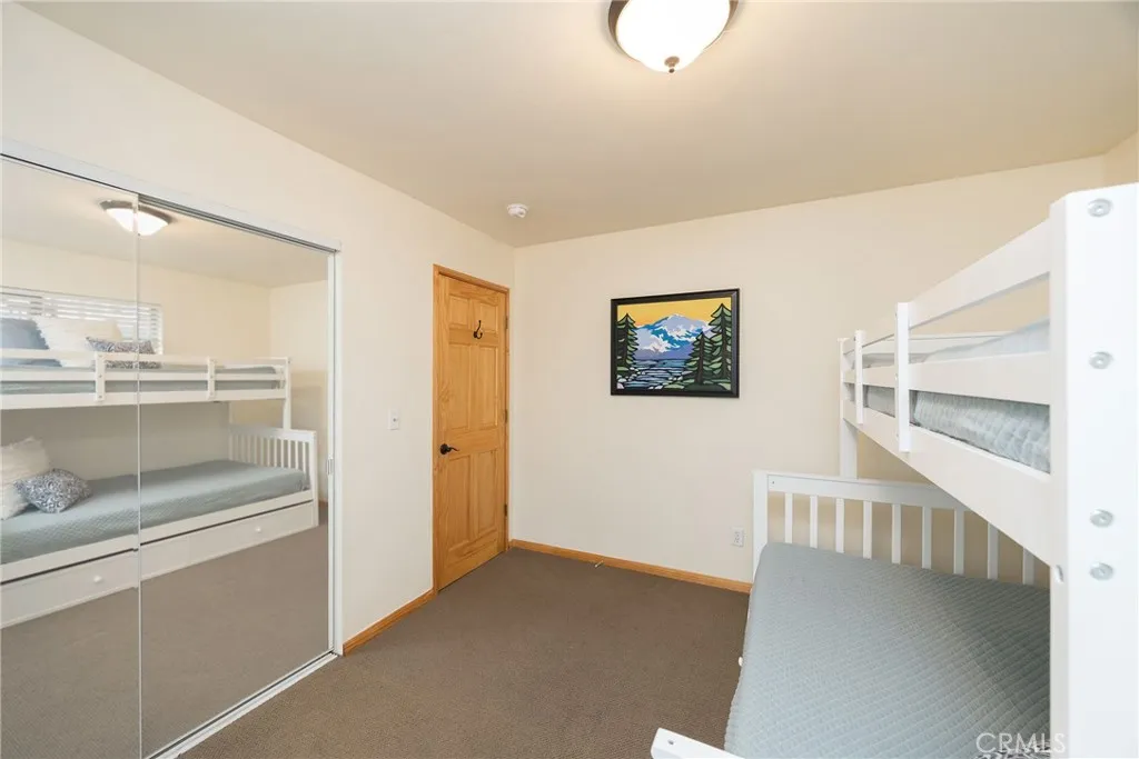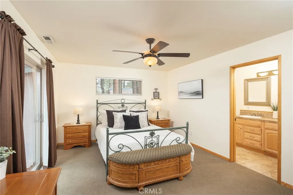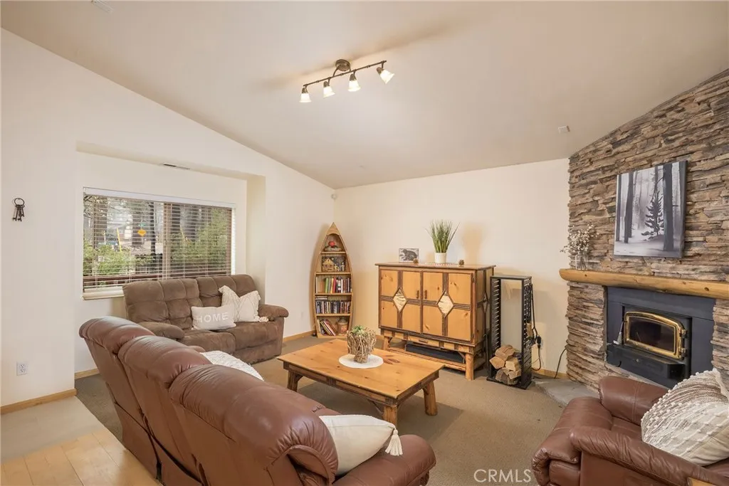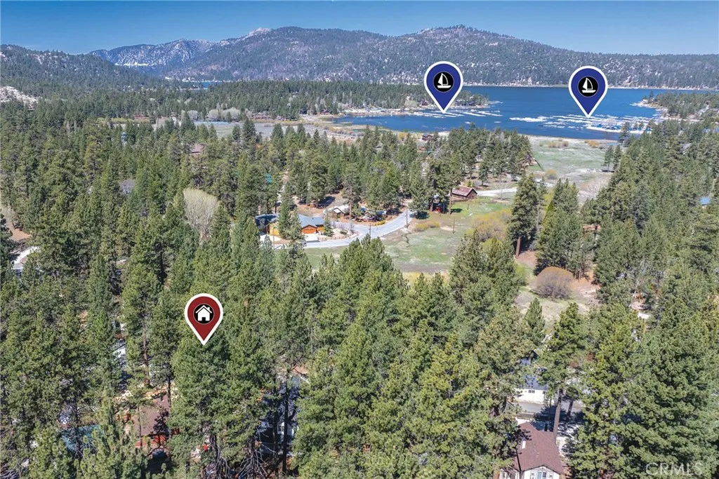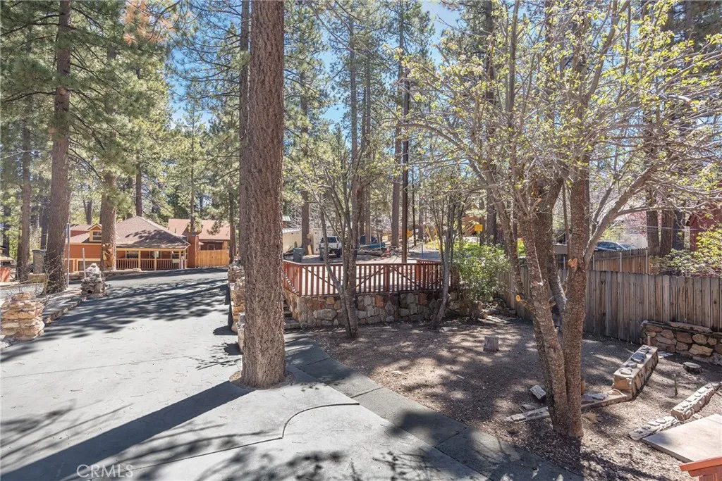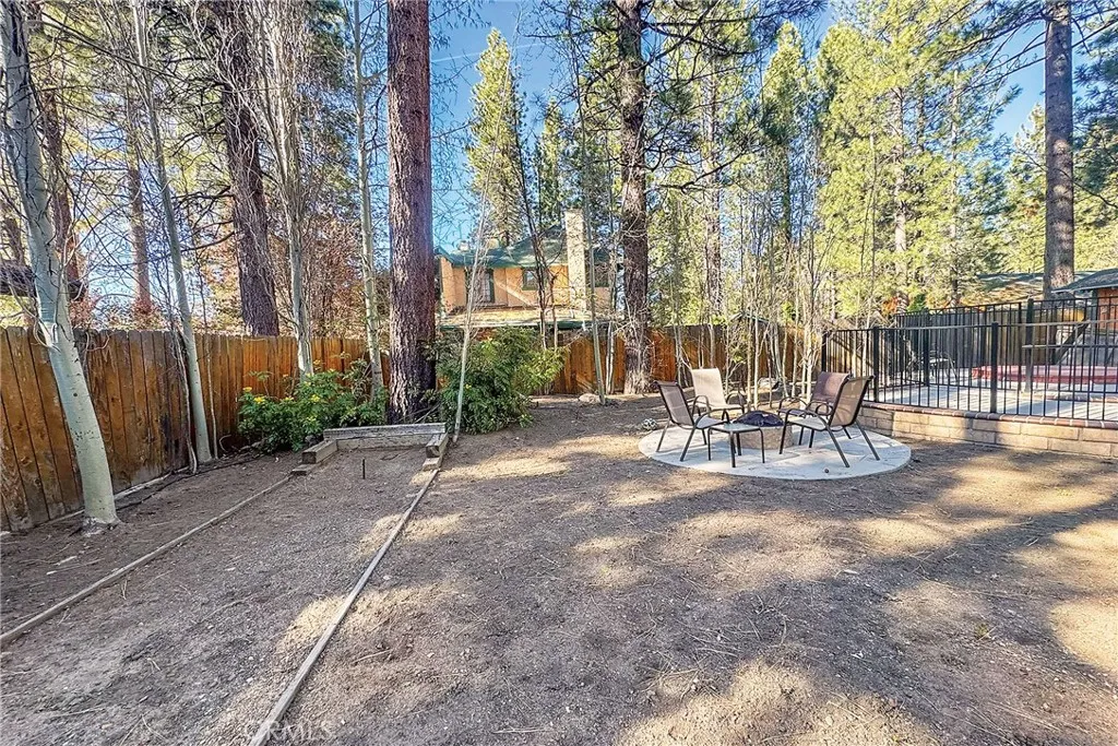 This inviting 1,360 sq ft single-story Big Bear Lake home sets the stage for days that begin with adventure & end with connectionLake Time, first tracks on the slopes, & evenings that draw everyone back together. Set on an expansive 11,000+ sq ft, 150' deep llot, thfe hard-to-find fenced backyard offers space to spread out & enjoy being together, from kids & dogs playing to a fun game of horseshoes or soaking in the spa under Big Bears spectacular, star-filled night skies. The front deck welcomes you, while the rear deck extends the living space outdoors, creating moments to gather, relax & take in the setting. Inside, everything comes together in the bright, flowing Great Roomthe kitchen becomes the hub for cooking & catching up, people gathering at the dining bar as memorable meals are created, with fireside conversation, movies, & board games all part of one shared space. The kitchen features stainless appliances, granite counters, an expansive dining bar, & a pantry cabinet. Anchoring the space is the stacked-stone fireplace with a wood/stove insertso inviting on snowy evenings. The bedrooms offer comfortable spaces to step away & recharge, while one room adds a playful touch with bunk beds & trundleperfect for sleepovers, extra guests, or fun, memory-filled Big Bear nights. The primary suite offers dual sinks, a tub/shower combo with glass doors, & direct access to the rear deck & yard, creating a natural indoor-outdoor connection. Both bathrooms feature tub/shower combos, tumbled travertine vanity tops, & recent updates include fresh interior paint & newly stained dec
