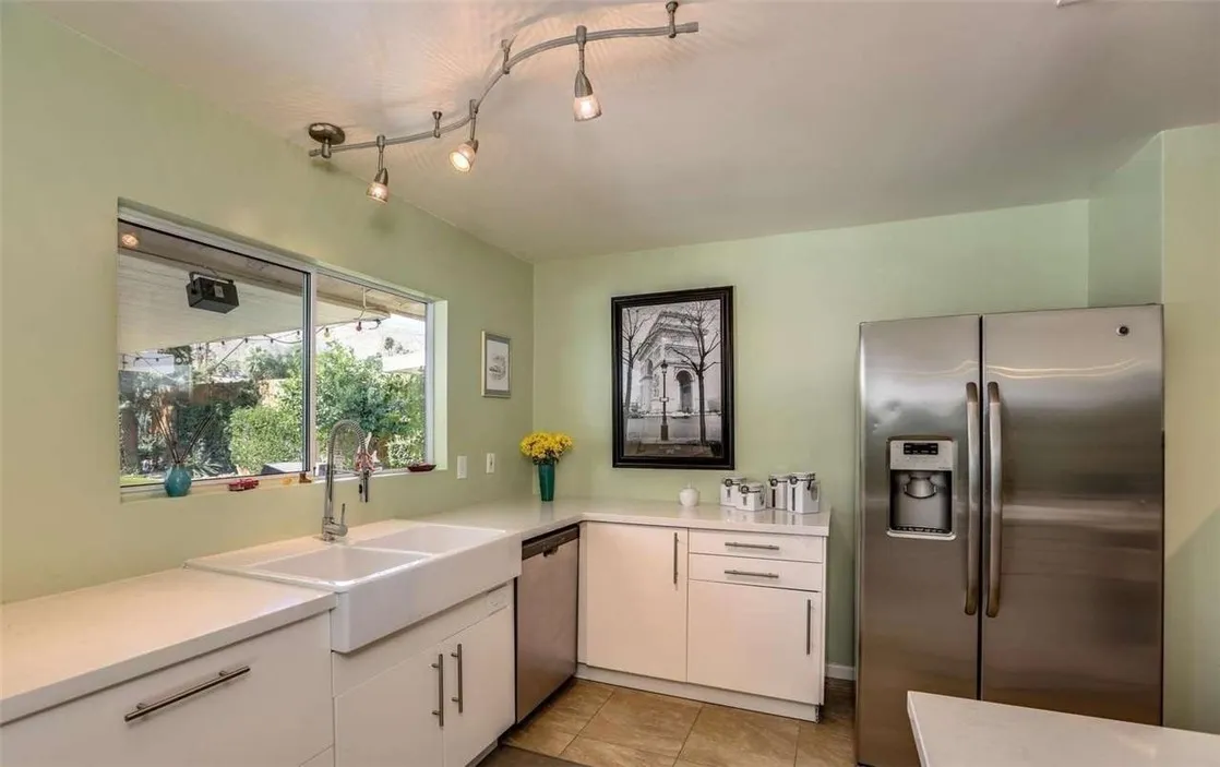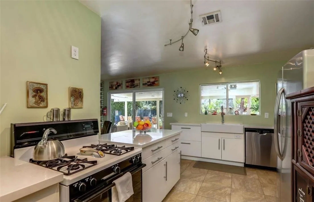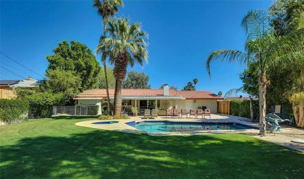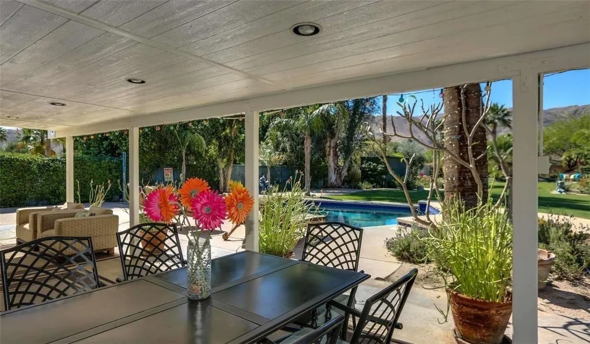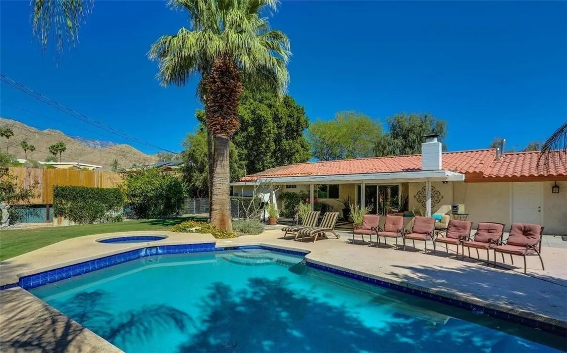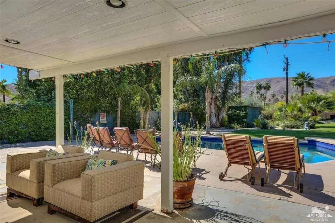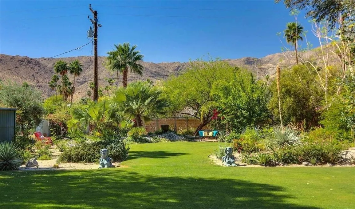 Spectacular mountain views from this beautiful 4 BD / 2 BA home situated on a gorgeous . 44-acre flat lot at the top of the hip and trendy Cathedral City Cove. Some of the many features are a remodeled kitchen, a large wood burning, gas brick fireplace with a raised hearth, ceramic tile floors, 4 carpeted bedrooms, 1 of which is a master suite with private bath, 2 car attached garage, replaced electrical box, new high end A/C unit and ducting and a separate laundry room. The front yard has low maintenance desert scape with a new sprinkler system. The very private back yard with some of the most amazing mountain views is a show stopper. The resort like grounds include a large, inviting pool and spa which were recently re-surface with pebble tech, patios, a lush lawn, and a stand alone work shed/hobby room. This property has been used occasionally as a vacation rental in high demand, is on FEE land (you own the land) and there are no HOA fees. Welcome to paradise!