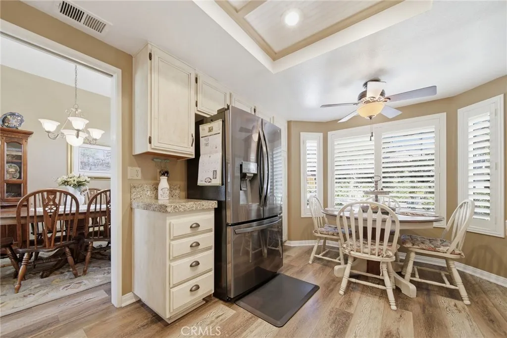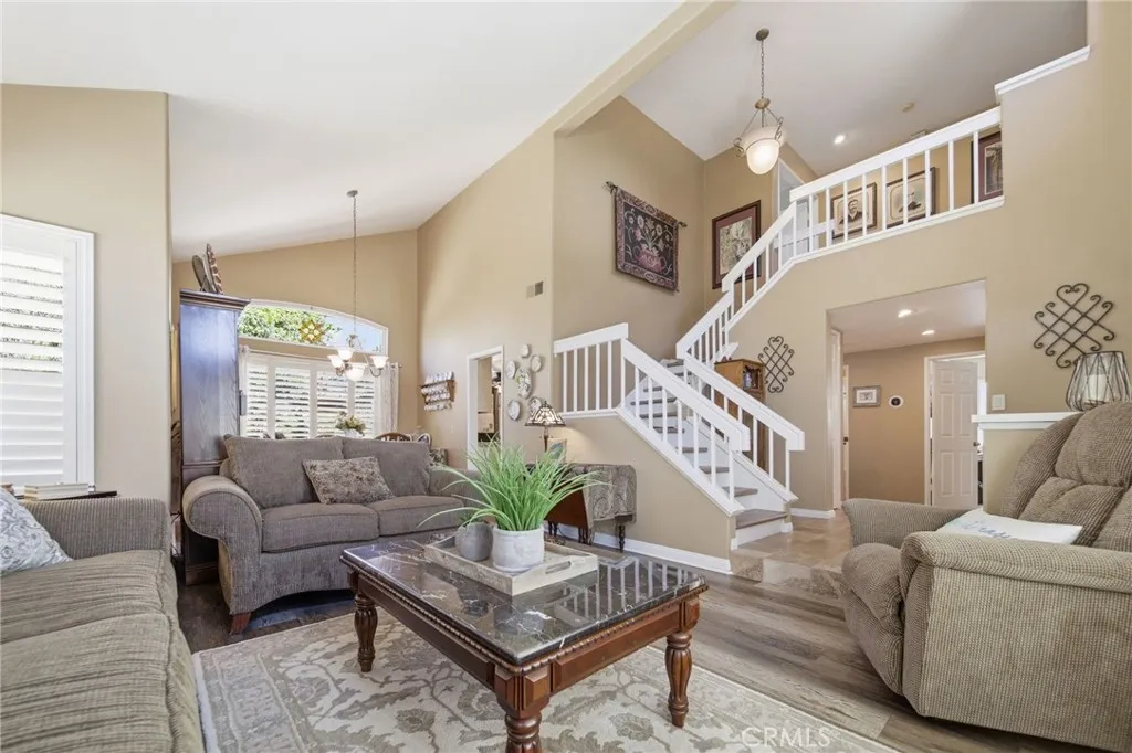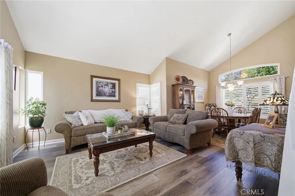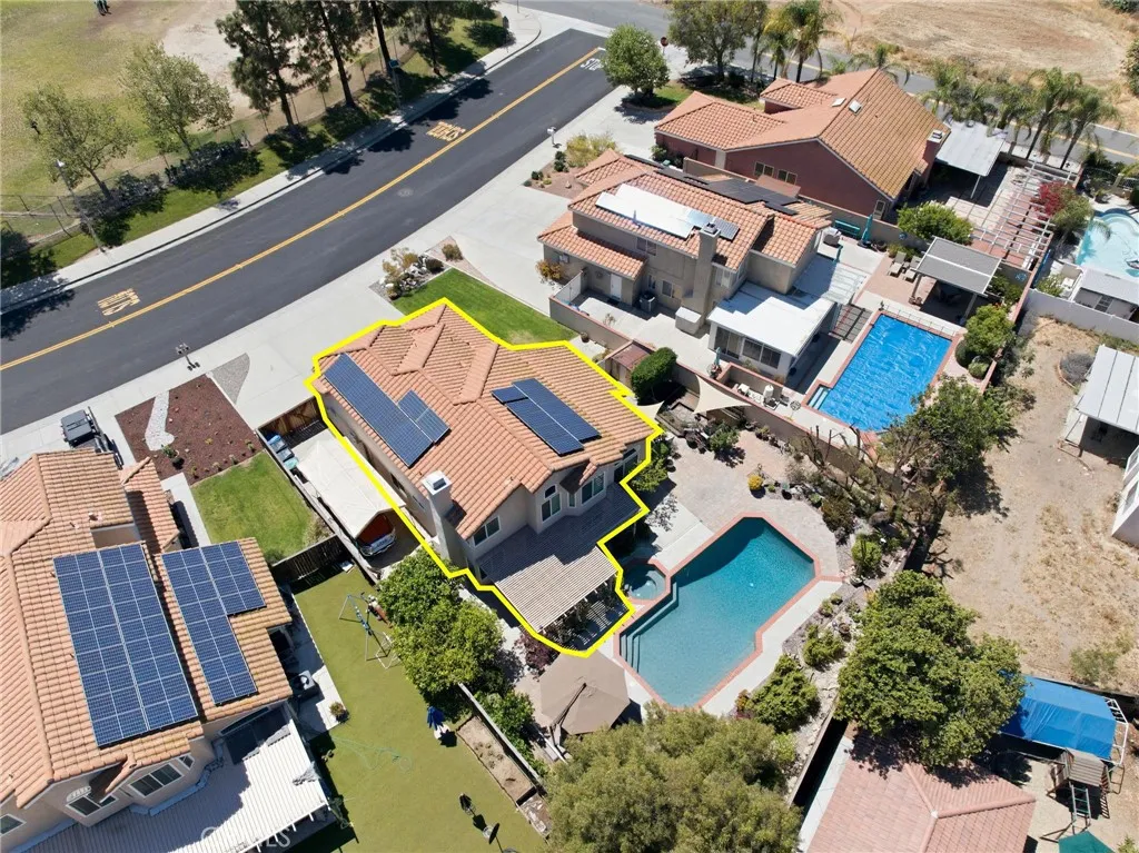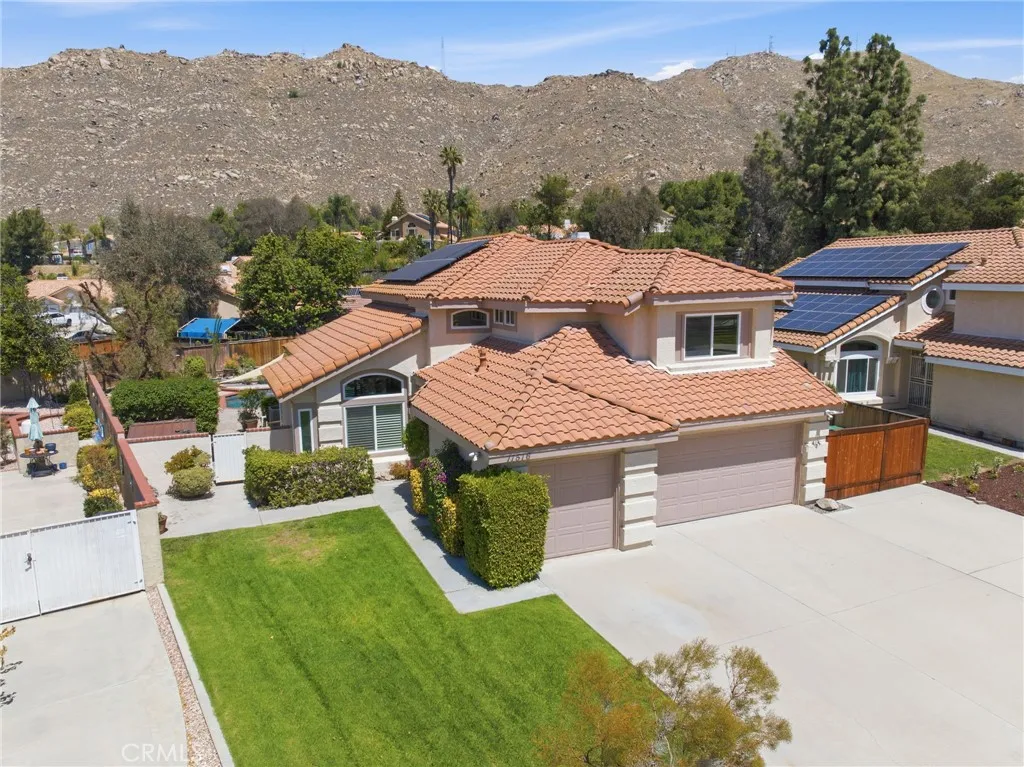 Experience Elevated Living: Pool Home with Paid-Off Solar & Breathtaking Mountain Views! Welcome to 11516 Wordsworth Rd, a pristine sanctuary nestled in the highly sought-after foothills of Northern Moreno Valley. This impeccably maintained 2-story residence offers the perfect blend of energy efficiency, modern upgrades, and an outdoor oasis designed for the ultimate California lifestyle. Step inside to a light-filled floor plan characterized by soaring vaulted ceilings and elegant wood-look flooring. The formal living and dining areas flow seamlessly toward the heart of the home: a chef-inspired kitchen. Featuring white cabinetry with sleek dark hardware, premium granite countertops, and a full suite of stainless steel appliances, this kitchen is as functional as it is beautiful. Enjoy the unique tray-ceiling detail with recessed lighting and stylish pendant fixtures over the breakfast bar. Retreat to a spacious primary suite featuring vaulted ceilings and a spa-like ensuite bath. Indulge in the soaking tub situated under large windows, or enjoy the custom-tiled walk-in glass shower and dual-sink vanity. Your private resort awaits! The sprawling backyard is an entertainer's dream, featuring a sparkling in-ground pool and elevated spa accented with classic brick coping. Relax under the expansive wood-style patio cover, surrounded by lush landscaping and framed by stunning, unobstructed views of the Box Springs Mountains.