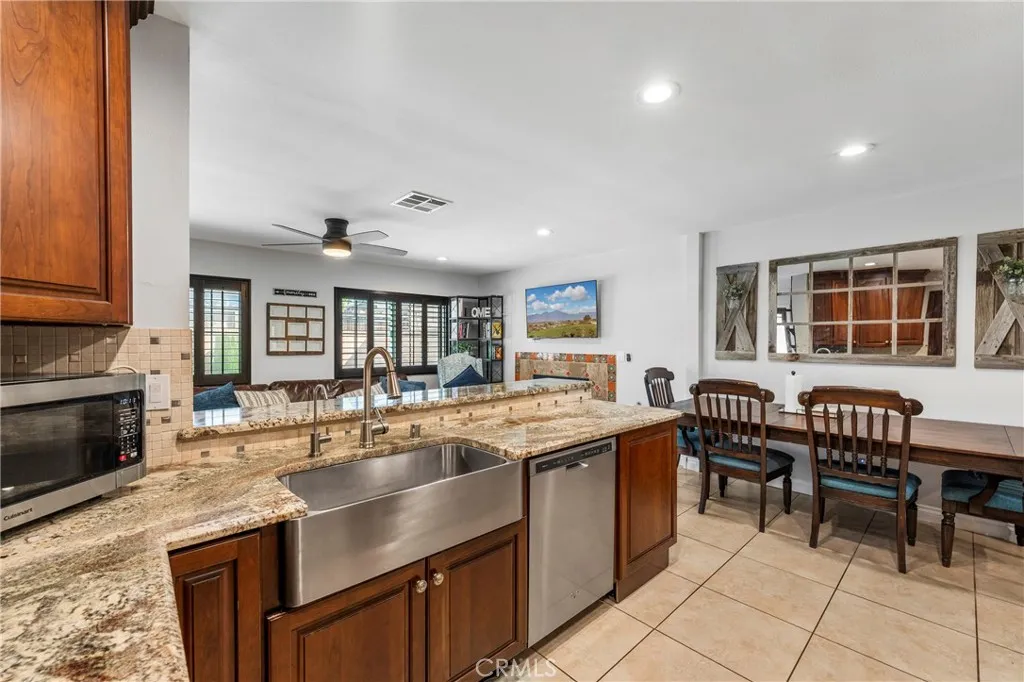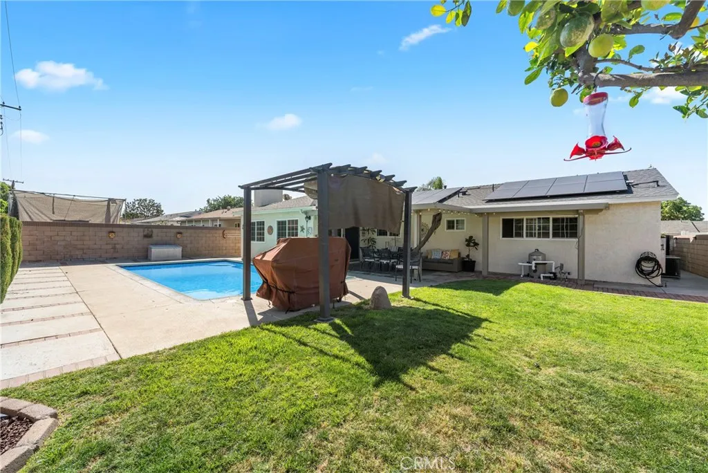This home comes with a brand new paid off solar system, Tesla Powerwall 3 battery, and new roof all installed in 2025, helping keep your electric bills down while also giving you backup power when the sun goes down or during a blackout. This move-in ready home is a great fit for a growing family that needs more space. The layout is open and easy to live in, with multiple living areas that give you flexibility for both everyday life and hosting. The front living room flows into the dining area, while the separate family room with a fireplace opens right up to the kitchen, making it a great space to gather. The kitchen has been updated with quality cabinets, granite countertops, and stainless steel appliances, with a breakfast bar that connects everything together and keeps it functional for busy days. All of the bedrooms are a good size, with updated flooring and a clean, well-kept feel throughout the home. The primary bedroom offers plenty of space along with mirrored closet doors and a comfortable layout. The backyard is set up for fun and entertaining, with a pool, grass area for kids or pets, and a covered patio thats perfect for BBQs or hanging out in the shade. Theres a good mix of hardscape and yard space, so its easy to enjoy without a lot of maintenance. Out front, youve got great curb appeal with a wide driveway, clean landscaping, and a welcoming front porch. The home is in a great location close to parks, schools, and shopping. Youre just minutes from parks, grocery stores, Target, and have easy access to nearby freeways for commuting. If youre looking for a home
