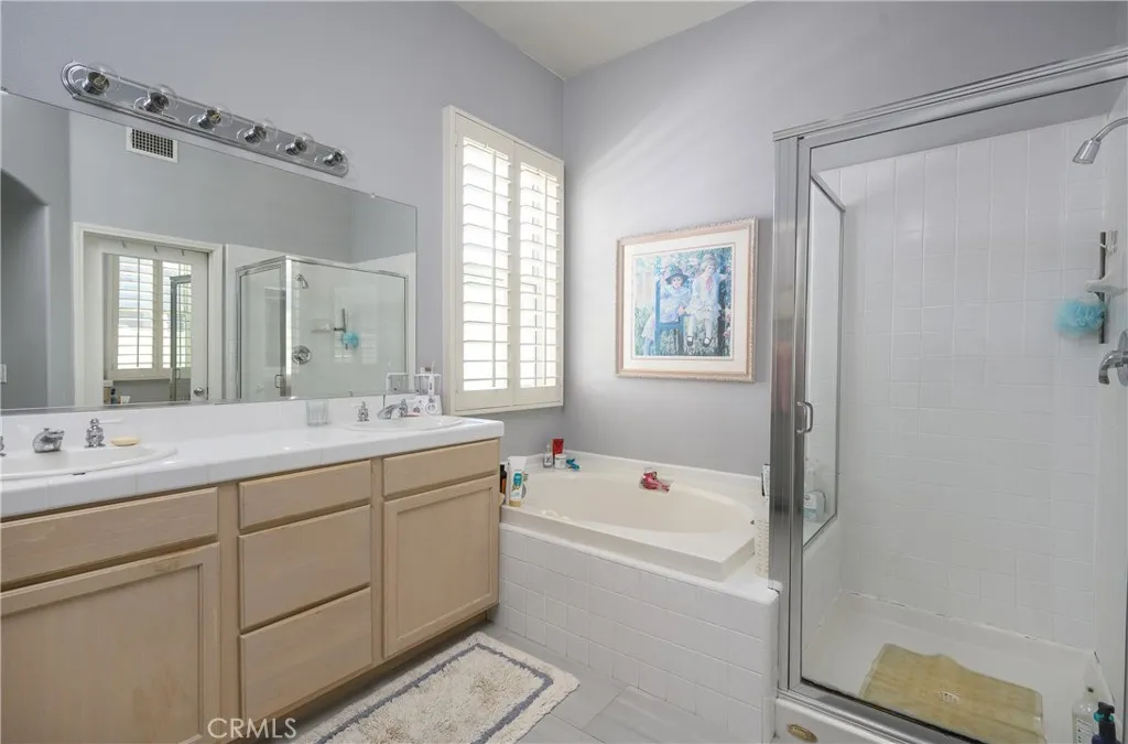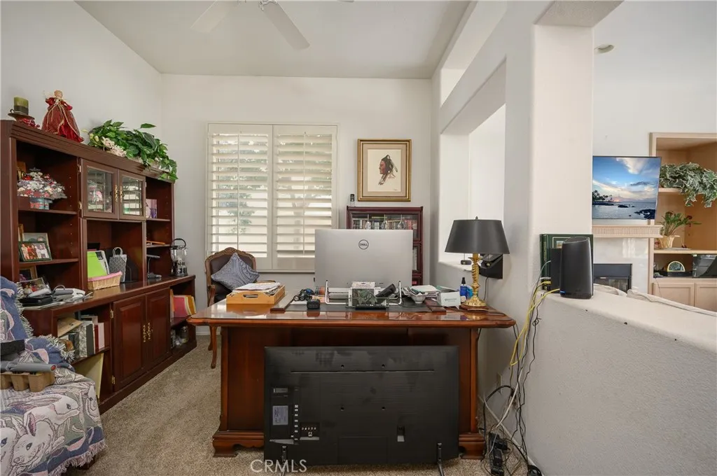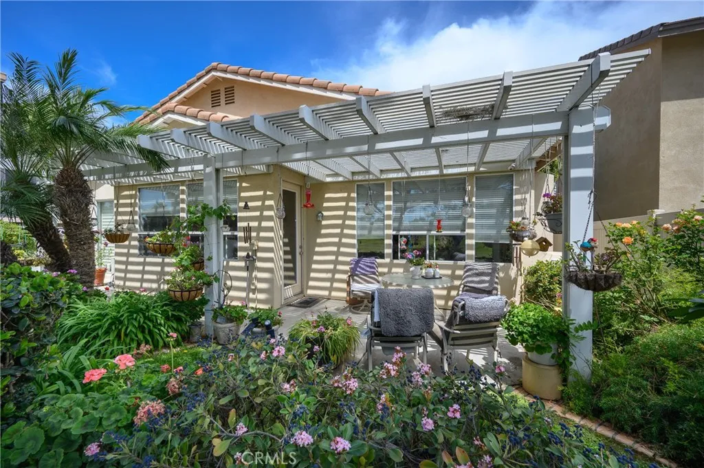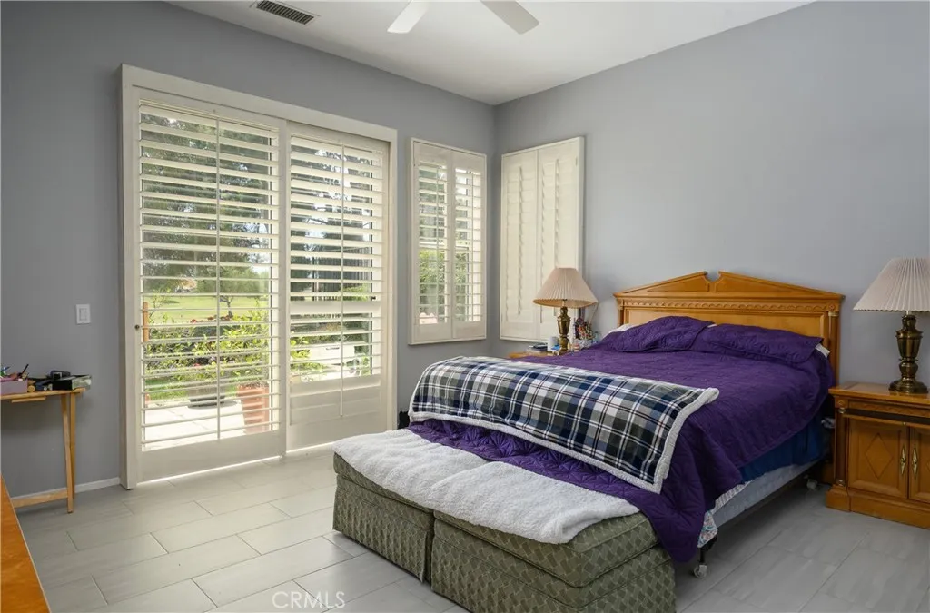 Golf Course View Home in Menifee Single-Story St. Andrews Gem! Enjoy stunning views of the 17th green and fairway from this beautifully situated single-story home in the desirable St. Andrews community of Menifee. Inside, an open and light-filled floor plan showcases high vaulted ceilings and large picture windows that bring in abundant natural light while framing the scenic golf course views. The home features custom ceramic tile flooring, built-in accents, and a seamless layout ideal for both everyday living and entertaining. Offering 2 bedrooms plus a dedicated office that can easily be converted into a 3rd bedroom, the flexible design suits a variety of lifestyles. The spacious primary suite includes a large walk-in closet and an upgraded en-suite bath with dual sinks, a soaking tub, and a separate shower, along with direct access to the backyard. The open-concept kitchen is equipped with stainless steel range, double oven, upgraded cabinetry with decorative glass, tile countertops, and a center island, flowing effortlessly into the inviting family room with a cozy fireplace. Step outside to a beautifully landscaped, garden-inspired backyard with vibrant flowers, and premium golf course views. Additional highlights include two additional bathrooms, an indoor laundry room, a prime location on a public golf course, no HOA, low property taxes, and close proximity to shopping, dining, and everyday conveniences. Located in one of the areas fastest-growing communities, this home offers the perfect blend of comfort, style, and scenic living.