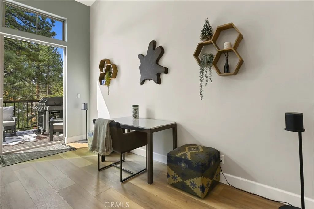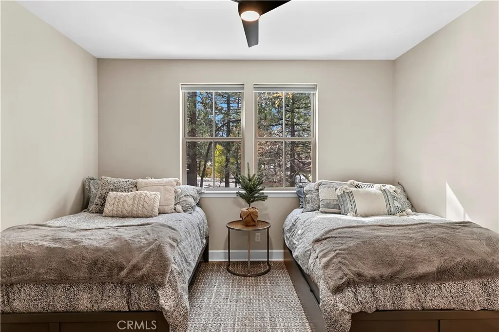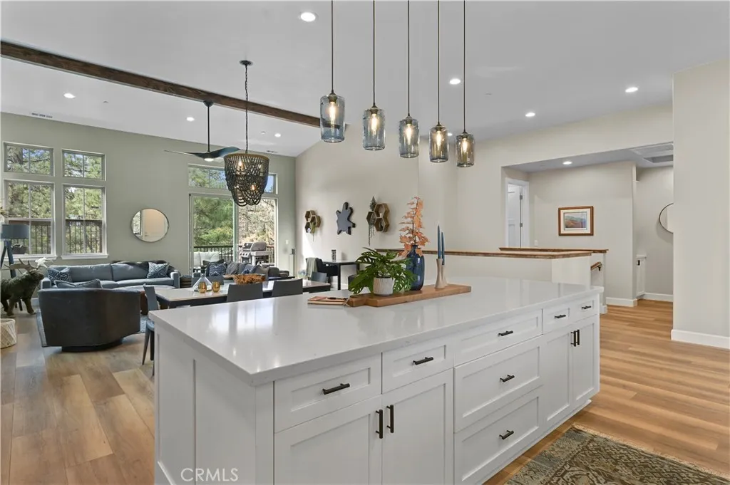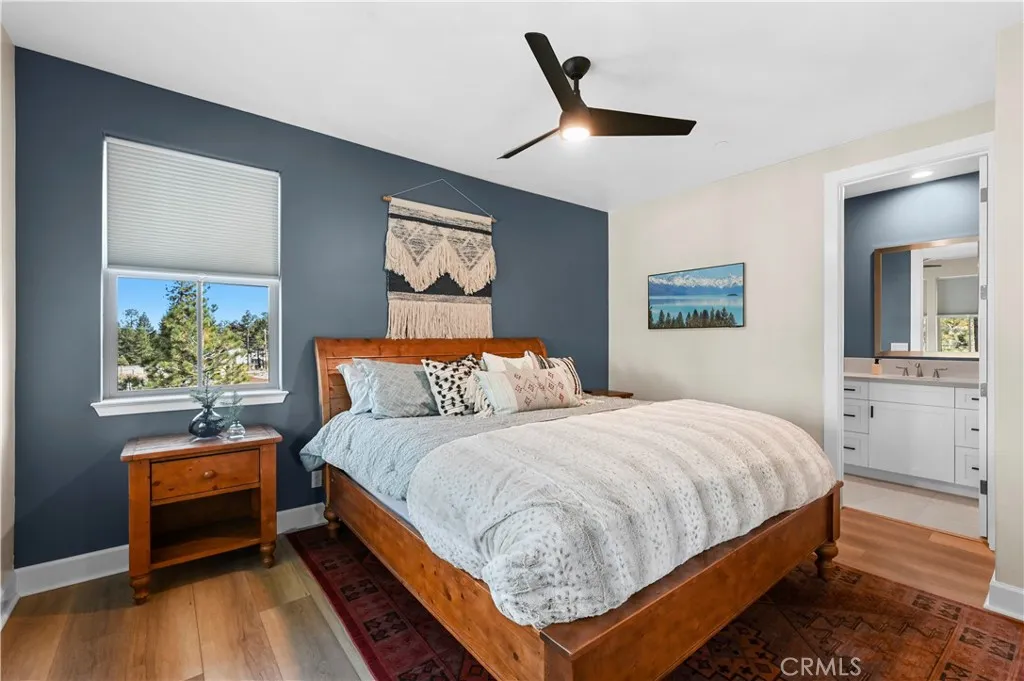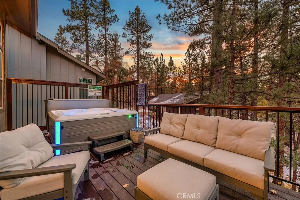 A MUST SEE! Discover the epitome of custom-modern finishes and meticulous design to this newer construction, 4 bedroom, 3 1/2 bath Big Bear Lake Home at THE PINES. Nestled within walking distance to "The Village" and National Forest area this stunning mountain-lake retreat boasts a Gourmet Chef's Kitchen, DACOR appliances, Nest Smart controlled Thermostat and SONOS Home Entertainment Theater systems for a luxury experience and entertainer's dream. Canterbury Elm Plank flooring throughout, leads you through this large "light and bright", open concept floor plan with vaulted ceilings, highlighted by a contemporary, tile finished, gas fireplace. Beautiful, elevated balcony with Hot Springs Hot Tub and BBQ culminate the endless enjoyment to be had at this one of a kind home. The second floor also features 2 spacious Master Bedrooms with ensuite bathrooms and separate laundry room. Downstairs (1st floor) you will find two spacious bedrooms, perfect for additional guests, large family accommodations, two-car garage with EV CHARGING and plenty of storage area for all your year round mountain and lake activities. This unique residence has served as a special family getaway for winter, summer and all-year round enjoyment, as well as generating significant short-term rental income (see supplemental) for the savvy new owner. Come discover the essence of luxury Big Bear Lake living.