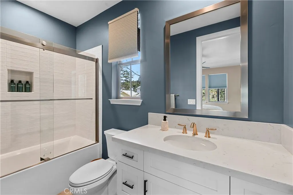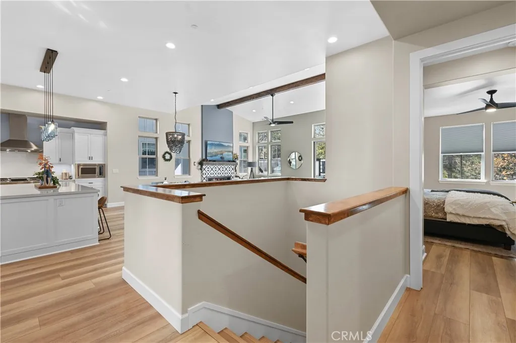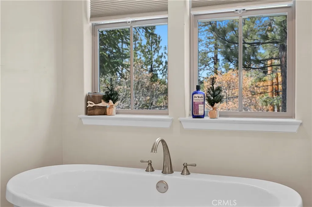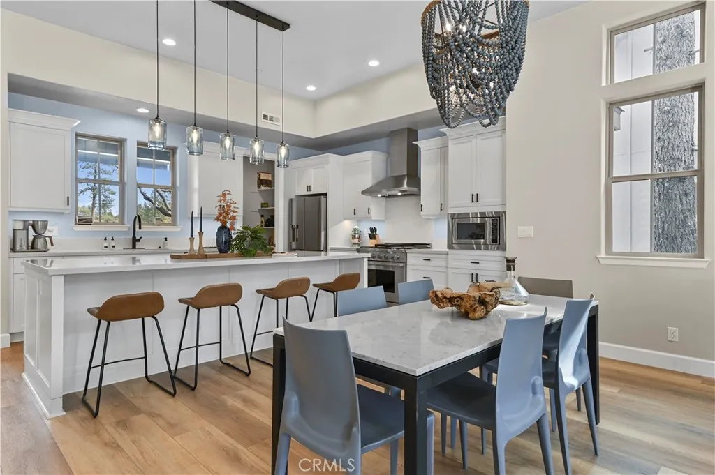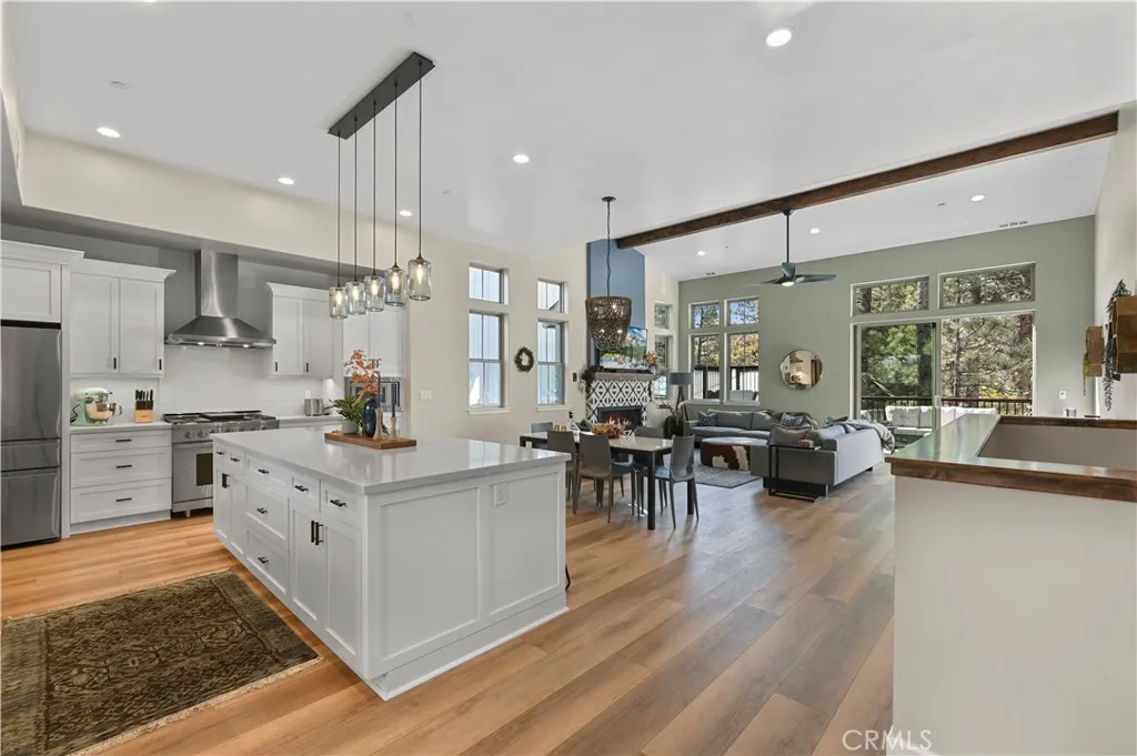 A MUST SEE! Discover the epitome of custom-modern finishes and meticulous design to this newer construction, 4 bedroom, 3 1/2 bath Big Bear Lake Home at THE PINES. Nestled within walking distance to "The Village" and National Forest area this stunning mountain-lake retreat boasts a Gourmet Chef's Kitchen, DACOR appliances, Nest Smart controlled Thermostat and SONOS Home Entertainment Theater systems for a luxury experience and entertainer's dream. Canterbury Elm Plank flooring throughout, leads you through this large "light and bright", open concept floor plan with vaulted ceilings, highlighted by a contemporary, tile finished, gas fireplace. Beautiful, elevated balcony with Hot Springs Hot Tub and BBQ culminate the endless enjoyment to be had at this one of a kind home. The second floor also features 2 spacious Master Bedrooms with ensuite bathrooms and separate laundry room. Downstairs (1st floor) you will find two spacious bedrooms, perfect for additional guests, large family accommodations, two-car garage with EV CHARGING and plenty of storage area for all your year round mountain and lake activities. This unique residence has served as a special family getaway for winter, summer and all-year round enjoyment, as well as generating significant short-term rental income (see supplemental) for the savvy new owner. Come discover the essence of luxury Big Bear Lake living.