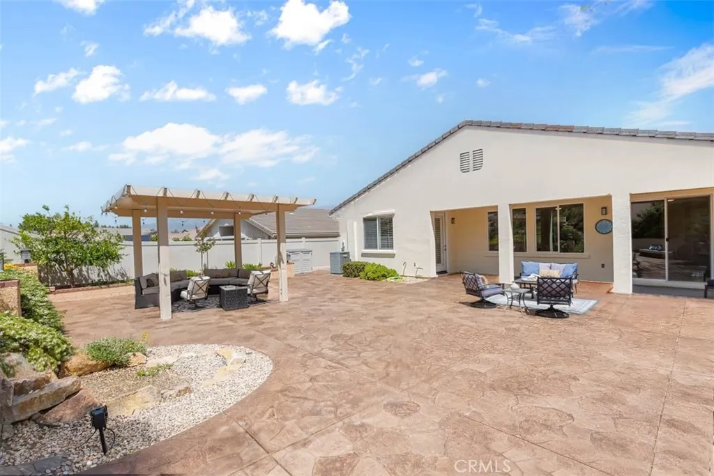 Single-story cul-de-sac home with a backyard designed for true indoor-outdoor living. Located in the gated 55+ community of Four Seasons Beaumont, this Laurel II model offers a bright, open layout with a natural connection to the outdoors and a peaceful waterfall you can see and hear from the main living area. The family room opens to the backyard through a large slider, bringing in natural light and creating an easy flow to the covered patio. The gorgeous built-ins, a cozy fireplace, and a window seat add warmth and give the space a comfortable place to sit and look out to the yard. The kitchen is set up for gathering, with an island, granite counters, a built-in stainless steel range and oven, and a pass-through to the family room that keeps everything connected while still giving you room to cook. Just off the entry, the den with doors and custom built-in bookshelves add functionality and detail to your office or TV room. The secondary bedroom is roomy and open, making it ideal for guests. The primary suite offers a comfortable retreat with a spacious layout, a soaking tub, separate shower, and a generous walk-in closet with built-in organizerscreating a space that works well for both everyday use and relaxing at the end of the day. A separate laundry room with additional storage adds to the everyday functionality of the home. Out back, the covered stucco patio extends the living space, with a separate pergola seating area further into the yard. Stamped concrete, a gentle slope with natural ground cover, and the waterfall feature create a calm, easy setting without a lot