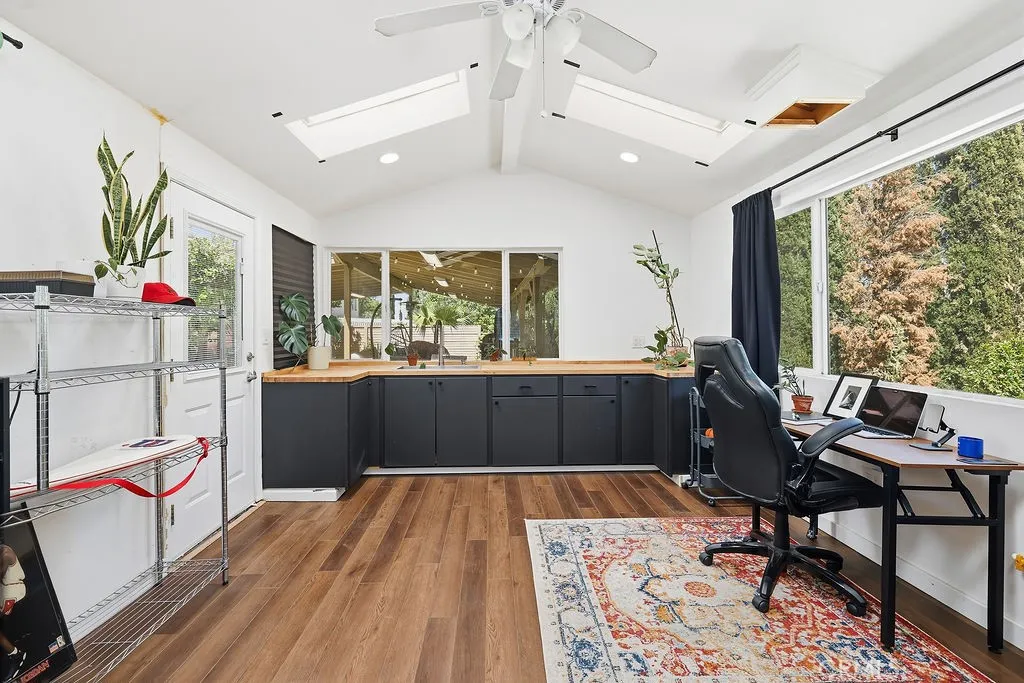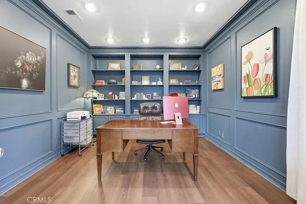 Welcome to this beautifully maintained gated home in the desirable Quartz Hill area of Palmdale, offering space, comfort, and timeless charm. Situated on an expansive ~20,000 sq ft lot, this 4-bedroom, 3-bath residence features 2,729 sq ft of living space with all bedrooms conveniently located on the main level. Step inside to soaring cathedral ceilings, an inviting foyer, and a bright, open layout with a formal dining room, family room, and dedicated office/library. The spacious kitchen is equipped with a center island, double ovens, gas range, and ample cabinetryperfect for entertaining and everyday living. The primary suite offers a private retreat with its own fireplace and generous walk-in closet. Additional highlights include stone and wood flooring, central air, ceiling fans, and a separate laundry room with washer and dryer included. Enjoy outdoor living in the beautifully landscaped backyard featuring multiple patio areas, mature trees, and plenty of space to relax or entertain. A 3-car attached garage and gated community access add convenience and peace of mind. Located in a sought-after Quartz Hill neighborhood with low HOA, this home blends comfort, functionality, and curb appealdont miss this opportunity!