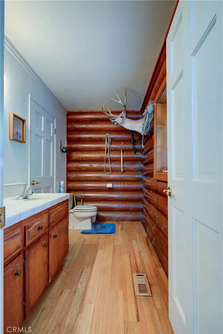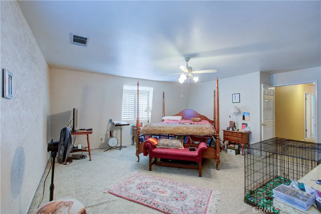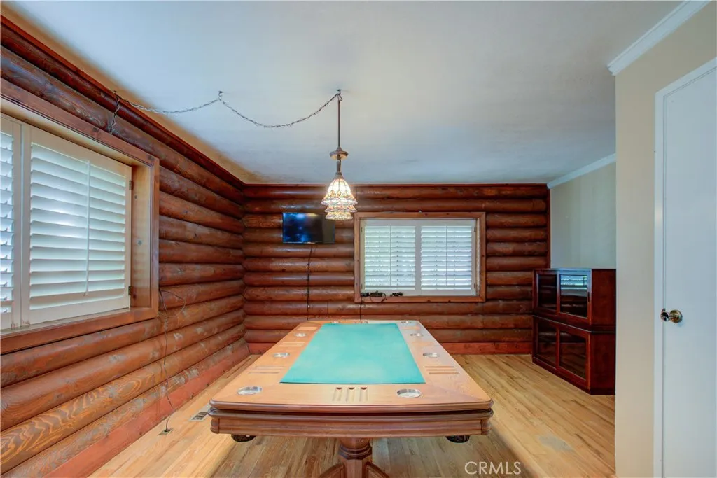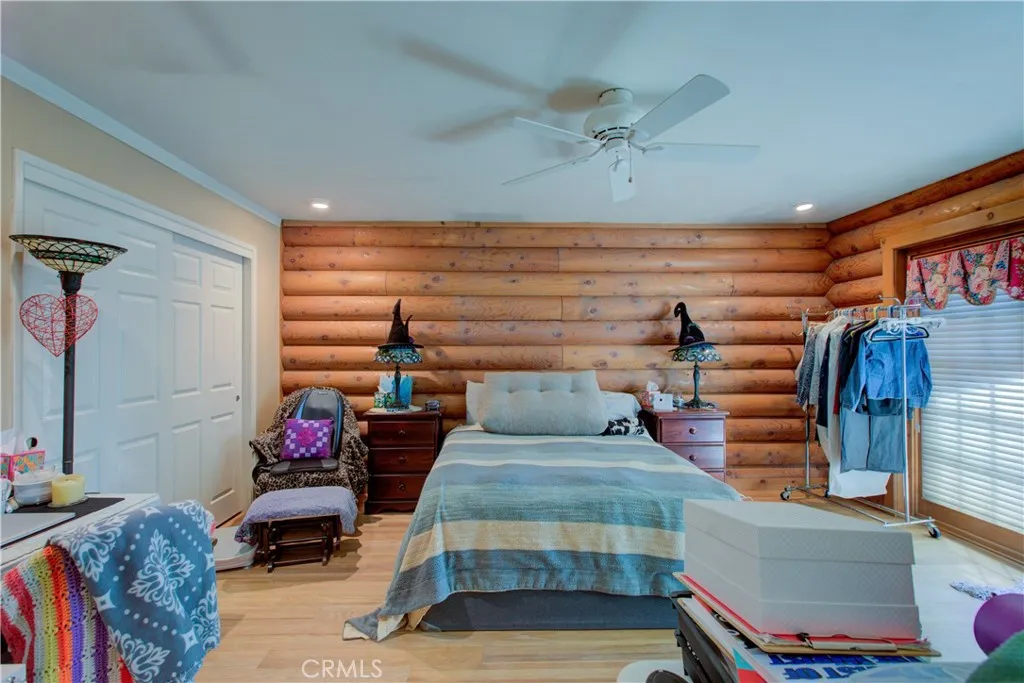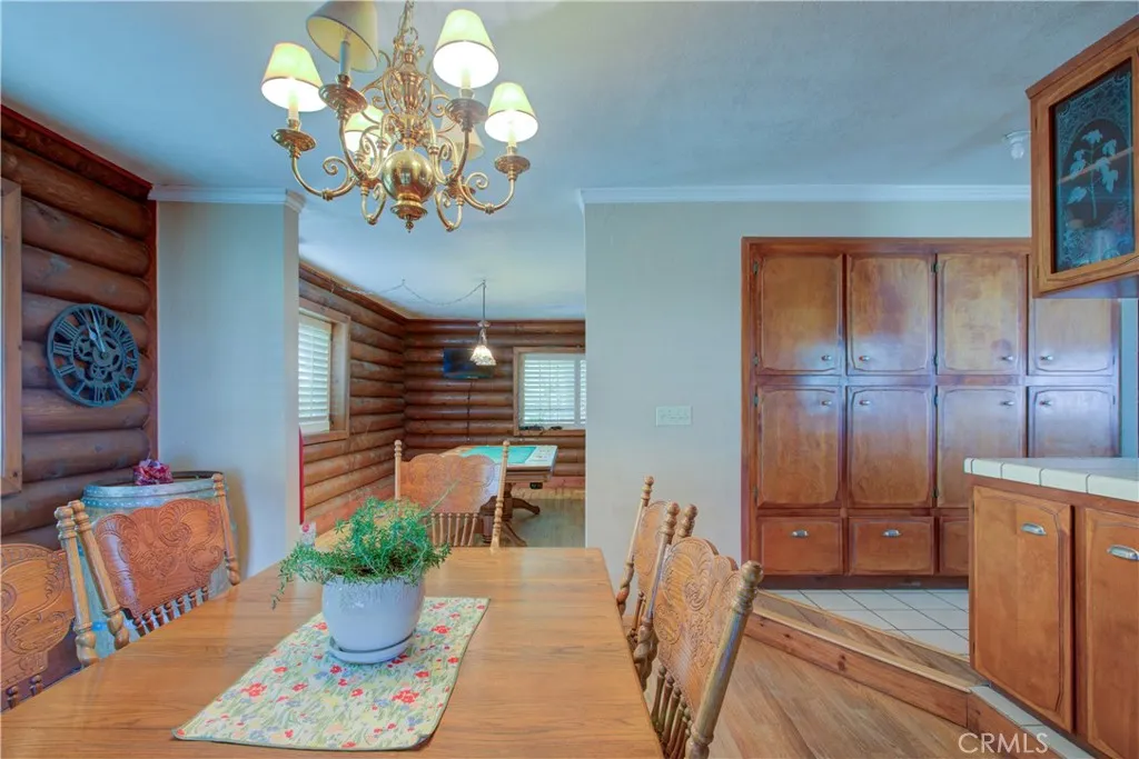 Spacious Ranch-Style Home on 2.6+ Acres with Dual Primary Suites! This custom two-story ranch-style home offers 4 bedrooms, 2.5 baths, and a thoughtfully designed layout. The home features a raised foundation, classic shake wood roof, and a 3-car garage, all complemented by mature landscaping, a lush lawn, and an efficient automatic sprinkler and drip system. Inside, the open-concept family room creates a warm and inviting atmosphere, highlighted by rich log-style interior walls that bring a true rustic charm complete with a wood-burning stove fireplace perfect for relaxing. A formal dining area with rich wood flooring and elegant French doors provides a refined space while the spacious kitchen is equipped with tile flooring and countertops, abundant cabinetry, and a full suite of appliances including a built-in electric oven, dishwasher, disposal, trash compactor, and refrigerator. Functionality shines with a large downstairs laundry room featuring wood floors, cabinetry, sink, and a generous storage closet, as well as an additional upstairs laundry area with extra cabinets and laminate flooring. Upstairs, the bedrooms offer comfortable carpet flooring and ample closet space. Two primary suites provide flexible living arrangements, including one expansive retreat with an oversized closet complete with built-ins and a well-appointed bathroom featuring tile flooring, double sinks, and a multi-head shower. Step outside to a fully equipped backyard designed for both relaxation and productivity. Enjoy the landscaped grounds with a gazebo, shop, shed, chicken coop, and wood fenc