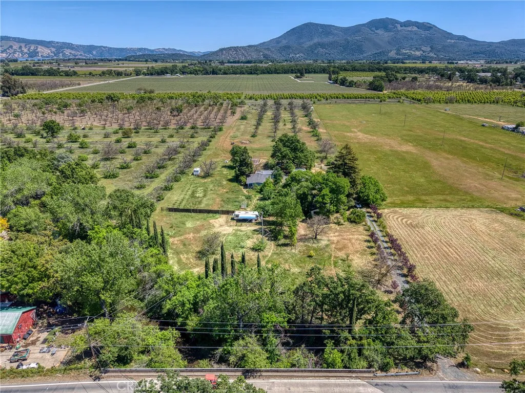 7.29-acre ranch featuring three distinct residential units. This property is ideal for multi-generational living or agricultural pursuits, boasting rich soil, a mature walnut orchard, and breathtaking views of Mt. Konocti. Unit #1 (Main House): A remodeled 2-bedroom, 1-bathroom home with a new roof, windows, doors, and appliances. It features laminate flooring throughout and a large mudroom with laundry hookups. Unit #2: A comfortable 1-bedroom, 1-bathroom residence with fresh interior and exterior paint, newly tiled kitchen and bath. Unit #3: A modernized 1-bedroom, 1-bathroom turn-key home featuring exposed wood beam ceilings, a newer kitchen with stainless steel appliances, and charming barn doors.Additional features include a detached garage, an agricultural building, and a variety of newly planted fruit trees. The grounds are fully fenced with a private estate gate and border Adobe Creek. Water is supplied by Finley Water, complemented by a high-producing private well. This property offers immense potential for a variety of lifestyles and uses.