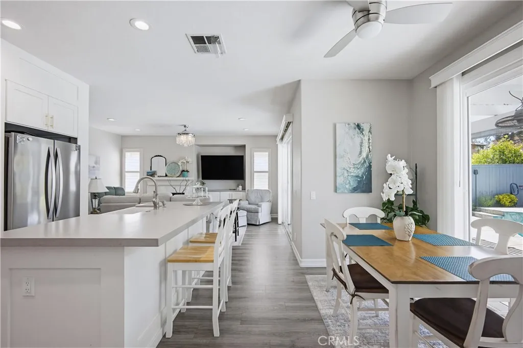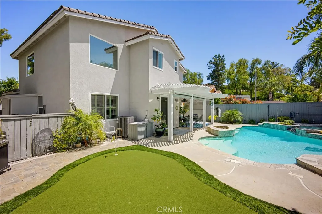 DESIRABLE TEMEKU HILLS HIGHLY UPGRADED HOME FEATURING SPARKLING POOL & SPA, PAID SOLAR, CUL-DE-SAC LOCATION & VIEWS! Meticulously maintained with everything you have been searching for! Situated on a large quiet cul-de-sac lot, overlooking the western views of the Temecula Valley with stunning sunsets! Offering a spacious open floor plan, thoughtfully designed with a bedroom and full remodeled bath on the lower level! Chef's dream Island kitchen with newer white cabinets, custom glass backsplash, brushed gold hardware, Quartz counters, built-in stainless steel appliances, Induction stove top, eat-in nook, walk-in pantry, added slider door to pool and bar sink with beverage center! Fresh paint inside and out, along with luxury lifetime vinyl plank floors throughout the downstairs level. Formal living room/dining room with two story ceilings, added recessed lighting, vinyl plank floors and oversized windows letting in ample natural light. Family room with cozy fireplace, built in cabinets and slider door, perfect for entertaining overlooking your backyard oasis! Upper level large primary suite features plush carpeting, walk-in closet, chandelier fan, double sinks, separate soaking tub and glass enclosed shower. Large open loft upstairs with closet and added washer/dryer hookups! Upper guest bath is completely remodeled with stone counters, custom vanity, wood look tile flooring, tiled tub surround and all new fixtures! The backyard is a paradise with slate surround pool and spa, built in fire pit, waterfall feature, golf putting area, patio cover & lush manicured landscaping!