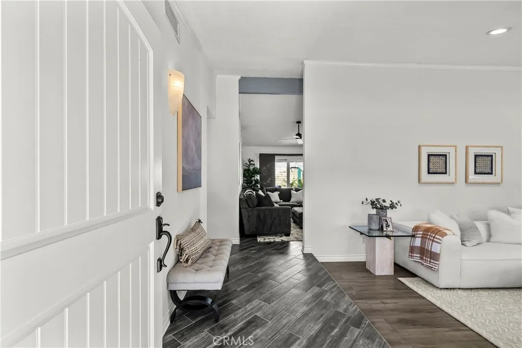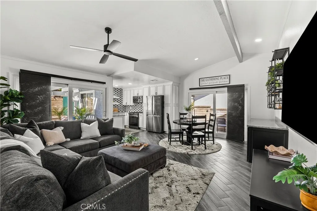 Welcome to this beautifully remodeled single story home in the highly sought after Valencia Meadows community offering the rare benefits of NO HOA and NO Mello-Roos. Tucked away on a quiet, picturesque cul-de-sac, this stunning 4 bedroom, 2 bathroom residence features approximately 1,550 square feet of thoughtfully upgraded living space, seamlessly blending modern style with everyday comfort. Step inside to a bright and inviting living room, where brand new flooring, fresh interior paint, and layout create a warm and welcoming atmosphere perfect for both relaxing and entertaining. The fully remodeled kitchen is a true centerpiece, showcasing vibrant tile and granite countertops, and new matching Samsung appliances. Do your dishes while looking out at your backyard oasis. Designed with both functionality and style in mind, it flows effortlessly into the adjacent dining area and family room, creating an ideal space for family meals and gatherings. The spacious primary suite offers a peaceful retreat, complete with custom closets and storage, bright natural light and a calming ambiance with direct access to your backyard. Its fully remodeled en-suite bathroom features modern finishes and fixtures, delivering a spa-like experience with carefully curated details. Three additional bedrooms provide versatility for family, guests, or a home office, each filled with natural light and finished with new carpet and fresh paint. The secondary bathroom has also been tastefully remodeled, offering both comfort and style for residents and visitors alike. A conveniently located laundry room