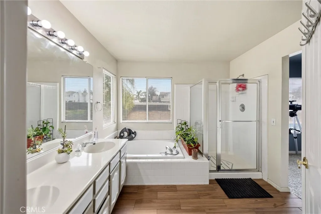 Welcome to the highly sought-after Orangecrest community in Riverside! This spacious and beautiful home offers 5 bedrooms and 3 bathrooms, with a versatile layout designed for both comfort and functionality plus no HOA. Enjoy multiple living spaces, including a formal living and dining room, as well as a separate family roomperfect for entertaining or relaxing. A generously sized main-floor bedroom provides an ideal setup for multigenerational living or guest accommodations. Upstairs, the expansive primary suite is a true retreat, featuring soaring ceilings, abundant natural light, and access to a private balcony overlooking the backyard. Recent upgrades include fresh interior paint, new carpeting throughout the upper level and stairs creating a modern and move-in ready feel. The exterior has also been recently painted, enhancing the homes curb appeal. Step outside to your own private backyard oasis with mature fruit trees, a fenced pool for added peace of mind and a lighted multi-use sport courtperfect for pickleball, paddle tennis, volleyball, badminton, or basketball. Situated in a quiet, welcoming neighborhood just minutes from parks, shopping, and dining, this home offers the perfect blend of space, style, and convenience. Dont miss this incredible opportunity to make it yours!