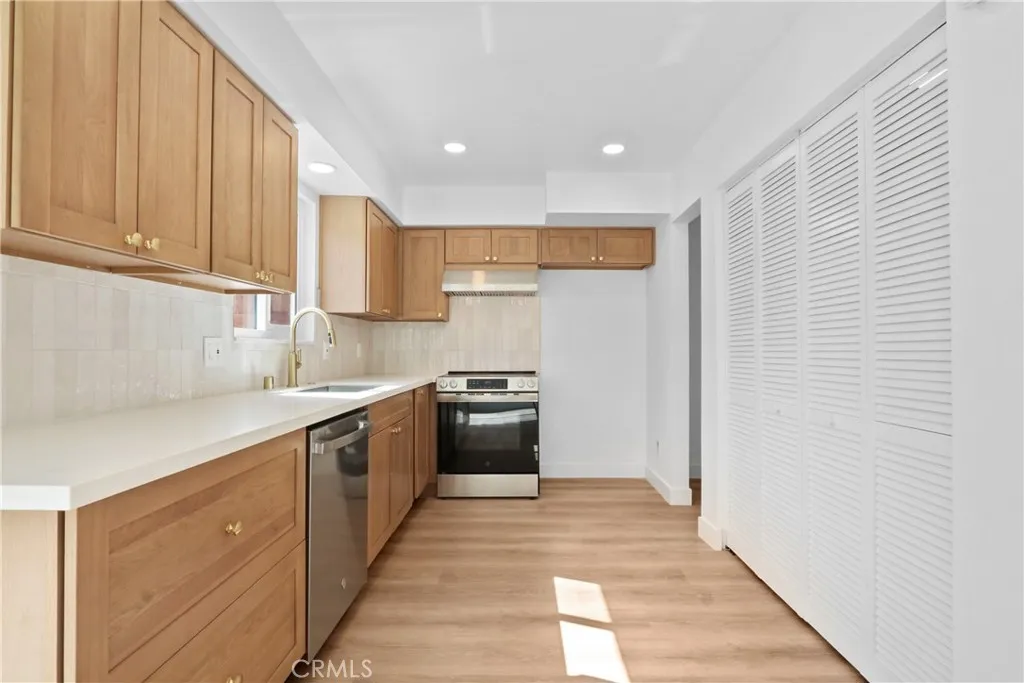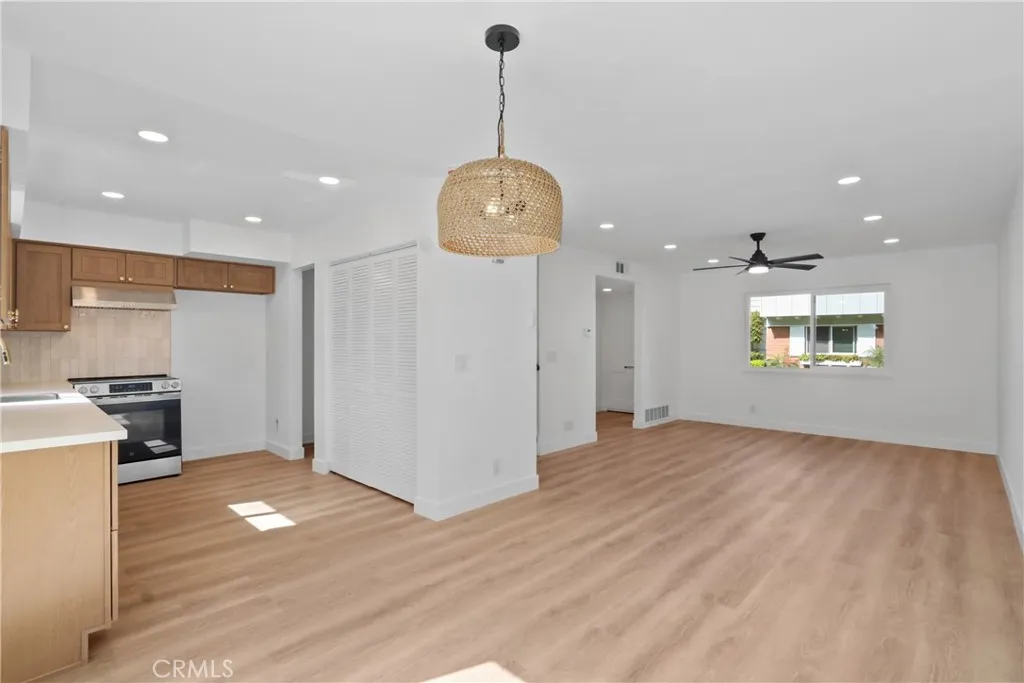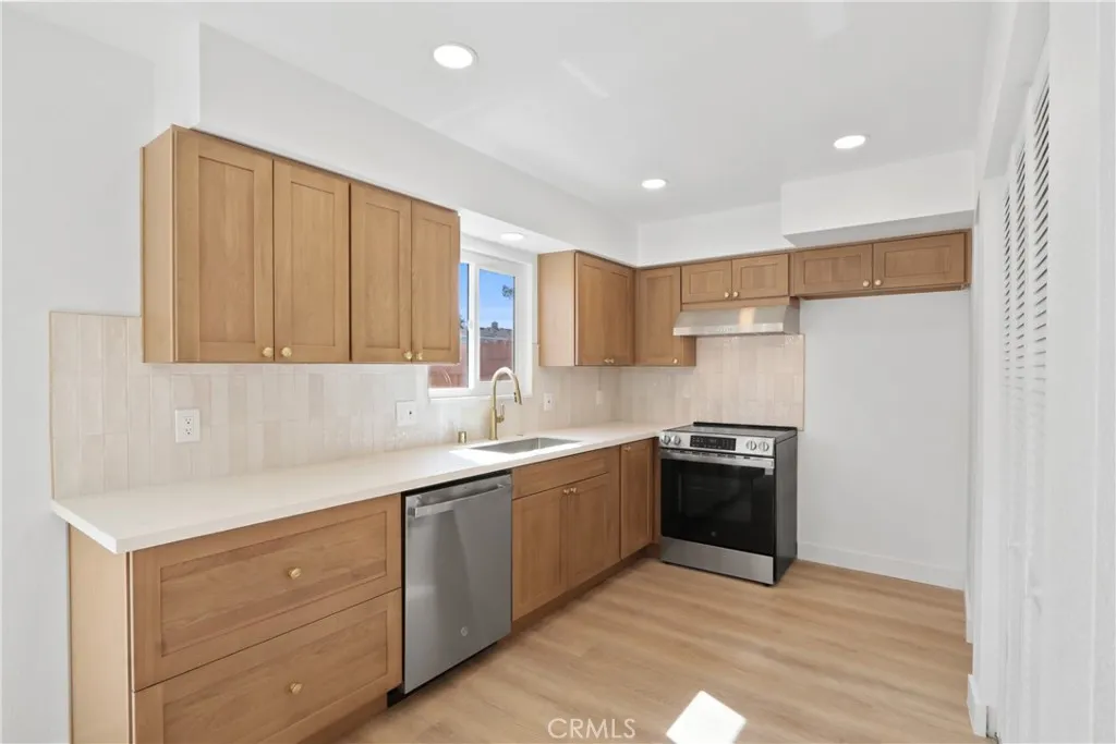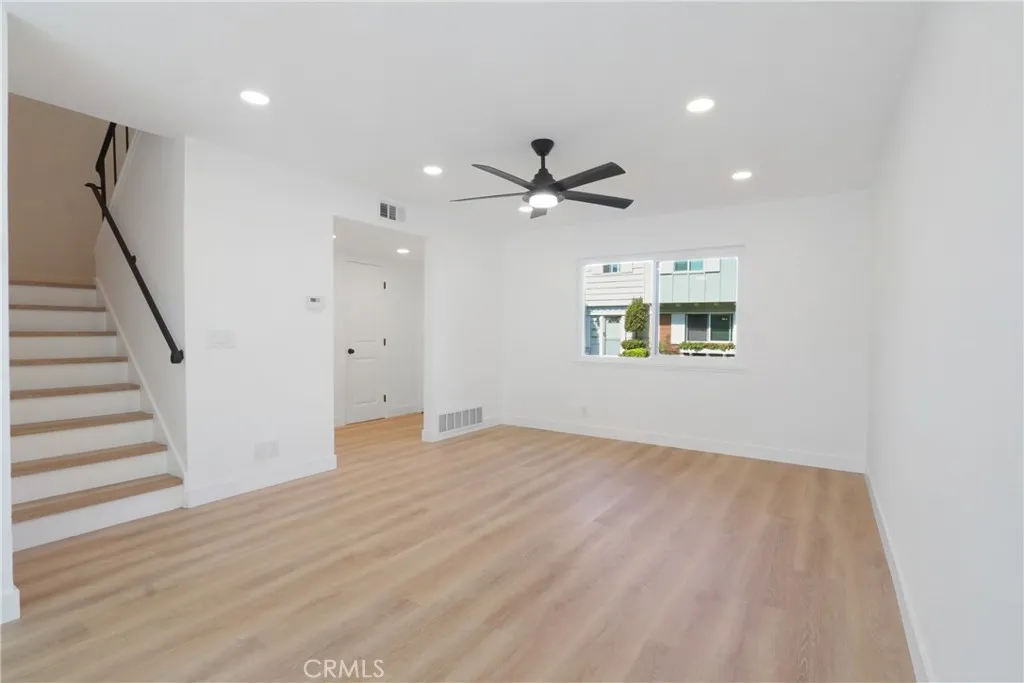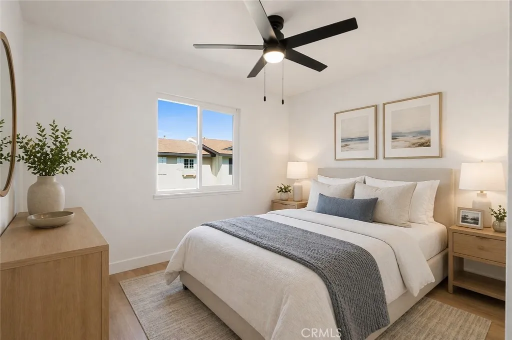 Welcome to this beautifully remodeled two-story townhome in the sought-after Village Town Homes community in South Huntington Beach. This 4-bedroom, 1.5-bath home offers 1,254 sq. ft. of thoughtfully updated living space with new luxury vinyl flooring throughout, dual pane windows and slider, fresh interior paint, and smooth ceilings. The fully remodeled kitchen features new cabinetry, quartz countertops, a custom backsplash, and brand-new appliances. Interior laundry adds everyday convenience. Upstairs, all four bedrooms include ceiling fans, along with a stylishly renovated full bath showcasing a new vanity, quartz countertop, tile flooring, and a custom-tiled shower/tub combination. Enjoy the private back patio, perfect for relaxing or entertaining. The home includes an assigned carport (#96) with a private storage cabinet. Community amenities include a pool, spa, clubhouse, sports courts, playground, and expansive greenbelts. Ideally located near top-rated Huntington Beach schools, shopping, and dining, and just a short distance to the beach. Enjoy the best of Surf City living.