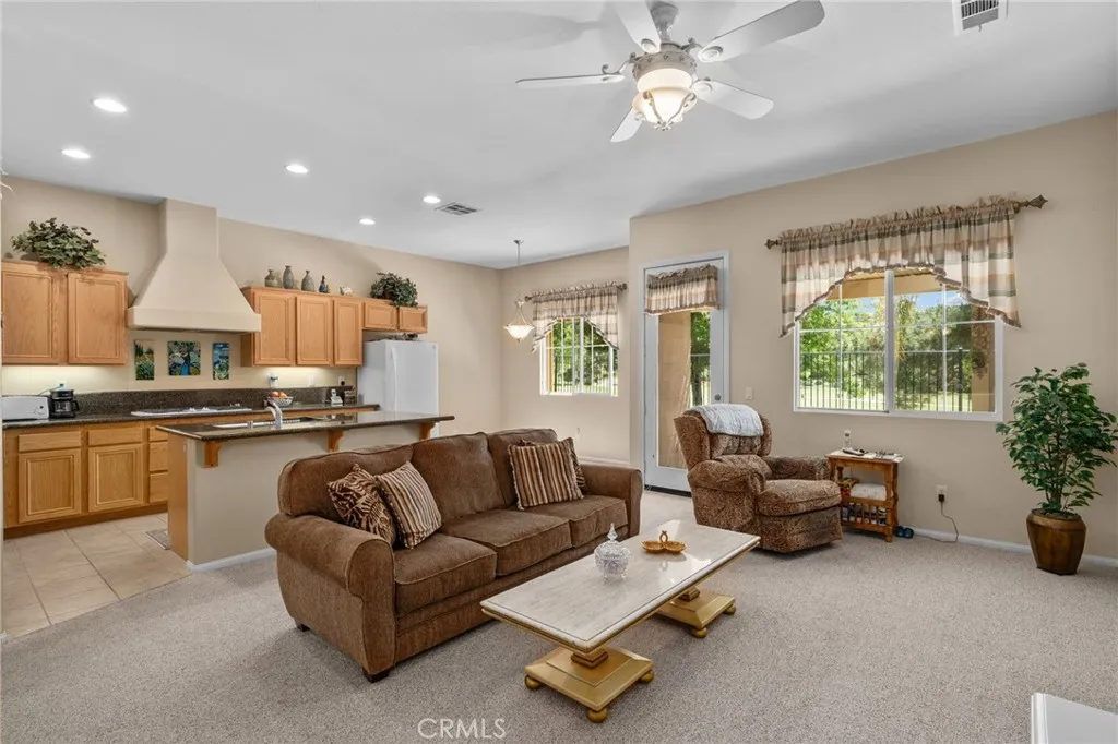 You're going to want to ParTEE at this One Level Gorgeous home at the 17th Tee of the beautiful Yucaipa Golf Course. This stunning single-story, 3-bedroom, 3-bathroom residence offers an exceptional floorplan where all bedrooms and baths feel private. A perfect blend of comfort, style, and scenic beauty, perfectly positioned to capture sweeping views of the lush greens. An expansive open floor plan will impress with expansive ceilings. The living room and kitchen serve as the true heart of the home. Designed for both everyday living and entertaining, this inviting space is enhanced by a cozy fireplace, and an abundance of natural light that frames picturesque golf course vistas. The kitchen is as functional as it is beautiful, featuring generous counter space, ample cabinetry, dual ovens, and a convenient breakfast barideal for savoring your morning coffee while overlooking the serene fairways. Just beyond, the adjacent dining room offers versatility for formal gatherings, holiday celebrations, or a stylish home office or flex space tailored to your lifestyle. The executive suite is a private sanctuary, complete with direct access to the backyard patioperfect for unwinding in the shade as you take in the tranquil rhythm of the course. The spa-like ensuite bath boasts dual vanities, a custom walk-in tiled shower, and an oversized closet designed for optimal organization. Two additional bedrooms and two full bathrooms provide comfort and flexibility for family, guests, or creative spaces such as a home office or fitness room. A well-appointed laundry room with built-in cabine