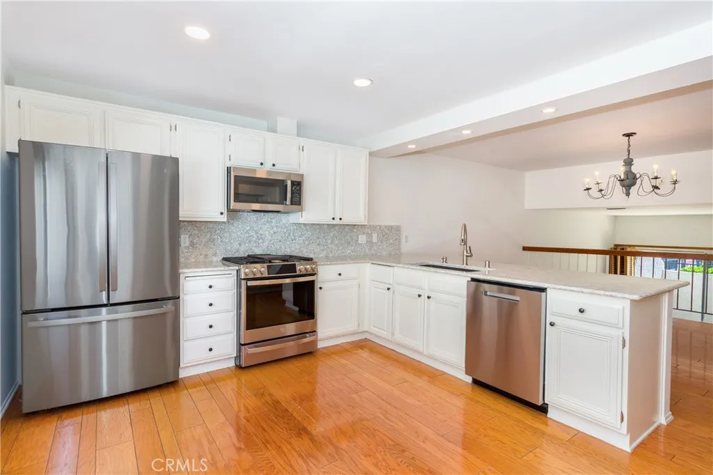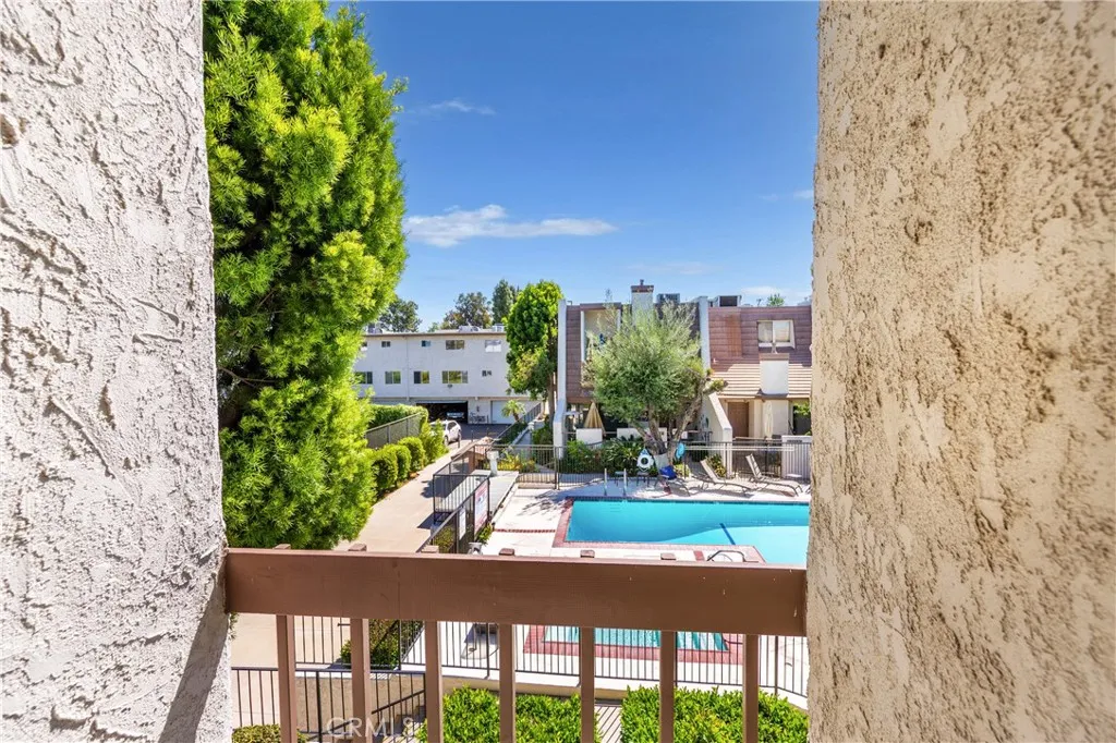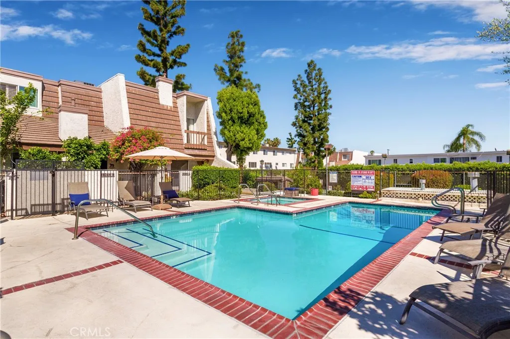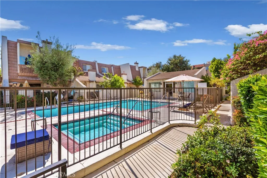 Welcome to Tarzana Villa South a gated community. Amazing opportunity to purchase this upgraded corner unit, 2-bedroom, 2.5 bath Townhouse! Spacious living room with fireplace and sliding glass door with window shutters to the front porch patio that is just steps from the pool area, mailboxes, tennis court and guest parking. Up the stairs to the dining area with wood like paneled floors and breakfast bar. The kitchen is light and bright with upgraded stone counter tops, backsplash, recessed light, stainless steel appliances, microwave, gas range with oven, dishwasher, lots of countertop space, and natural light, the windows have woven blinds that are sun resistant. Laundry room and powder room. The top level has both bedrooms including the west primary bedroom with a primary 3/4 bathroom which has double sink, vanity area, and a walk-in closet. The east bedroom includes a high ceiling, walk-in closet, and an east facing balcony overlooking the pool area. There is also a full bathroom in the hallway. There is additional cabinet space in the upstairs hallway. Central air & heat, smooth ceilings, dual pane windows. The very bottom level is an attached 2 car garage with direct access to the unit. The gated community has guest parking, a tennis court, gated pool area with pool and spa and a recreation room that has a large gathering area, kitchen, two separate bathrooms with showers, and two separate saunas. This is a fantastic location in the gated community being a corner unit and, in the neighborhood, close to Ventura Blvd, easy freeway access, Orange line busway, and Provide