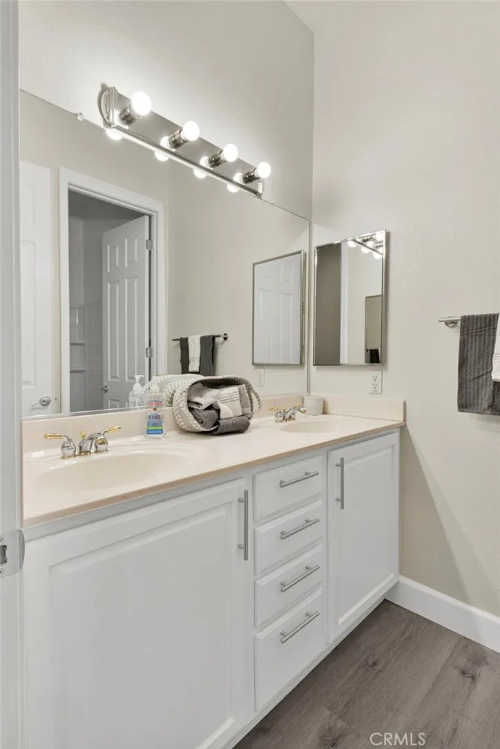 LOCATION LOCATION LOCATION - Welcome to this gorgeous 5 bedroom, four-full-bath home in the desirable gated Estates Community of Apple Valley. This home is over 2800 square feet with 2 living/family rooms, open floor plan and a beautifully designed kitchen open to the family room with a tiled fireplace. Drive in to the gated community and enjoy the secured feeling with this home backed right up towards the end of the golf course. The home has been freshly painted inside with most of the home having new flooring and baseboards. The kitchen has new quartz counter tops and stainless appliances as well as a walk-in pantry and extra storage throughout the kitchen. the lot is over 12,200 square feet and has enough space to add a pool. The front yard is well groomed with shrubs, grass and mature a tree. The home has extra tall ceilings, wide hallways and 2 primary suites for larger families. The first primary bedroom has an extra room perfect for an office or nursery with the restroom having a walk-in shower, the second primary has a great walk-in closet in the restroom and oversized walk-in tiled shower.