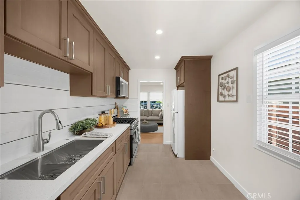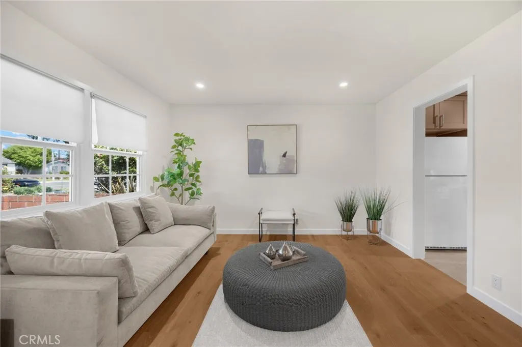 Charming single story home! Beautifully remodeled with 2 beds, 1 bath and a large bonus room with backyard access. Walk into the living area with warm neutral tones, new engineered hardwood floors and recessed lights. Kitchen is tastefully updated with wood cabinets, large sink, new countertops, backsplash, new microwave and dishwasher. Spacious bedrooms with new carpets and recessed lights. Updated bathroom with tasteful finishes. Spacious backyard with covered carport that leads to the garage. The home has newer roof, doors, upgraded service panel, dual pane windows, newer water line and water heater. This is an amazing home with so much great potential!