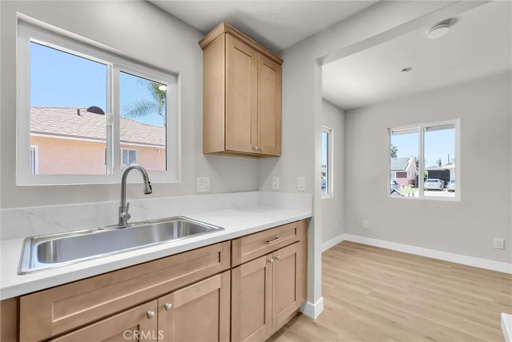 Welcome to this newly upgraded 3-bedroom, 2-bath home in the desirable city of El Monte , offering the perfect blend of modern comfort and future potential. Showcasing strong curb appeal, the property features low-maintenance landscaping, a long gated driveway with ample parking, spacious back yard and detached two car garage potential for ADU. Inside, an open-concept layout connects the living, dining, and kitchen areas seamlessly. The fully upgraded kitchen is highlighted by brand-new quartz countertops, modern cabinetry, sleek fixtures, and LED recessed lighting. New dual-pane windows flood the home with natural light, creating a bright and airy living environment. The primary suite offers peaceful backyard views and a tastefully remodeled private bath. Two additional well-sized bedrooms share an updated hallway bathroom, ideal for family or guests. The expansive backyard is a standout feature, offering exceptional flexibilityperfect for entertaining, relaxation, or future expansion. Whether you envision an ADU, garage conversion, pool, or custom outdoor retreat, the possibilities are substantial. Conveniently located near shopping, dining, schools, and major freeways (10, 60, 605), this home provides easy access to Downtown Los Angeles & beyond.