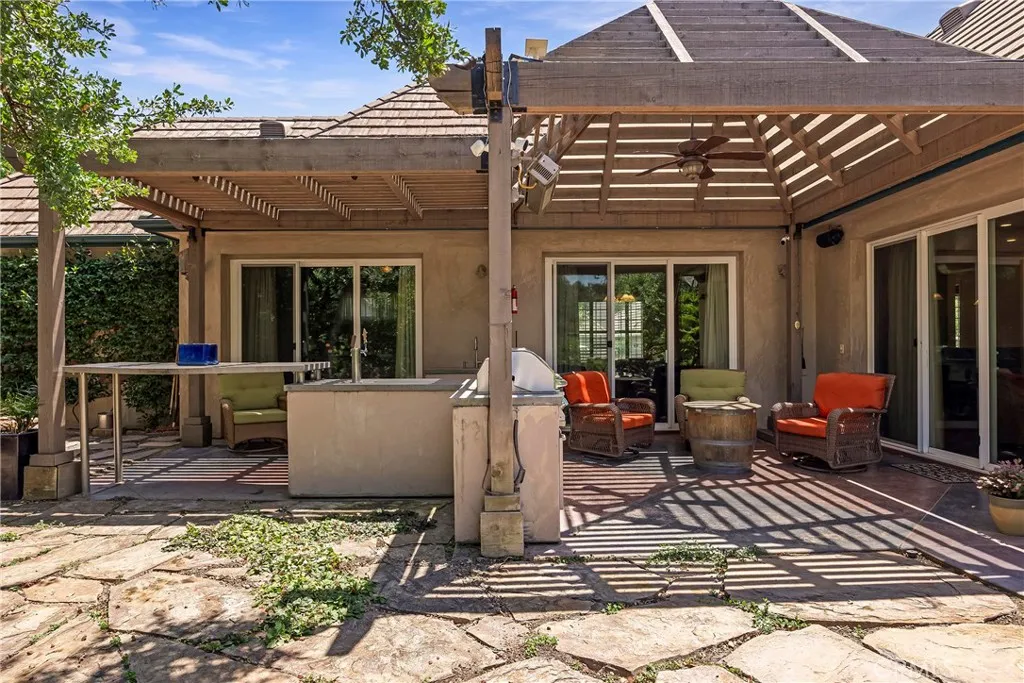 Welcome to 3188 Wood Creek Dr in the gated community of Canyon Oaks. This 4 bed 3 bath home offers approximately 2,572 sq ft, with polished concrete floors and a living room with a wood burning fireplace. The primary suite includes a soaking tub, walk-in shower with dual shower heads. Upstairs features two bedrooms and a full bath, with one bedroom offering a private balcony. Additional highlights include a drive thru garage with golf course access and a backyard with an outdoor kitchen area. Please have buyer verify all info.