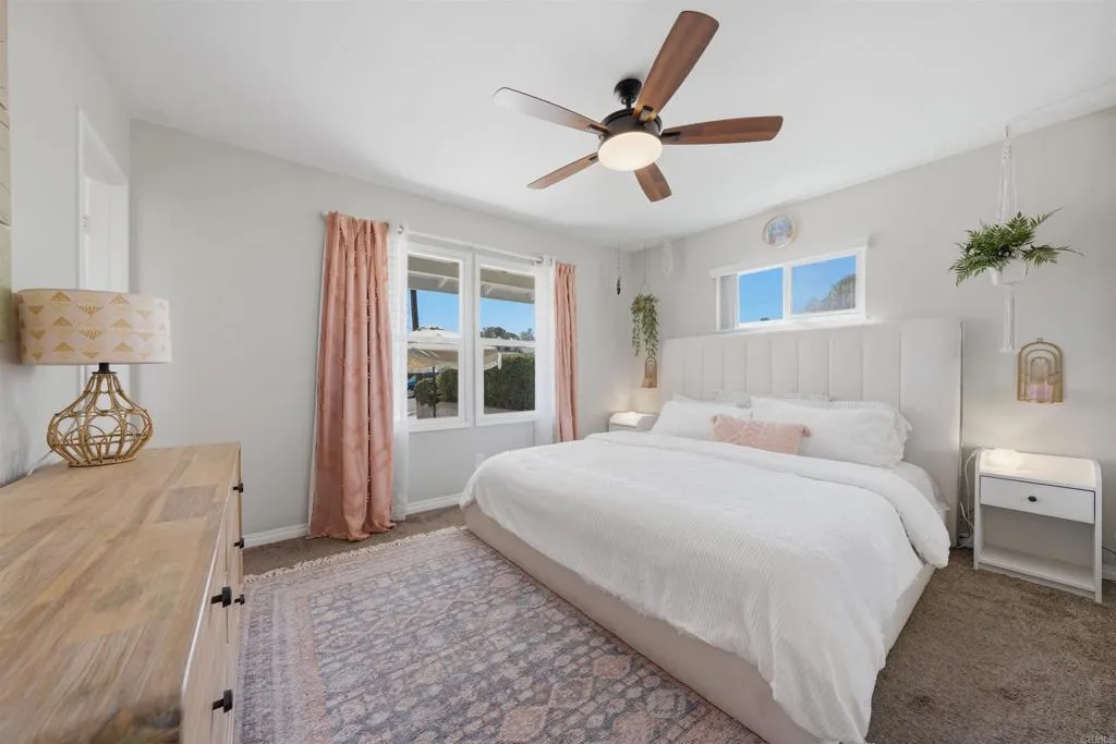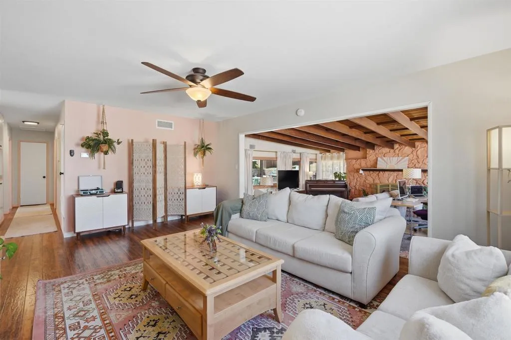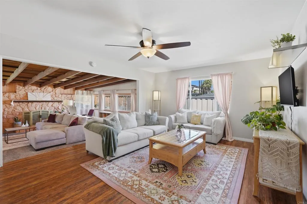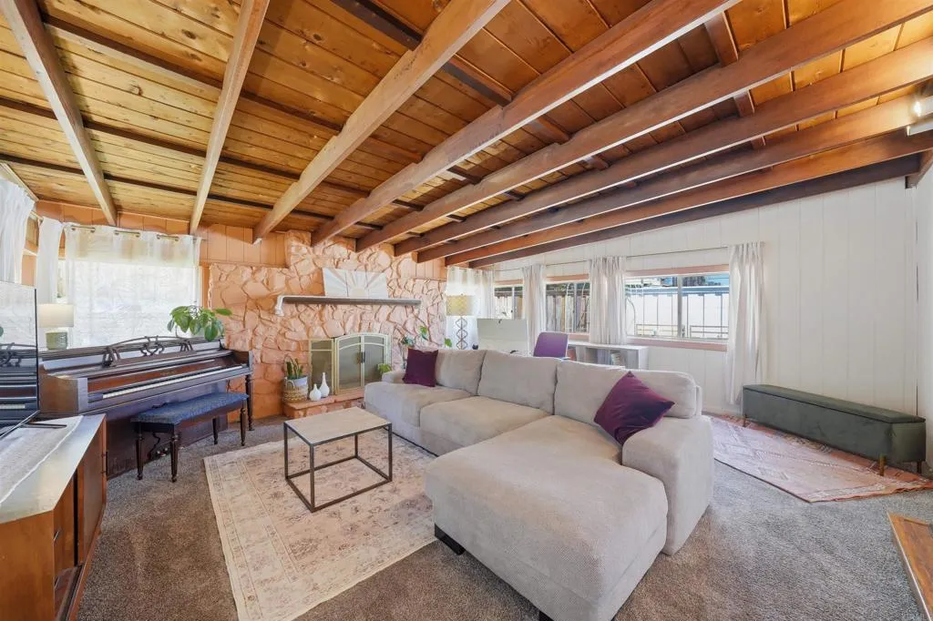 This home radiates warmth and charm! Ideally situated on a family-friendly cul-de-sac at the base of Fletcher Hills, it offers the perfect blend of functionality and modern upgrades throughout. The updated kitchen features a dedicated dining area, while the cozy living room and spacious bonus dencomplete with stunning wood beam ceilings and a gas fireplaceprovide versatile living space ideal for a home office, playroom, or additional lounge area. Abundant natural light fills every room, enhancing the inviting atmosphere. Enjoy outdoor living under the covered patio, with additional space to relax or entertain. The upper lot offers beautiful easterly views, and the side yard is a true gardeners dream.