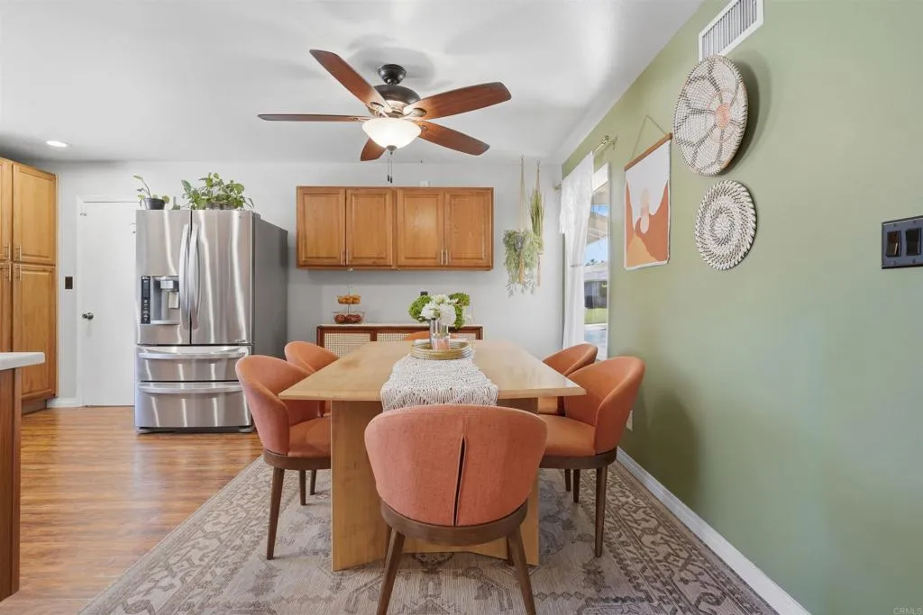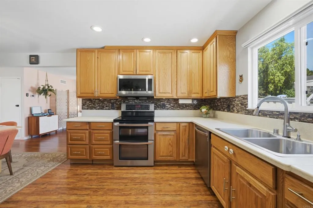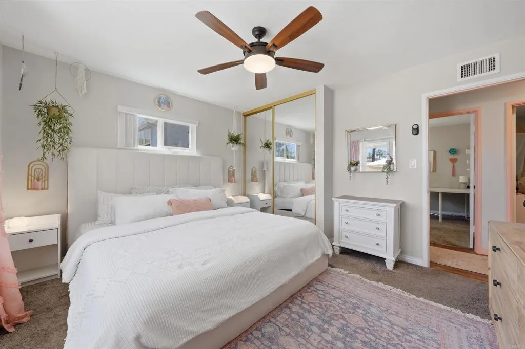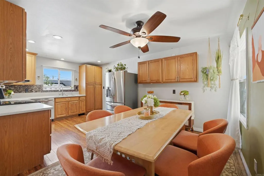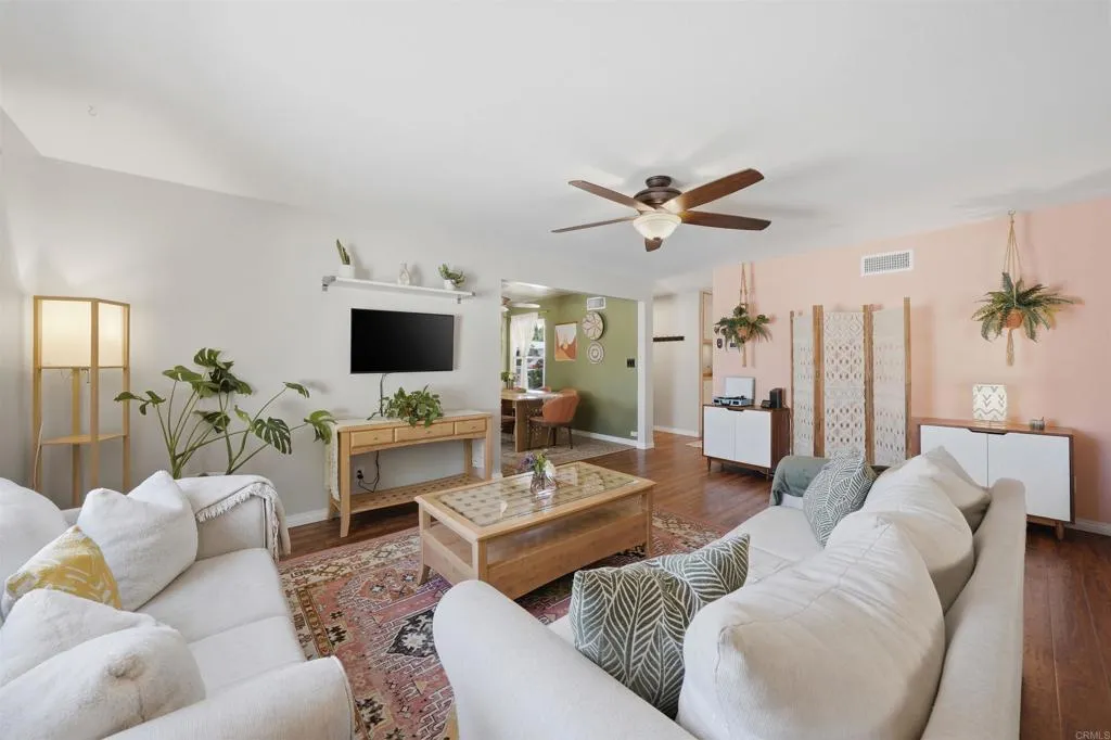 This home radiates warmth and charm! Ideally situated on a family-friendly cul-de-sac at the base of Fletcher Hills, it offers the perfect blend of functionality and modern upgrades throughout. The updated kitchen features a dedicated dining area, while the cozy living room and spacious bonus dencomplete with stunning wood beam ceilings and a gas fireplaceprovide versatile living space ideal for a home office, playroom, or additional lounge area. Abundant natural light fills every room, enhancing the inviting atmosphere. Enjoy outdoor living under the covered patio, with additional space to relax or entertain. The upper lot offers beautiful easterly views, and the side yard is a true gardeners dream.