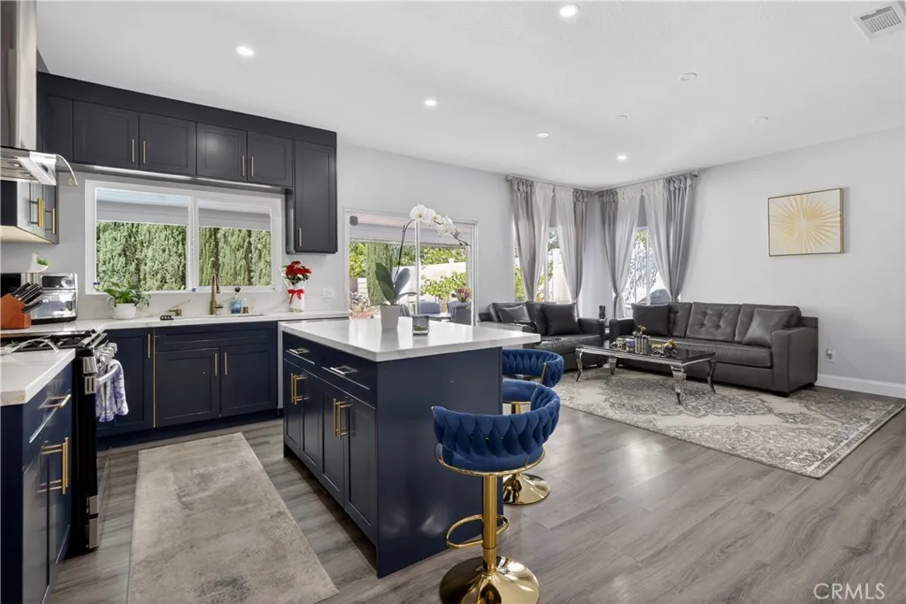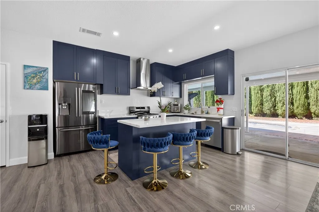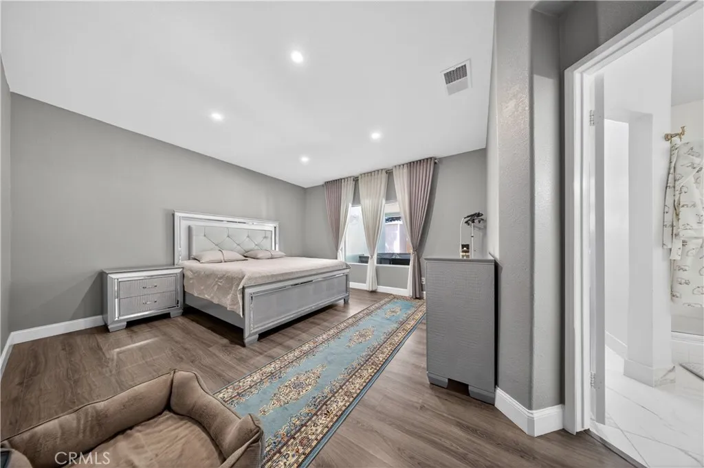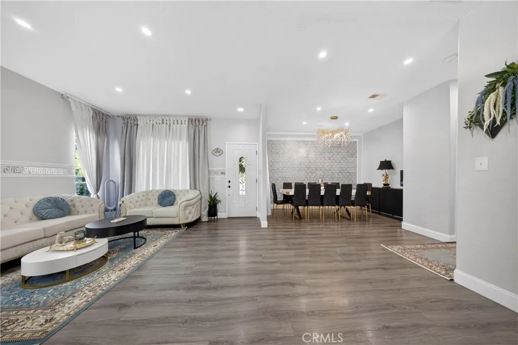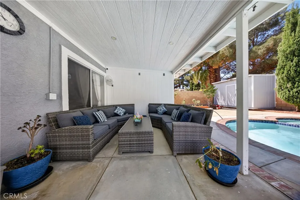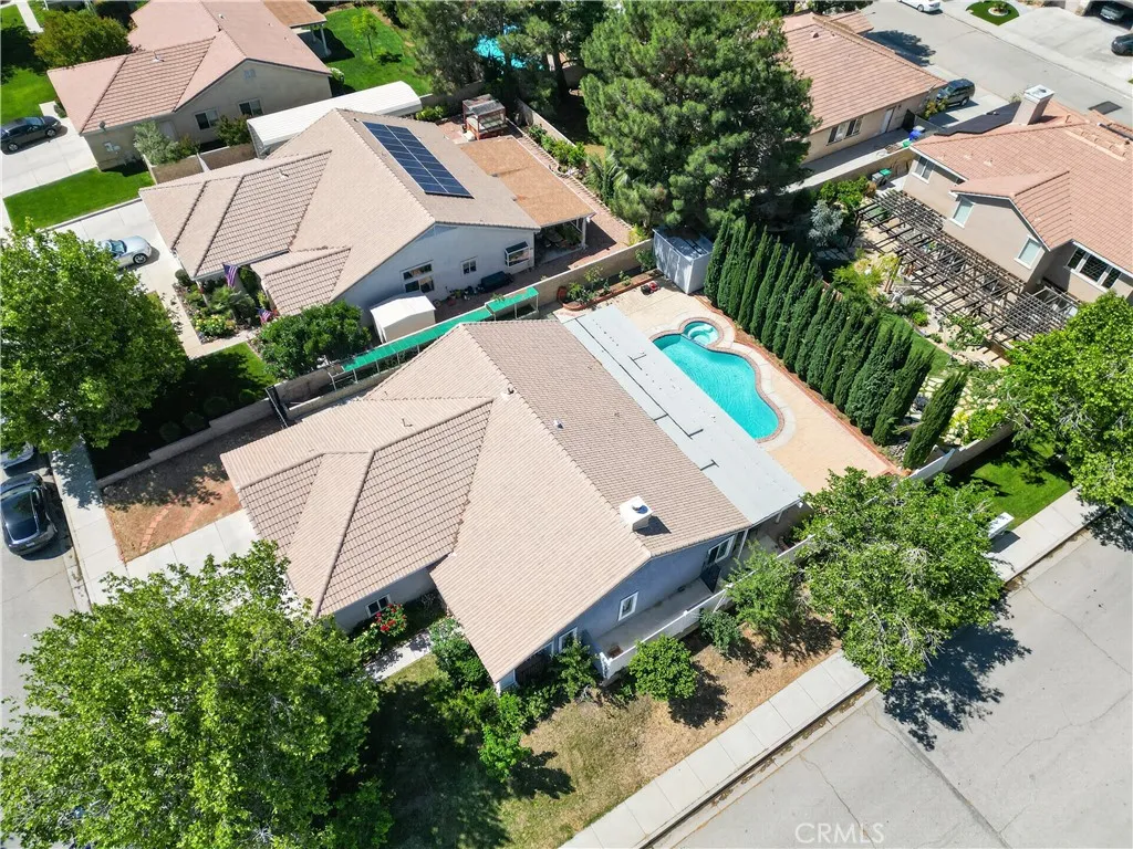 Welcome to this stunning single-story pool home on a desirable corner lot in West Palmdale. With exceptional curb appeal, the property features a beautifully landscaped front yard, RV access, a two-car garage, and a charming front porch. Inside, youll find stylish vinyl wood flooring throughout and a striking double-sided fireplace that seamlessly connects the living and family rooms, creating a warm and inviting atmosphere. Recessed lighting extends throughout the home and outdoor patio, adding both comfort and ambiance. The fully remodeled kitchen serves as the heart of the home, showcasing custom cabinetry, upgraded countertops, and a spacious center islandperfect for everyday living and entertaining. Additional highlights include a versatile den ideal for a home office or flex space, a separate laundry room, and a generously sized primary suite. The primary bathroom offers a spa-like feel with marble flooring, dual vanities, and a separate soaking tub and shower. Step outside to your private backyard retreat featuring a sparkling pool and spa, low-maintenance landscaping, a covered patio, and expansive concrete areasideal for entertaining or relaxing. Situated on a quiet cul-de-sac in a sought-after West Palmdale neighborhood near Rancho Vista, this home offers convenient access to the 14 Freeway, top-rated schools, parks, and shopping. This home truly has it allschedule your private showing today!