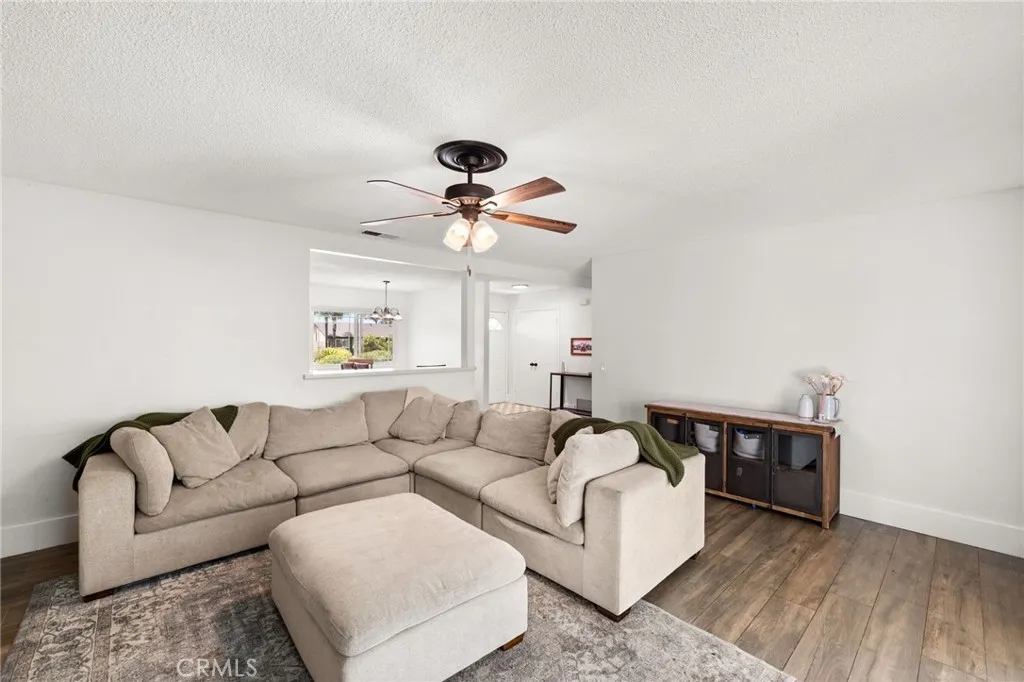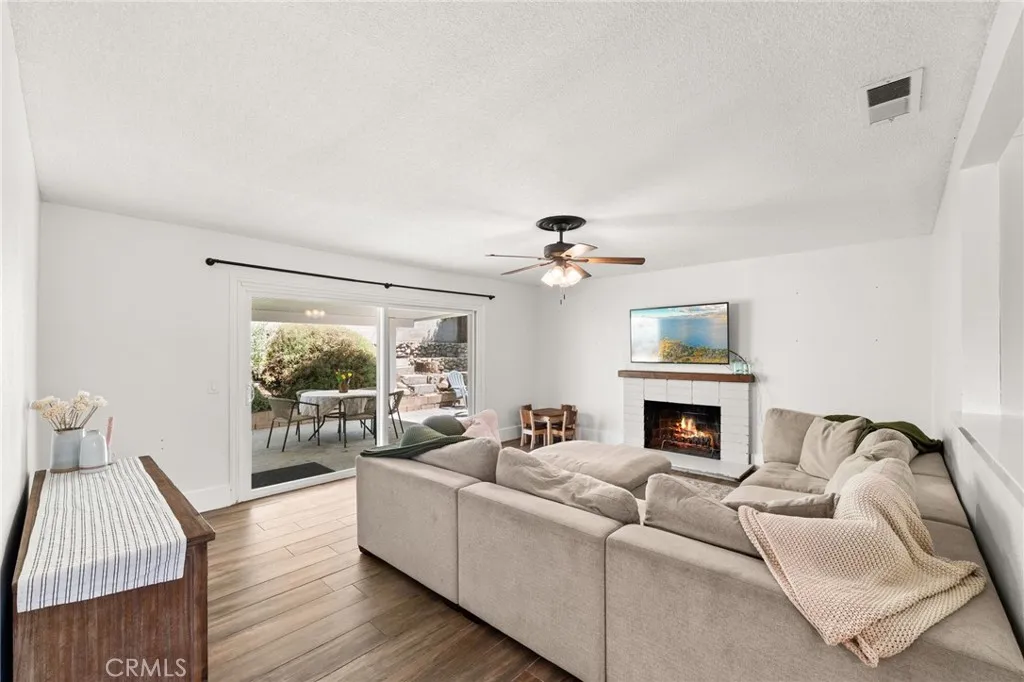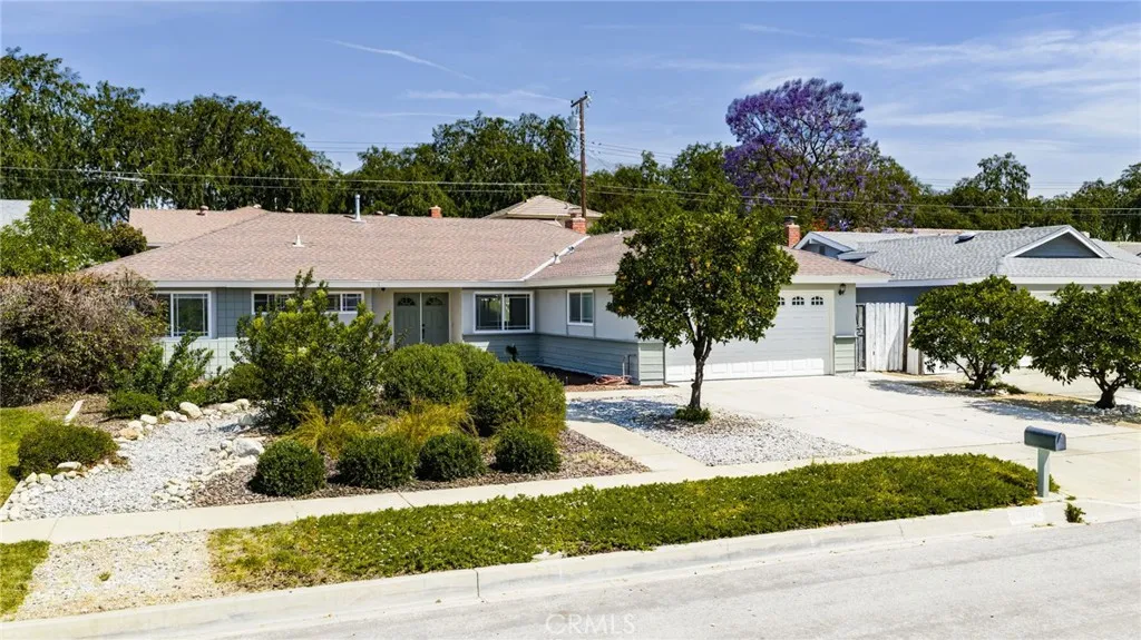 Located within a quiet cul-de-sac, where the pace slows and the surroundings feel a bit more private, this charming single-story home welcomes you in with warmth and ease. Inside, natural light drifts through the open living spaces, guiding you from the inviting living room into a dining area that feels ready for both everyday meals and special gatherings. The kitchen, thoughtfully updated with quartz countertops and modern cabinetry, becomes the heart of the homeperfectly positioned for conversation, connection, and the rhythm of daily life. Nearby, a cozy family room anchored by a fireplace offers a comforting retreat, perfect for unwinding at the end of the day. With four bedrooms and two bathrooms thoughtfully arranged across a functional layout, the home strikes a balance between privacy and togetherness. Just beyond the doors, the backyard unfolds into a peaceful escape, where mature landscaping and shade trees create a serene backdrop for outdoor living. A covered patio and stamped concrete space invite everything from weekend barbecues to quiet evenings under the open sky, while the spacious lot offers room to grow, personalize, or simply enjoy as is. Complete with a two-car attached garage and central heating and air, this home blends everyday comfort with lasting potential in a setting that feels both calm and connected.