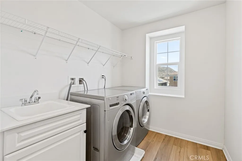 Welcome to one of Homeland's newest communities, where modern 2023 construction meets thoughtful upgrades and true turnkey living with NO HOA. This spacious 4-bedroom, 2.5-bath home offers 2,619 sq ft of well-designed living space on a 4,792 sq ft lot. Built in 2023, the home still carries the benefits of newer construction modern systems, current building codes, and a fresh aesthetic while already featuring the upgrades most buyers add after moving in. Step inside to find updated laminate flooring throughout the main living areas, modern lighting fixtures, and elegant gold-toned hardware finishes that elevate the home well beyond standard builder-grade. The kitchen is the centerpiece of the main floor, featuring dark quartz countertops, a generous layout, and a walk-in pantry that offers the kind of storage most homes simply don't have. The floor plan is designed for real life. A downstairs bonus room gives you the flexibility for a dedicated home office, gym, playroom, or guest space without sacrificing a bedroom. Upstairs, a spacious loft adds a true second living area ideal as a media room, study space, or lounge. The four bedrooms are well-proportioned, giving everyone in the household their own space to retreat to. A tankless water heater provides on-demand hot water while reducing energy costs a feature typically found in higher-end builds. The low-maintenance lot means less time on yard work and more time enjoying your home. Located in a newer Homeland neighborhood with easy freeway access to the I-215, putting Menifee, Murrieta, Temecula, and the greater Inla