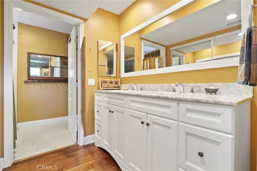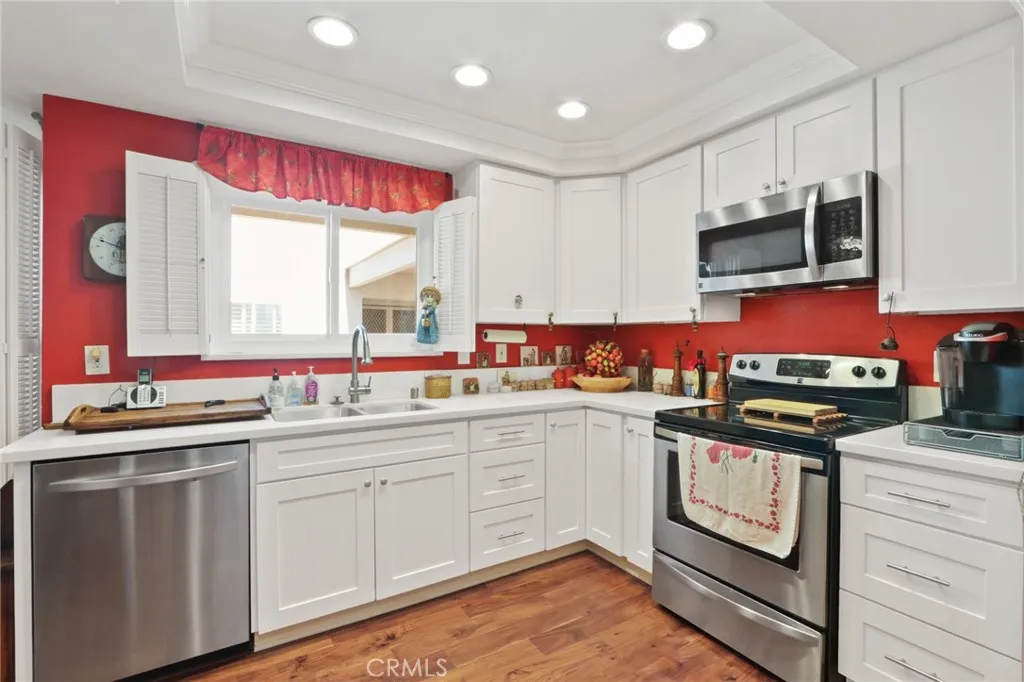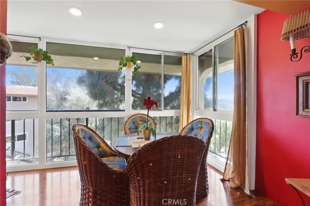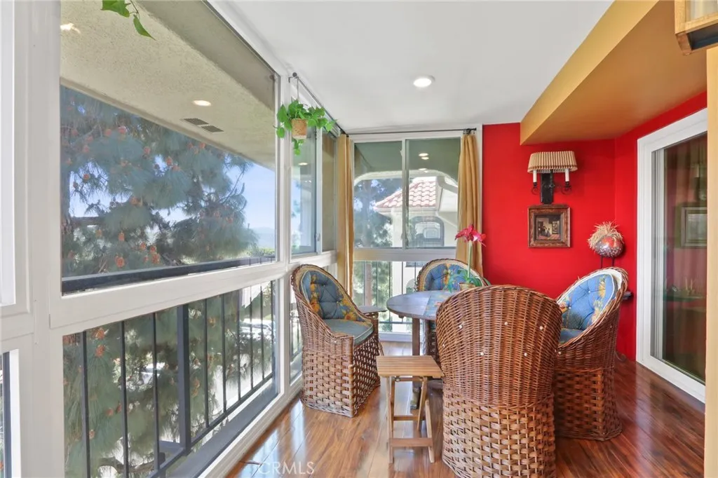 Stunning Top-Floor Corner Unit with Gorgeous Views in Laguna Woods Village! Beautifully remodeled 3 bedroom, 2 bathroom top-floor corner unit offering over 1,600 sq ft of spacious living in the highly sought-after 55+ community of Laguna Woods Village, ideally located near Gates 7 & 9. This light-filled home features breathtaking south-facing hillside views with spectacular sunsets and twinkling city lights, all enjoyed from the enclosed patio. Extensive upgrades include over $30,000 in hardwood flooring, recessed lighting throughout including in the enclosed patio, ceiling fans in every bedroom, and an upgraded electrical panel. The open-concept layout provides a bright and inviting living space, perfect for both relaxing and entertaining. The remodeled kitchen showcases white Shaker cabinetry, soft-close drawers, quartz countertops, stainless steel appliances, and modern finishes. The spacious primary suite offers a luxurious retreat with an expanded porcelain-tiled shower featuring white marble pebble flooring, upgraded vanity with quartz countertops and backsplash, porcelain tile flooring, and large mirrored wardrobe closets. The guest bathroom is equally upgraded with a tiled shower, granite vanity, and porcelain tile flooring. Additional features include subterranean parking with elevator and a well-maintained building. Enjoy resort-style living with world-class amenities including golf courses, swimming pools, fitness centers, clubhouses, tennis, pickleball, horse stables, art studio, wood shop and more plus a wide range of social clubs and activitiesall within this