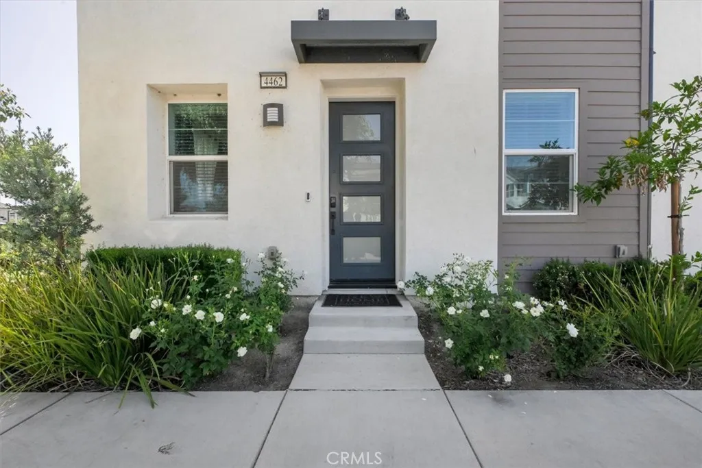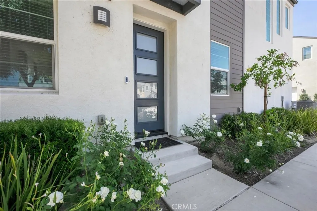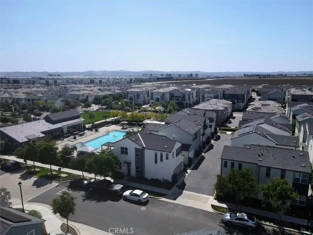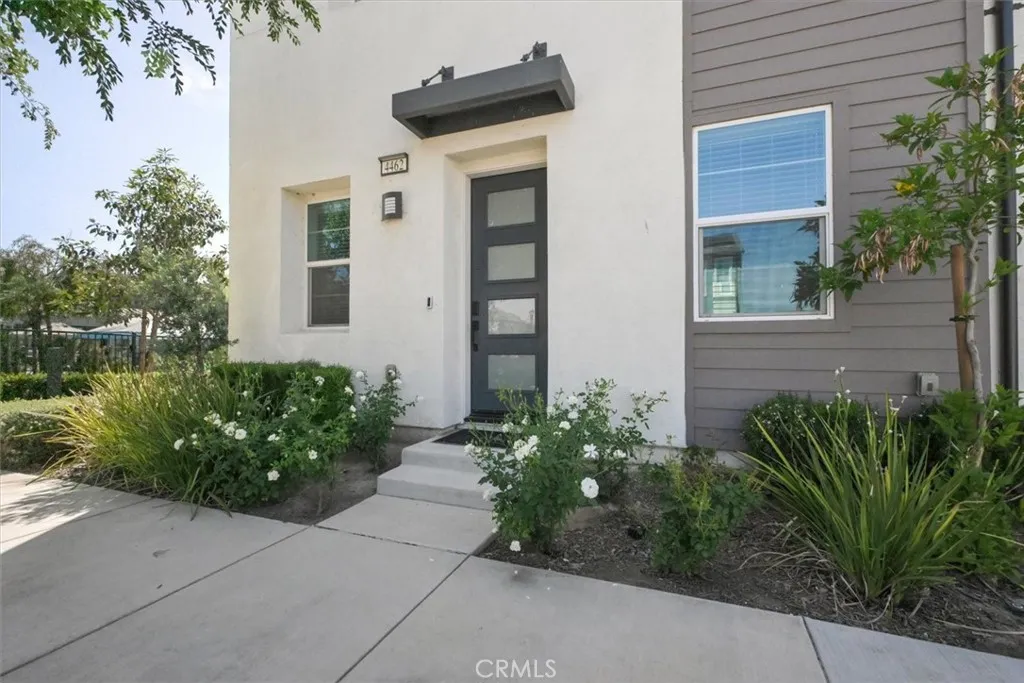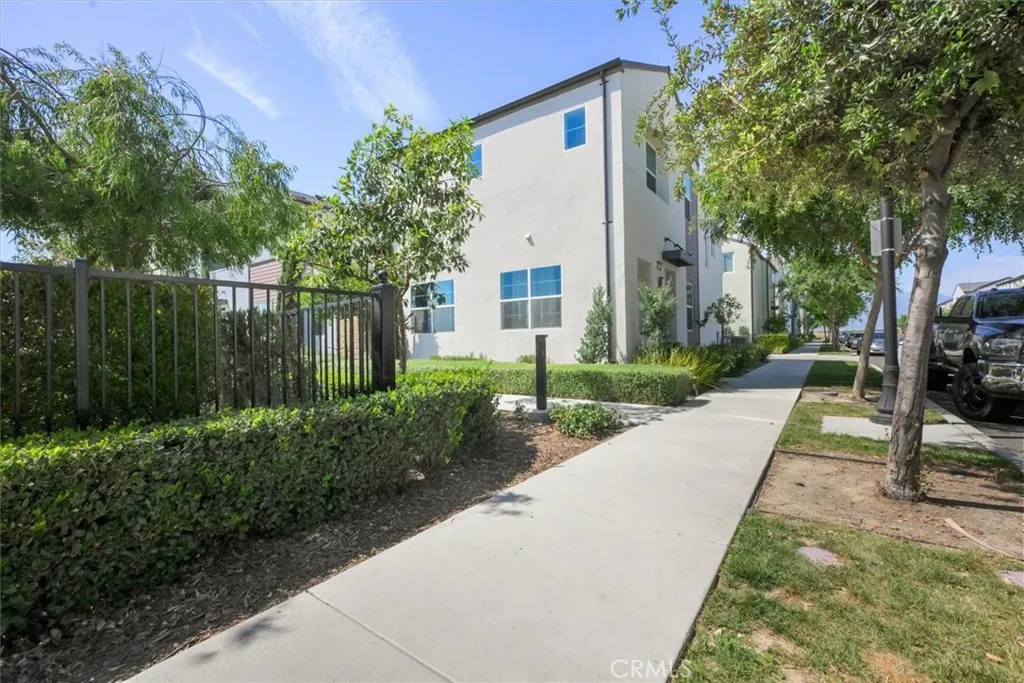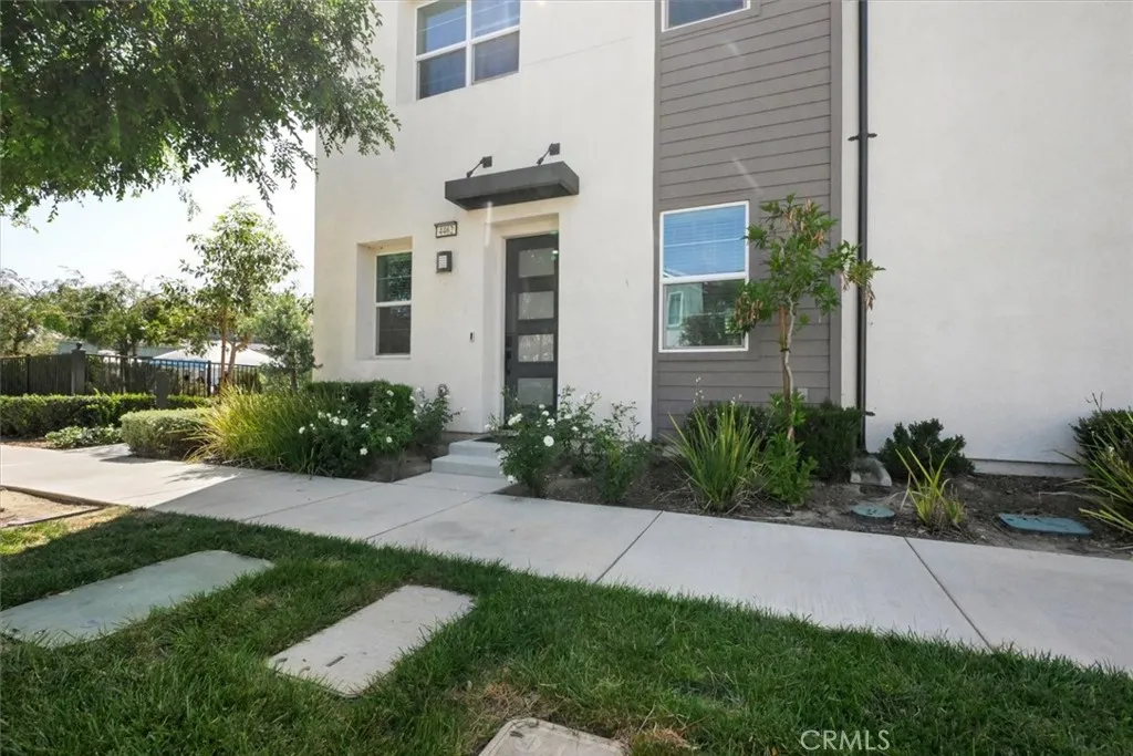 Welcome to Nuvo Parkside! 3-bedroom condo sitting on a corner lot next to the community pool in the gated community within Ontario Ranch is the kind of home that just makes sense and a little bit of why dont I live here yet? all come together. All three bedrooms are tucked upstairs for privacy and the primary bedroom has it's own full bath and a walk-in closet, while the main level is built for real life; an open layout and a kitchen that actually understands how people live. Think ample cabinetry, a spacious island with seating for four, and enough room for everyone to gather, because lets be honest, everyone ends up in the kitchen anyway. Slide open the glass doors just off the kitchen and step into your private backyardperfect for morning coffee, low-maintenance lounging, or finally committing to being a plant person. This home also features a 2-car attached garage and PAID-OFF solar because lower energy bills never go out of style. And lets talk lifestyle: youre right next to the community pool (seriously, its that close), plus youll enjoy resort-style amenities including a spa, modern clubhouse, fitness center, park, and BBQ areas. Whether youre in the mood to unwind or entertain, this community delivers. Wait... there's more! Easy access to the 60 and 15 Freeways, commuting to Los Angeles or Orange County is a breeze. Youre also just minutes from Ontario International Airport, Topgolf, Ontario Mills, and a wide variety of shopping and dining options. This home checks the boxes and adds a little fun to your everyday living - Welcome Home!