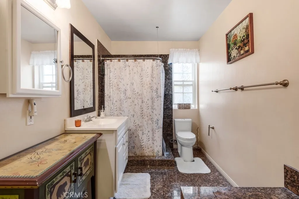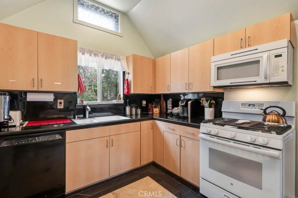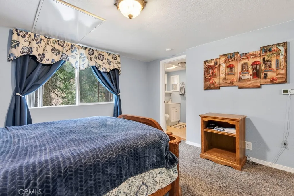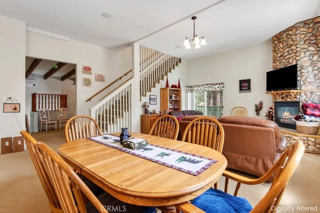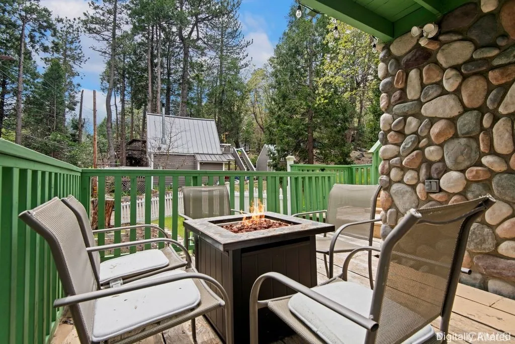 Welcome to this charming split-level mountain home, featuring an additional parcel of property which makes a sprawling over 9,000 sqft yard space. Showcasing a beautiful stone exterior, towering trees, and a spacious deck perfect for enjoying the fresh mountain air and serene surroundings. Set on a double lot in a quiet neighborhood, this property offers both privacy and space, with a seasonal stream running across the front and a gently sloping yard ideal for winter sledding. Inside, the open living and dining area is highlighted by vaulted ceilings and a stunning floor-to-ceiling stone fireplace, creating a warm and inviting atmosphere. The kitchen opens to a bonus area currently used as a game roomperfect for entertaining or additional living space. The home offers a total of five bedrooms and three bathrooms, including a downstairs primary suite with en-suite bathroom and a main-level bedroom for added flexibility. Upstairs, youll find three spacious bedrooms and a full bathroom featuring a jetted soaking tub. A cozy loft nook above the entry and abundant storage closets throughout add to the homes functionality. Enjoy the balcony off the living rooman ideal spot to take in the surrounding natural beauty. Conveniently located near California State Route 18, providing easy access down the mountain, and just minutes from Lake Arrowhead Village, SkyPark at Santa's Village, and Lake Gregory for year-round recreation, dining, and entertainment. Additional highlights include parking for six or more vehicles, making this home perfect for hosting family and friends and creating