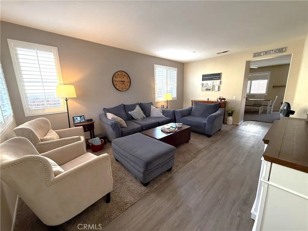 This is the opportunity youve been waiting for! Nestled on a quiet cul-de-sac, this well maintained single-story home offers the rare combination of a 3-car garage and dedicated RV parkingperfect for those who need both space and flexibility. Featuring 3 bedrooms and 2 bathrooms, the home welcomes you with a functional, light-filled layout designed for comfortable everyday living. The kitchen is both practical and inviting, offering abundant cabinetry and a cozy eat-in dining areaideal for casual meals or morning coffee. The spacious primary suite provides a relaxing retreat, complete with dual sinks, an oval soaking tub, separate shower, and a generous walk-in closet. A sliding glass door leads directly to the backyard patio, creating a seamless indoor-outdoor flow. Secondary bedrooms are well-sized, including one with an oversized closet for added storage. Throughout the home, plantation shutters add timeless style and enhance the bright, airy feel. Step outside to a pool-sized yard with endless possibilitieswhether you envision entertaining, gardening, or creating your own outdoor oasis. The RV parking area, and metal side gate, offers convenient access and additional storage space. Located in one of Menifees up-and-coming neighborhoods, this home places you near expanding shopping, dining, and parks, all within one of Californias fastest-growing communities. With no HOA and so many desirable features, this home truly checks all the boxes. Dont miss your chance to make it yourshomes like this dont stay on the market for long! Floorplan and virtual tour in process and wil