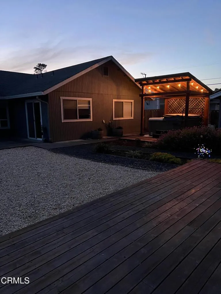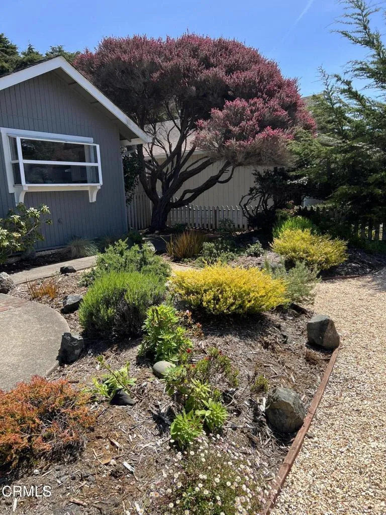 Staycation retreat in quaint coastal town! Front and backyard, professionally landscaped in 2023 with native, drought tolerant plants, makes it easy to maintain and provides spacious outside living, with luxury spa and gazebo. Electrical wiring with 50 amp panel to shed was installed in 2018. Upscale appliances - refrigerator, range, dishwasher, washer and dryer were purchased approximately 2024. Designer tile in the kitchen and main bath (with radiant floor heat) installed by previous owner who owned a tile business. Primary bedroom suite includes sitting room/office, primary bath with bidet and walk-in closet. Livingroom propane fireplace inset, installed by Branesky in approximately 2017, has a convenient remote control and no need for electricity. Forced air heating system was checked in 2023 and only required an igniter coil. Assumable loan may be available.