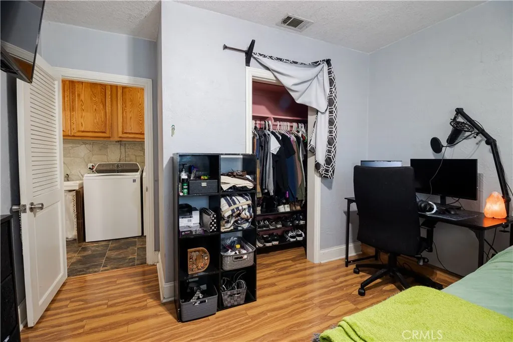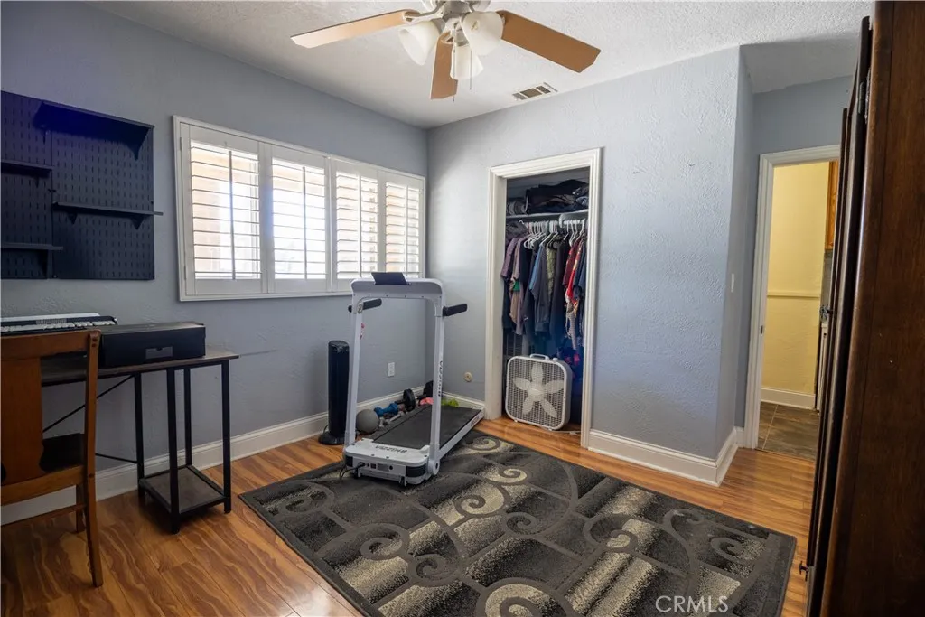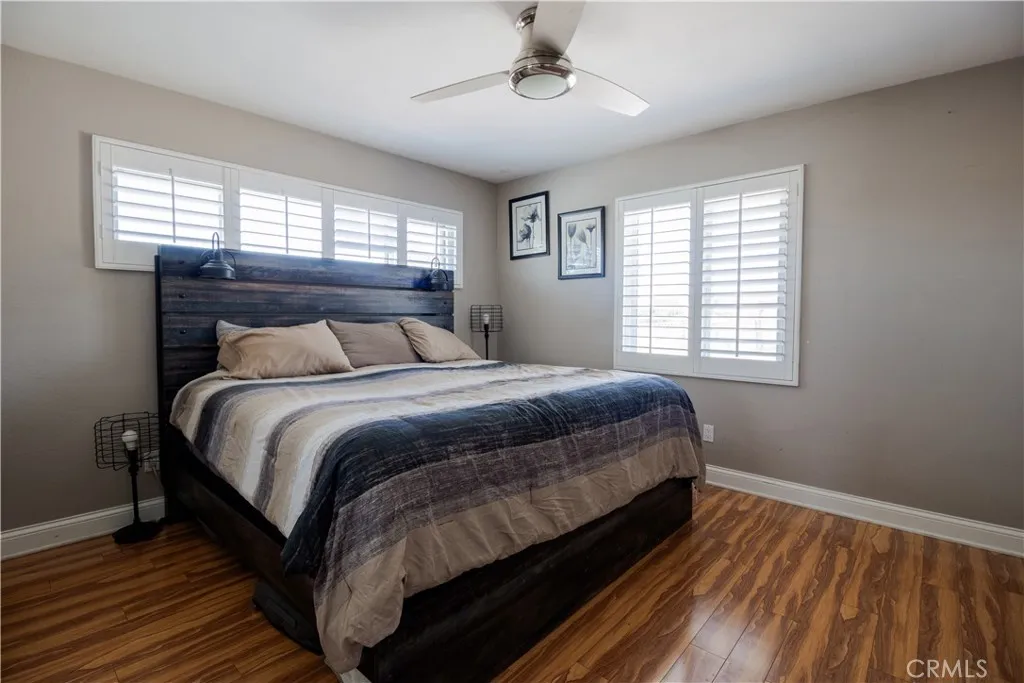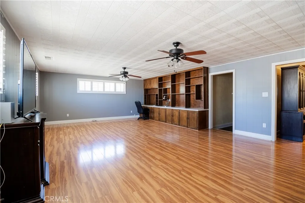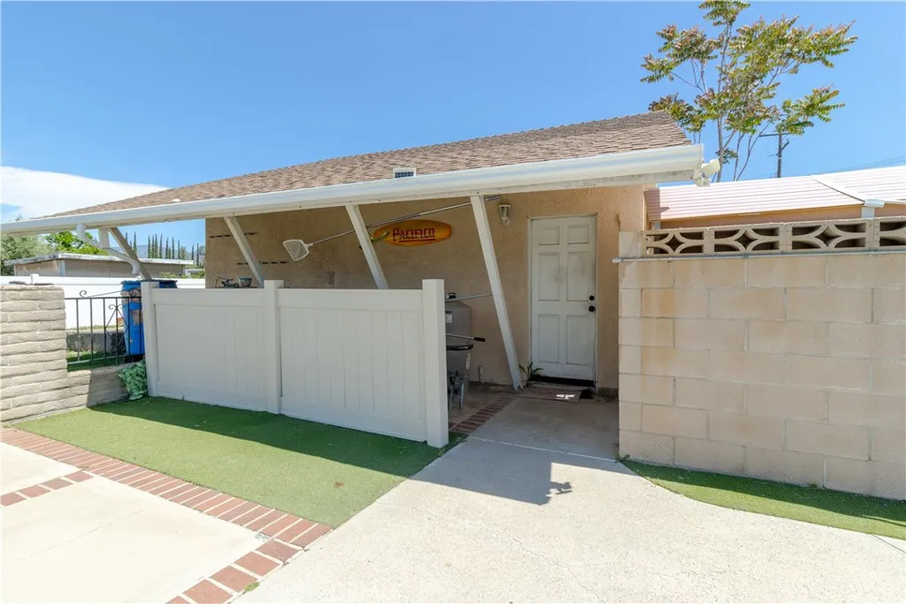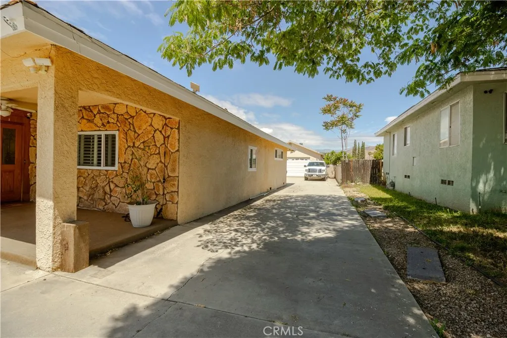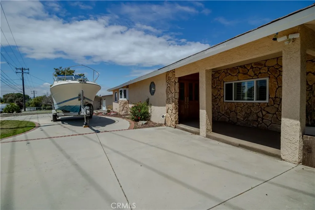 Bring your work truck home with ease at this versatile single-story home on a flat, usable 1/3-acre lot. With two long driveways, pull-through access, detached oversized tall 2-car garage, and abundant off-street parking, this property is ideal for buyers needing room for work vehicles, RVs, trailers or boats. This 4-bedroom, 2-bath home features a spacious kitchen and dining area, huge family room, indoor laundry, built-ins, and extensive storage throughout. Additional amenities include dual-pane windows and doors, plantation shutters, ceiling fans, Brazilian wood laminate flooring, oversized central HVAC and two whole-house fans. The backyard offers a separate covered patio, pool and spa, putting green, outdoor shower, fenced dog yard, and separate garden or play area.