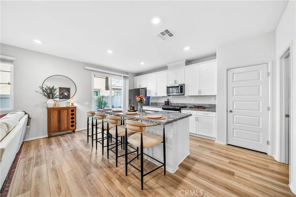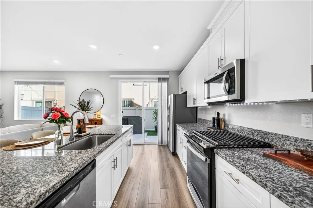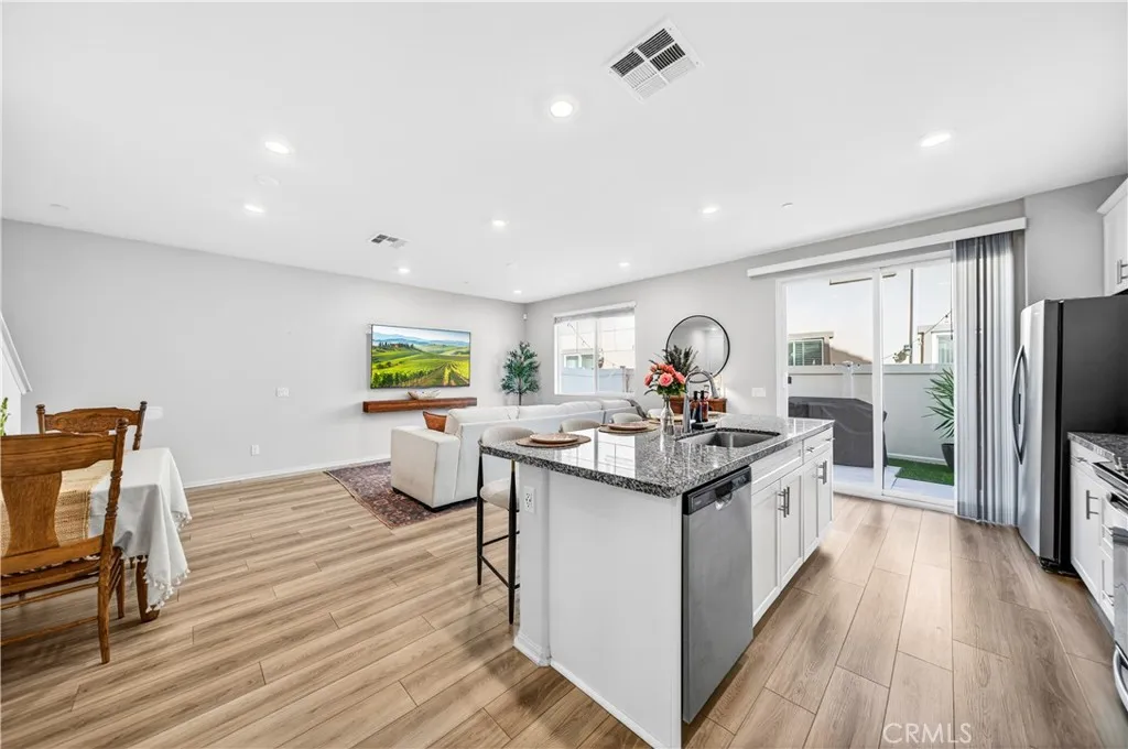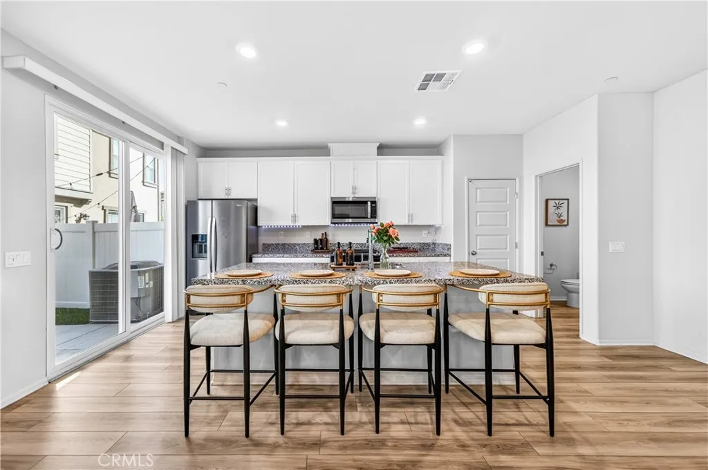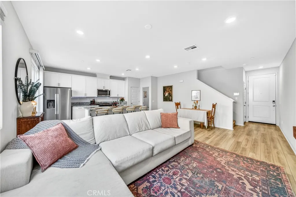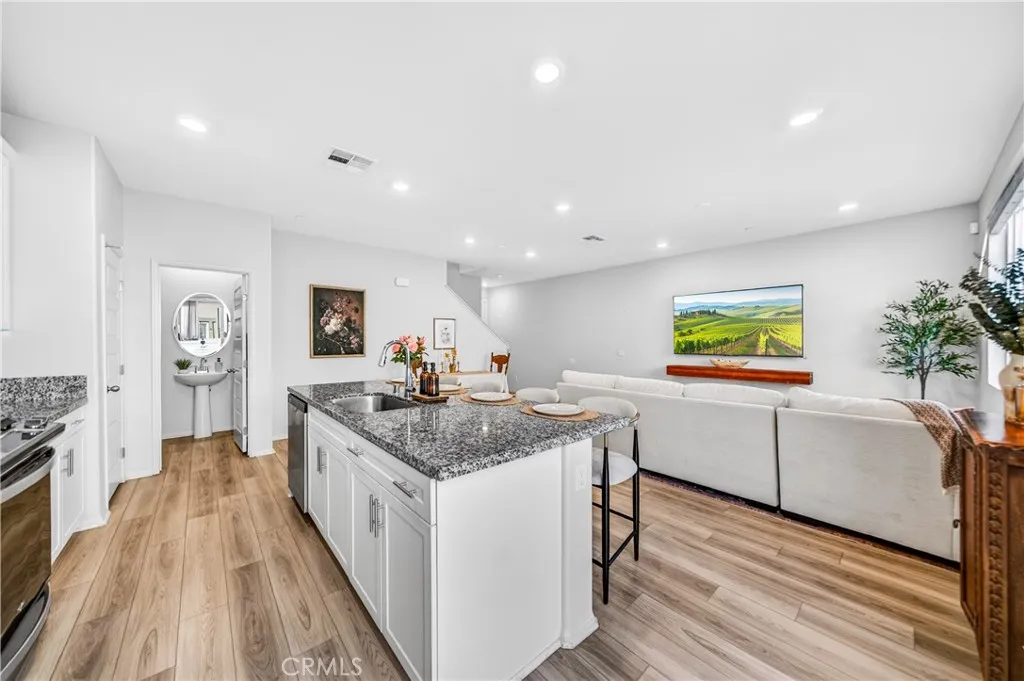 MOVE-IN READY CONDO IN HEIRLOOM FARMS WITH SOLAR! Welcome to this modern 3 bedroom, 2.5 bathroom condominium located in the highly desirable Heirloom Farms community of Temecula. Offering approximately 1,504 sq ft of living space and a backyard, along with a 2-car attached garage and energy-efficient upgrades throughout. The main living area features a bright, open-concept layout with seamless flow between the kitchen, dining, and living spaces. The kitchen is well-appointed with white cabinetry, granite countertops, EVP flooring, and Whirlpool stainless steel appliances. A convenient half bath and private backyard complete the main level, ideal for everyday living and entertaining. Upstairs, the home offers three spacious bedrooms, including a primary suite with ample closet space and an en-suite bathroom. Additional features include retractable blinds throughout, a tankless water heater, and smart home technology, including a SafeStreet security system, plus keypad entry with remote access. Residents of Heirloom Farms enjoy resort-style amenities including pools, parks, BBQ areas, playgrounds, and greenbelts. HOA covers structural insurance and exterior maintenance, including roof, paint, and front landscaping. Conveniently located near I-15 and I-215, shopping, dining, Old Town Temecula, and Temecula Wine Country, and within the Temecula Valley Unified School District.