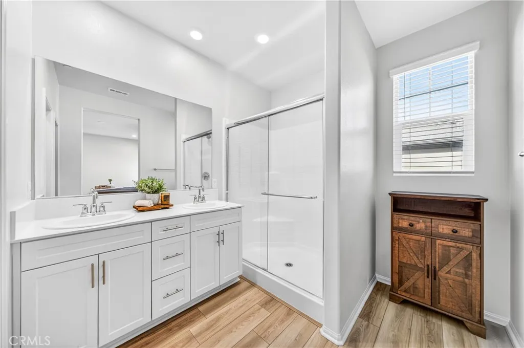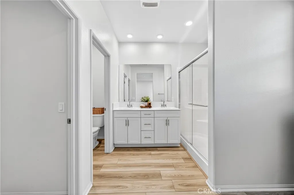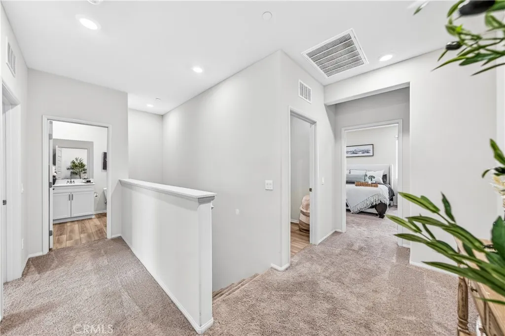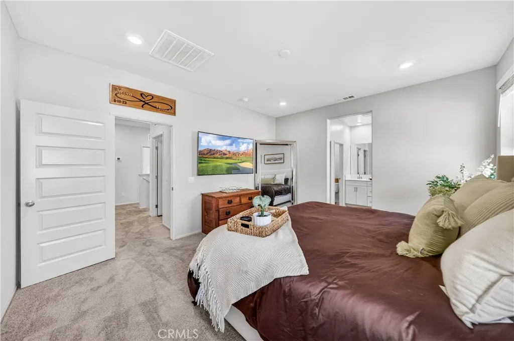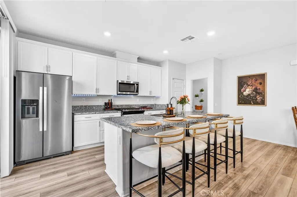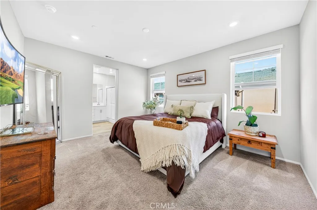 MOVE-IN READY CONDO IN HEIRLOOM FARMS WITH SOLAR! Welcome to this modern 3 bedroom, 2.5 bathroom condominium located in the highly desirable Heirloom Farms community of Temecula. Offering approximately 1,504 sq ft of living space and a backyard, along with a 2-car attached garage and energy-efficient upgrades throughout. The main living area features a bright, open-concept layout with seamless flow between the kitchen, dining, and living spaces. The kitchen is well-appointed with white cabinetry, granite countertops, EVP flooring, and Whirlpool stainless steel appliances. A convenient half bath and private backyard complete the main level, ideal for everyday living and entertaining. Upstairs, the home offers three spacious bedrooms, including a primary suite with ample closet space and an en-suite bathroom. Additional features include retractable blinds throughout, a tankless water heater, and smart home technology, including a SafeStreet security system, plus keypad entry with remote access. Residents of Heirloom Farms enjoy resort-style amenities including pools, parks, BBQ areas, playgrounds, and greenbelts. HOA covers structural insurance and exterior maintenance, including roof, paint, and front landscaping. Conveniently located near I-15 and I-215, shopping, dining, Old Town Temecula, and Temecula Wine Country, and within the Temecula Valley Unified School District.
