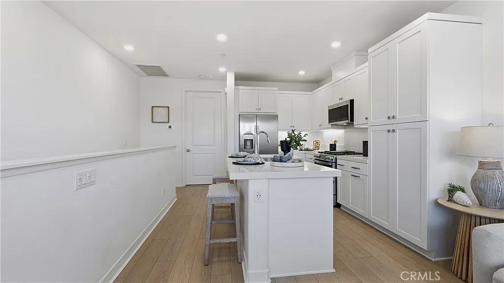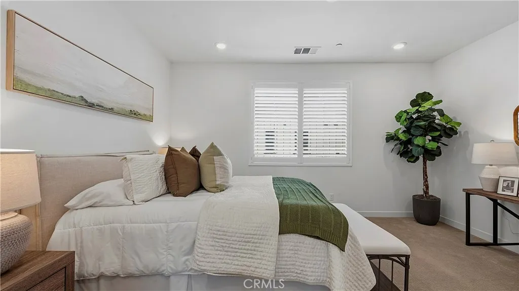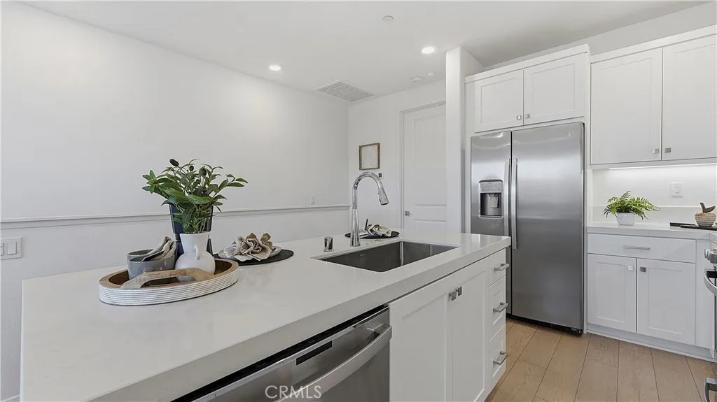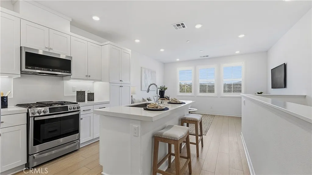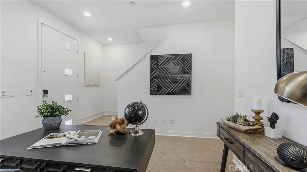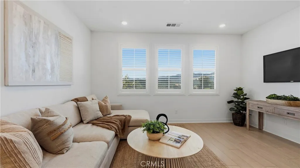 Experience modern luxury in this stunning 2023-built townhome in the prestigious Oasis community of Rienda. The thoughtfully designed floor plan features a main-level flex space adjacent to a convenient half-bathroom and the laundry area, creating the perfect setup for a high-end home office or creative studio. The interior radiates a model-home aesthetic with waterproof luxury vinyl tile flooring, designer plantation shutters, and a gourmet kitchen anchored by white shaker cabinetry, quartz countertops, and stainless steel appliances (refrigerator included). The washer and dryer are also included for ultimate move-in convenience. It also has solar ($102 per mo.). Relax on your private front patio with breathtaking views before heading out to enjoy the unparalleled Rancho Mission Viejo lifestyle. You are just steps away from the brand-new Boulder Pond for catch-and-release fishing and its modern playground, as well as the exclusive Oasis adult pool and adjacent state-of-the-art gym. With Ranch Camps beach-entry lagoon pool and outdoor BBQ areas nearby, this home offers a seamless blend of sophisticated design and active, resort-style living.