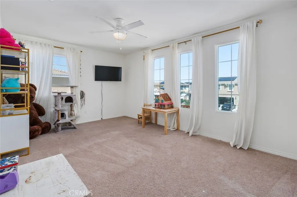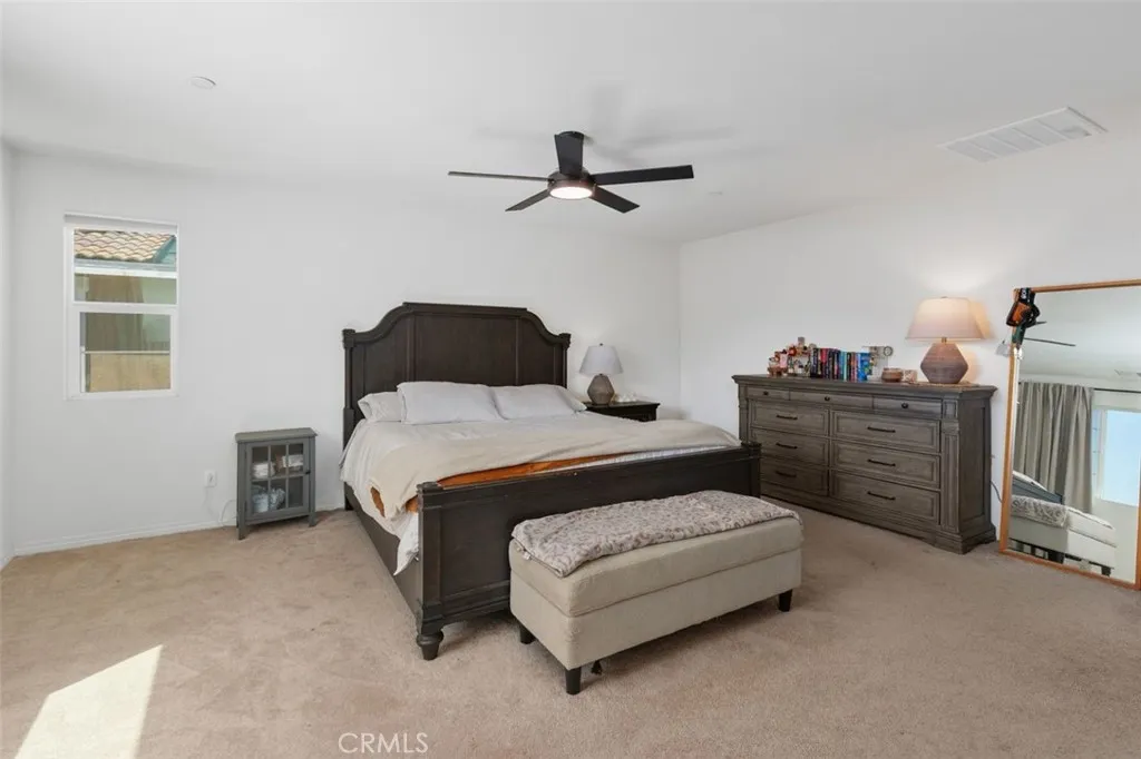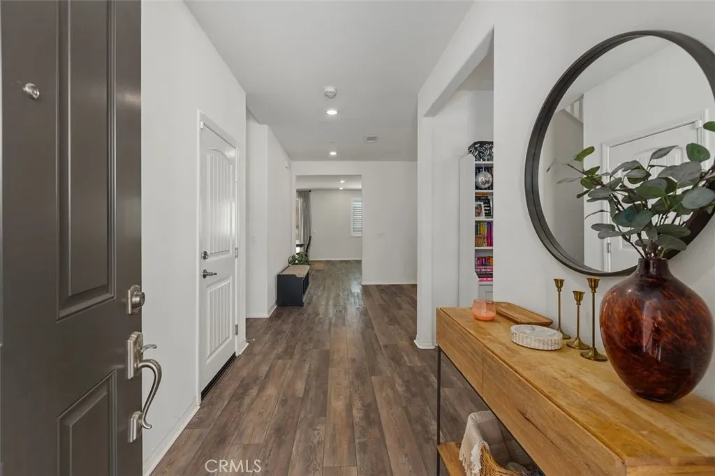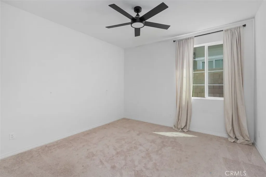 Welcome to 27239 Hideout Court, a beautifully upgraded home tucked away on a quiet cul-de-sac in the growing city of Menifeeoffering NO HOA and a highly functional floor plan designed for todays lifestyle. From the moment you enter, youll appreciate the timeless elegance of white shutters featured throughout the home, adding both style and privacy. The open-concept layout is filled with natural light and seamlessly connects the spacious living area to the dining space and kitchen, creating an inviting environment for both everyday living and entertaining. The main level offers a formal dining room perfect for hosting gatherings, along with a versatile flex space currently used as a home office, ideal for remote work or additional living needs. A highly desirable downstairs bedroom and full bathroom provides excellent flexibility for guests, multigenerational living, or extended stays. Upstairs, youll find well-appointed bedrooms including a spacious primary suite complete with a private ensuite bath and walk-in closet, offering a relaxing retreat at the end of the day. Additional bedrooms provide flexibility for family, guests, or a home office. Step outside to an oversized covered patio complete with ceiling fans, perfect for year-round outdoor enjoyment. The backyard offers plenty of space to personalize and create your ideal outdoor setting. Enjoy energy efficiency and long-term savings with paid-off solar, a valuable upgrade for modern homeowners. Conveniently located near parks, schools, shopping, and commuter access, this home combines comfort, functionality, and exce