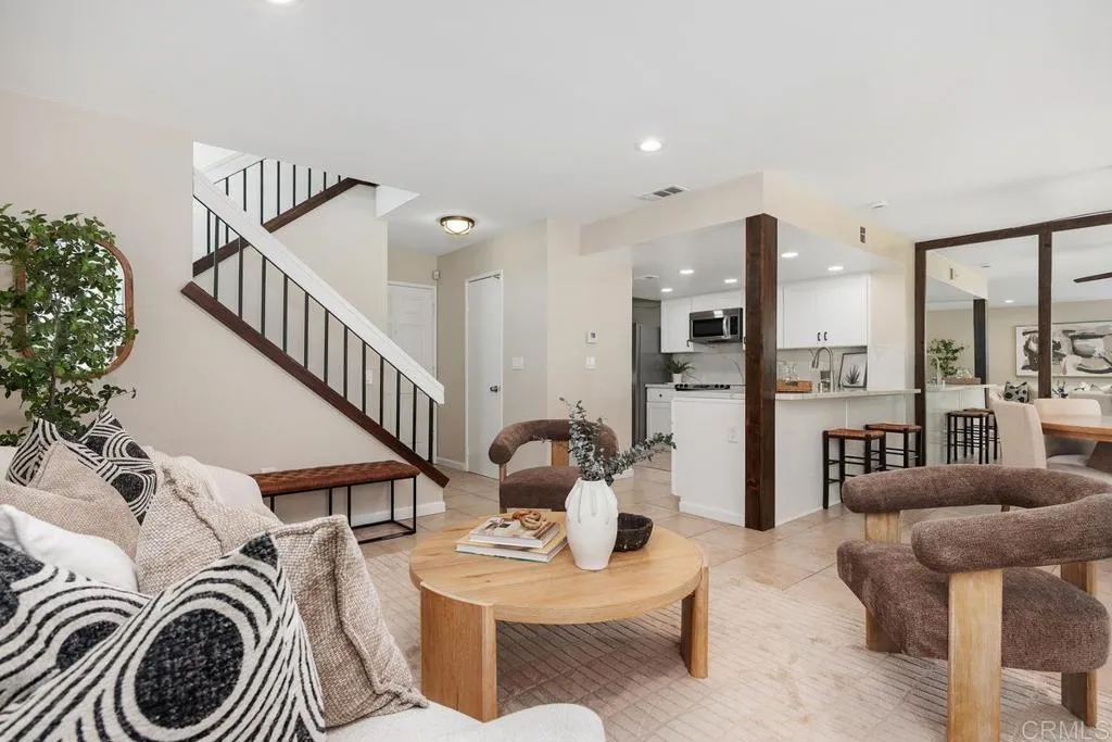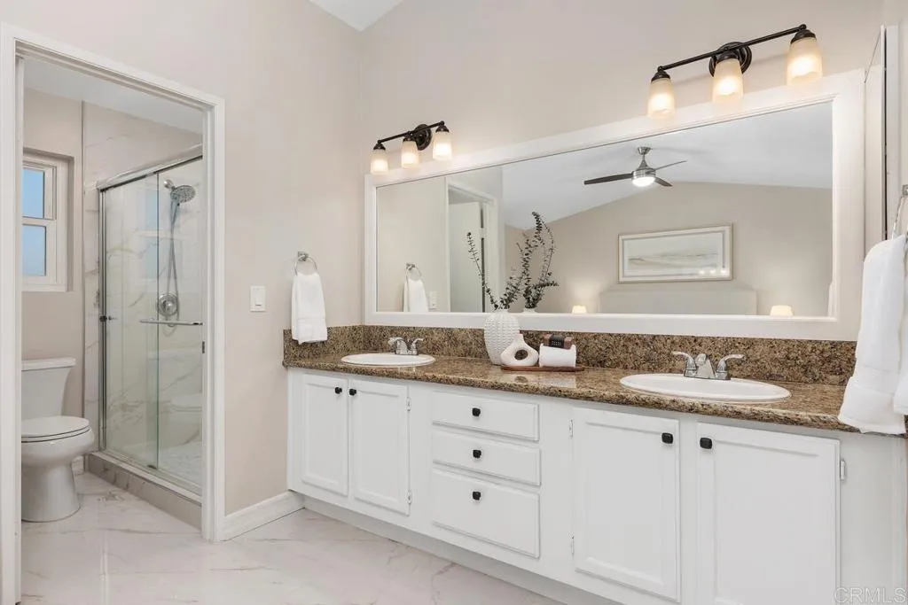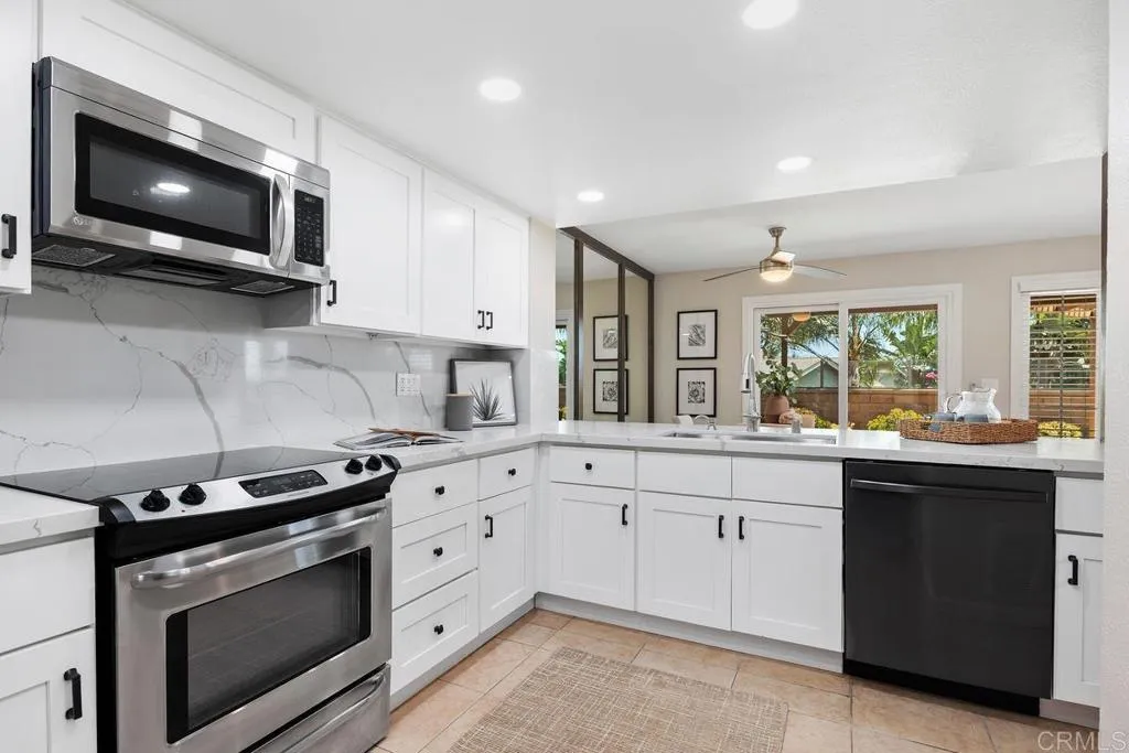 Experience comfortable coastal living in the highly desirable community of The Cape at Calavera Hills. The kitchen is appointed with quartz countertops, a full-height quartz slab backsplash, soft-close drawers, and stainless steel appliances including refrigerator, stove, sink, and dishwasher. Tile flooring is featured on the main level, with upgraded laminate flooring upstairs. The primary bathroom includes separate his-and-hers vanities and elegant marble-style porcelain tile flooring, while high ceilings throughout bring in an abundance of natural light. The home also features a spacious and well-maintained private backyard, ideal for outdoor relaxation or entertaining. Take a refreshing dip in the community pool and spa, then enjoy the nearby Calavera Hills Community Park with its playground, tennis courts, and wide-open grassy areas. Enjoy the convenience of top-rated schools, shopping, dining, and easy access to Highway 78, all just minutes from Carlsbads beaches. Come experience all that this home and community have to offer.