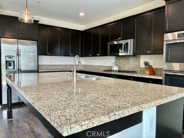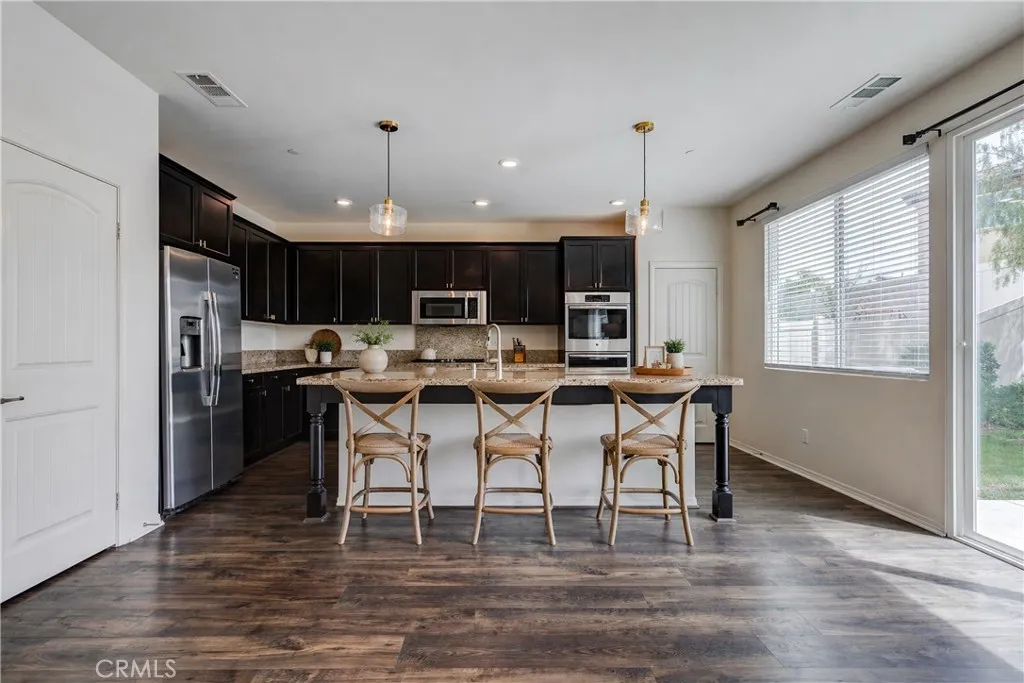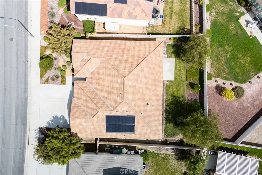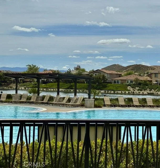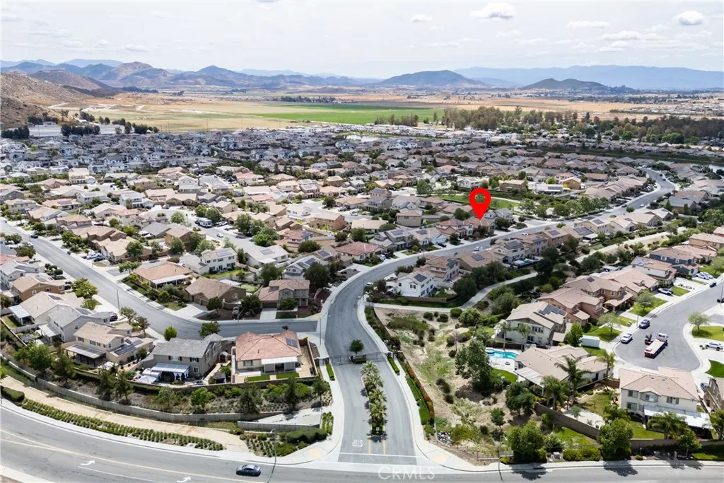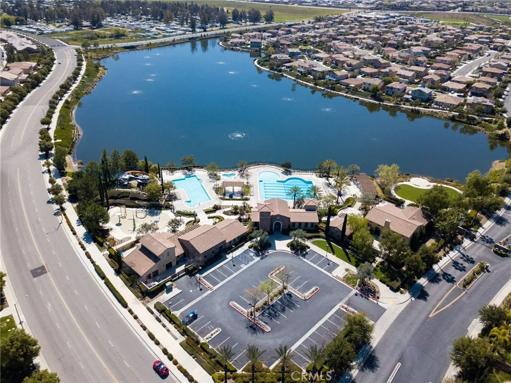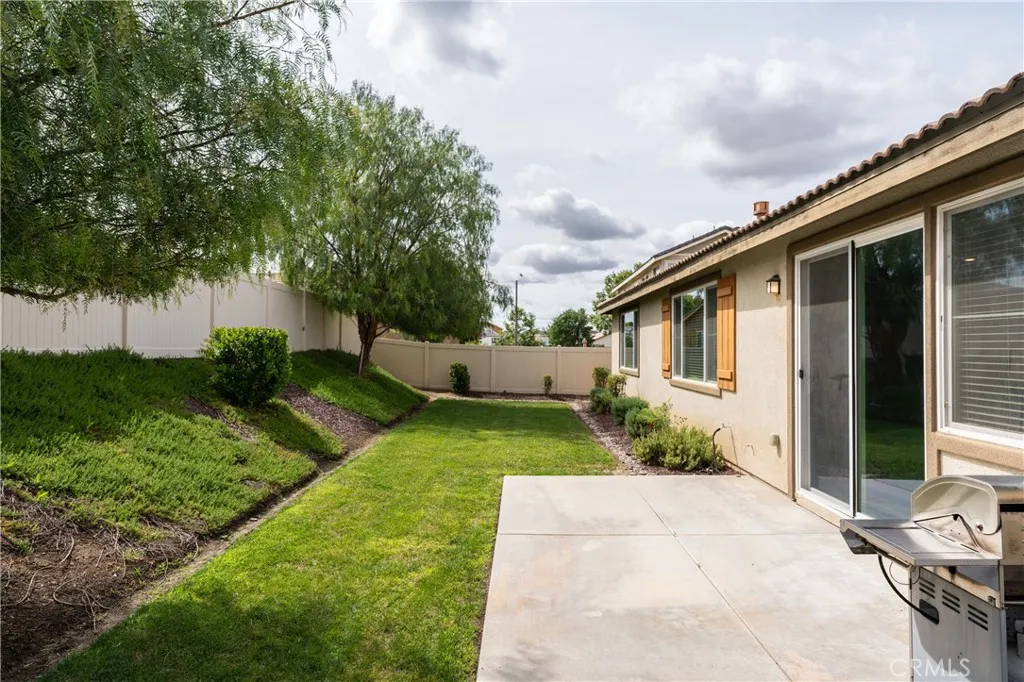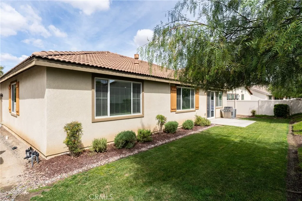 Move in Ready! Experience the resort-style living that you have been dreaming of in the gated Lakes Community of Menifee. Built in 2017, the home spans 2,090 sq ft and features an expansive open-concept floor plan designed for modern living & entertaining. At the heart of the home, an expansive gourmet kitchen with premium granite countertops, a massive social island, upgraded cabinetry, two pantries and double ovens- perfect for gatherings or quiet weeknight meals. The spacious living room with cozy fireplace and the formal dining room flow seamlessly throughout the great room and offer uncompromising comfort. This home includes 4 bedrooms (one of which is a versatile bedroom/den/office) . The Primary Suite serves as a private retreat, offering a spa-inspired bath with dual vanities, large soaking tub, walk in shower and generous walk in closet. There is an additional large guest bathroom too! The private back yard is a relaxing oasis with patio, bbq, mature trees/plants and lush green grass! Other great features include- sizable 3 car garage w/overhead storage racks, tankless water heater, new interior paint and 10 panel solar system for extra energy savings! This amazing home is across the street from a beautiful park with play structures, basketball court and bbq/picnic area. Life at The Lakes is a daily escape that provides you with exclusive access to walking trails, three shimmering lakes, two resort-caliber swimming pools, a rejuvenating spa, splash pad, water slides, state of the art fitness center, club house and meeting room. Centrally located near schools, Mt Sa